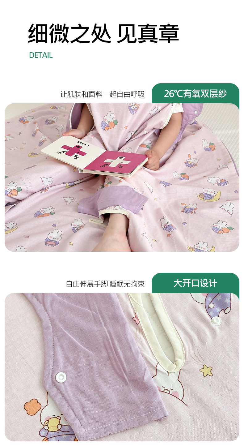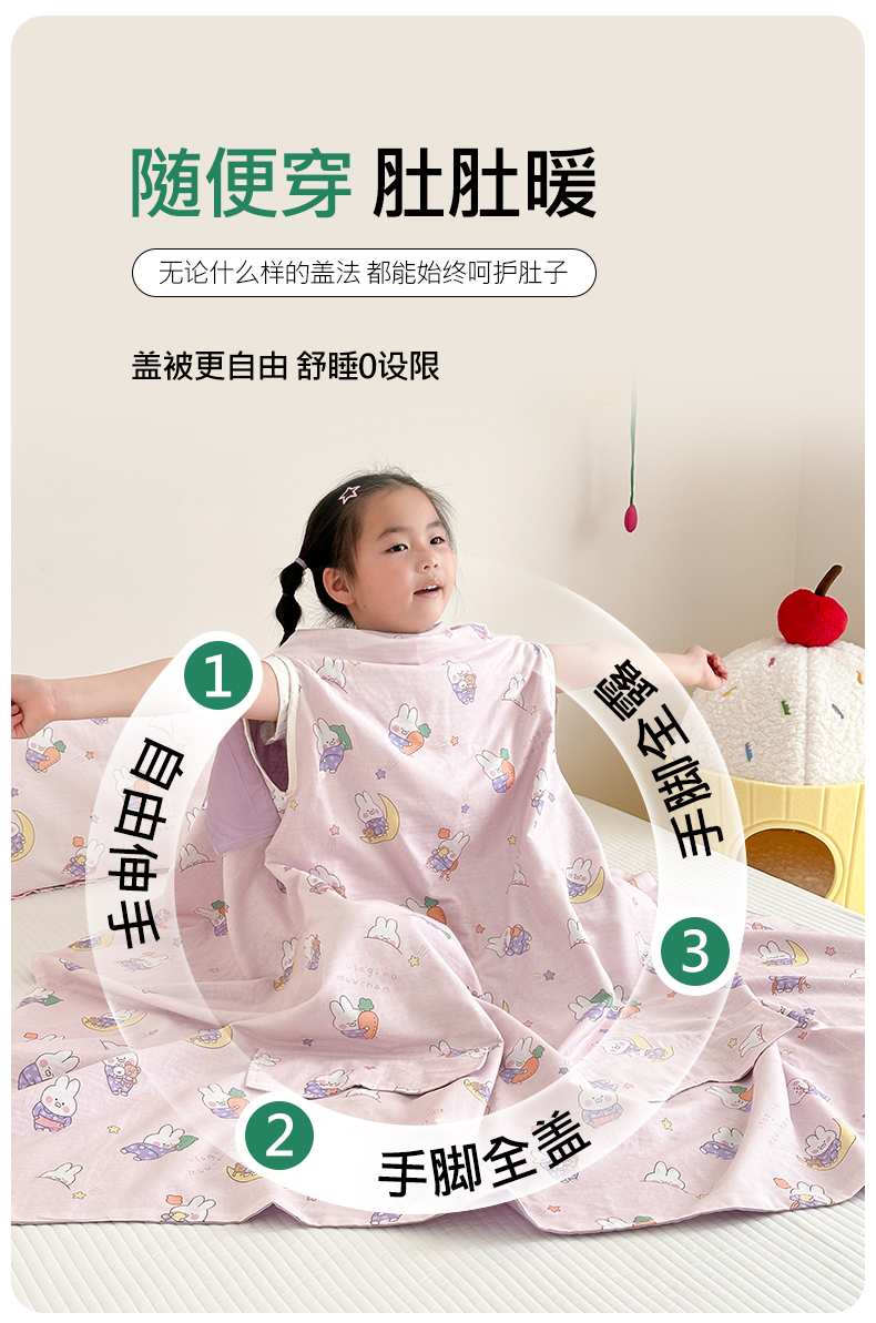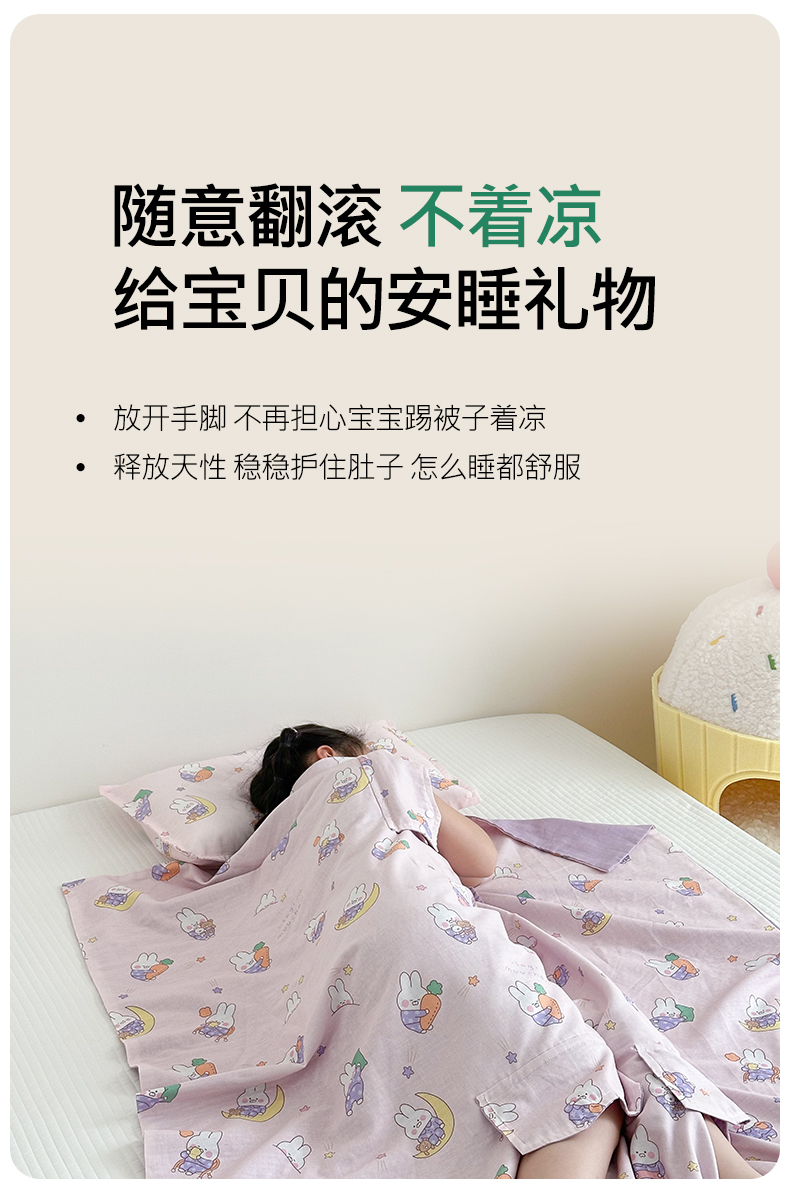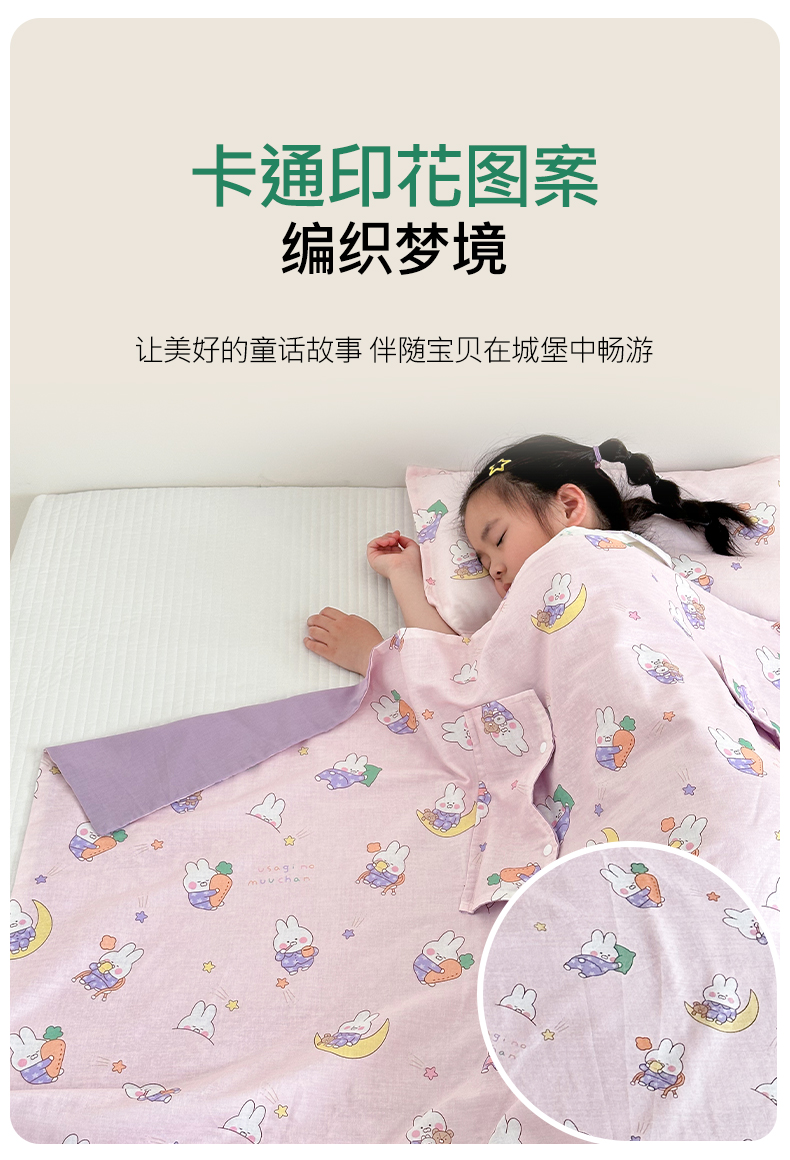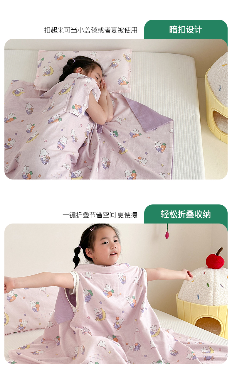 商品名称:BOSS 2025新款全棉有氧双层纱多功能防踢盖毯被 晚安兔
