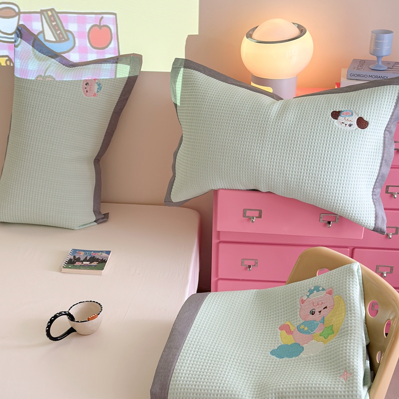 (总)柚子YOUTH 2025新款华夫格提花绒刺绣四件套,奔跑的小狗,冰雪世界,电话猫,黑猫的礼物,茄子蛋糕屋,月亮气球