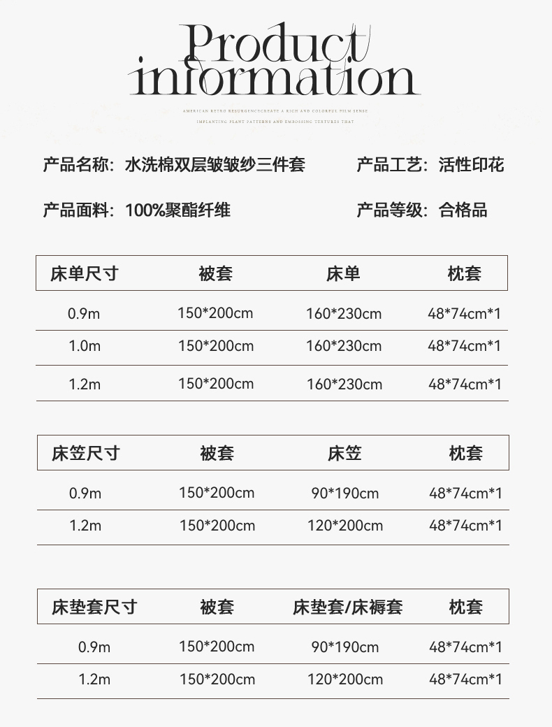 【床垫套款】0.9三件套-被套150x200 | ¥49.00 |