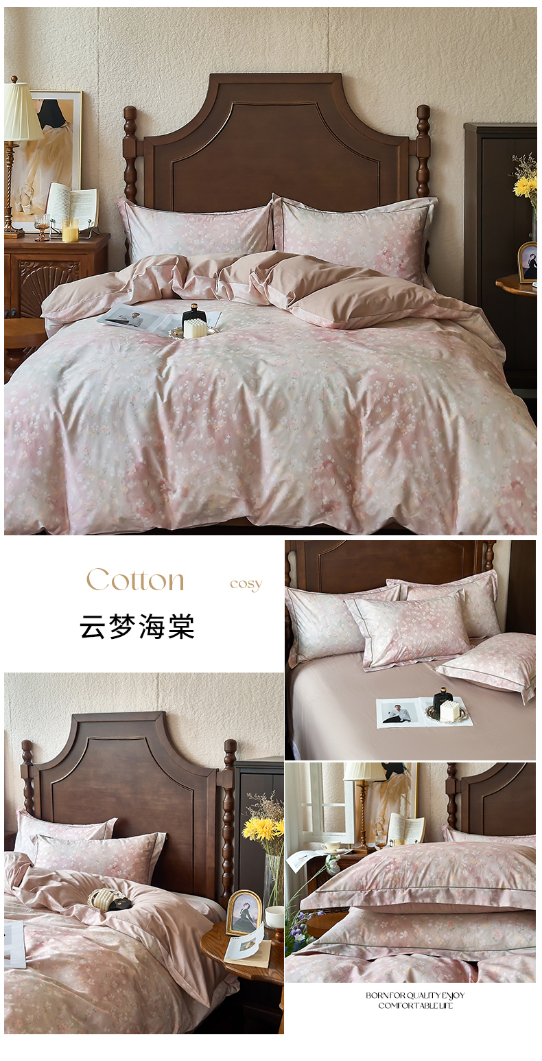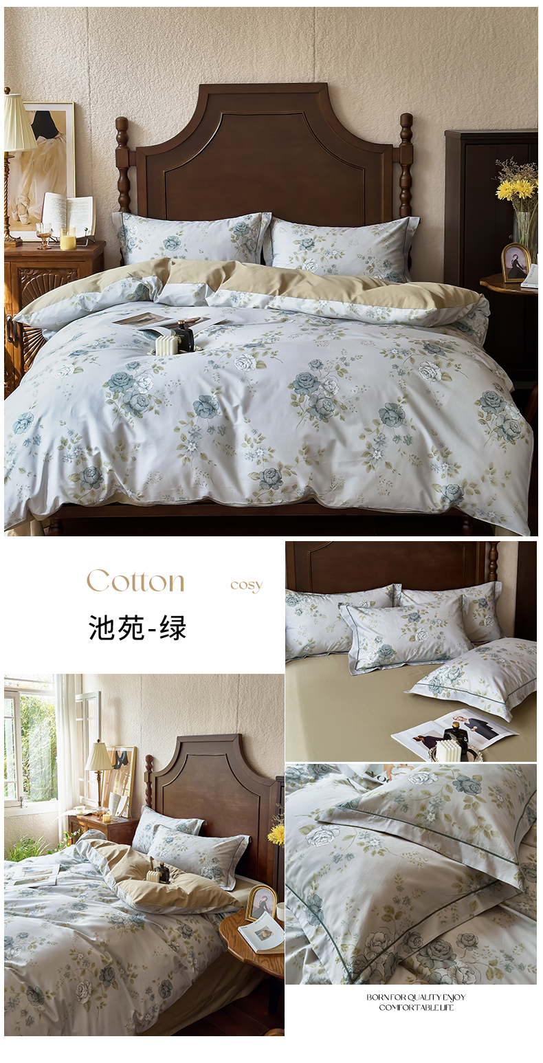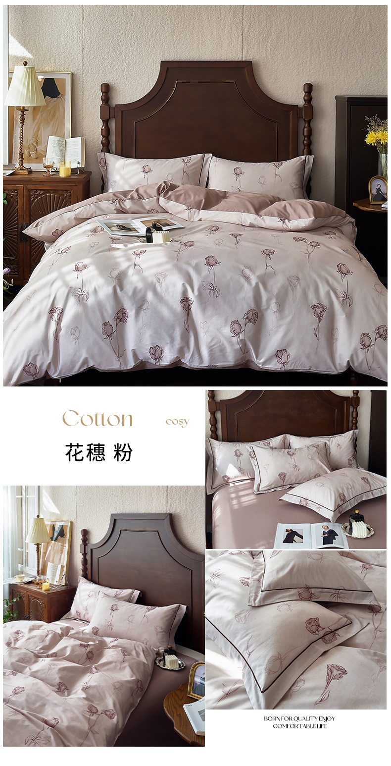 (总)由丽家纺 2025新款亲肤舒适全棉纯棉臻棉数码印花四件套系列,繁花似锦,感棉-粉,金溪-灰,金溪-咖,茂林-兰,明羽-黄,沐恩-绿,野玫瑰-紫,感棉-绿,玫瑰颂-粉