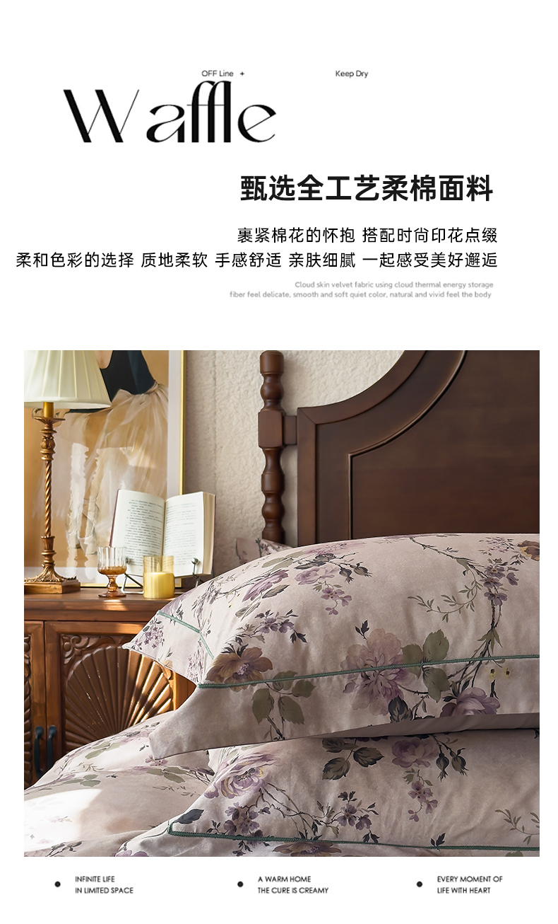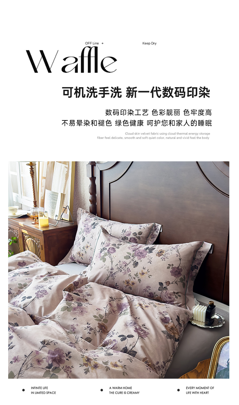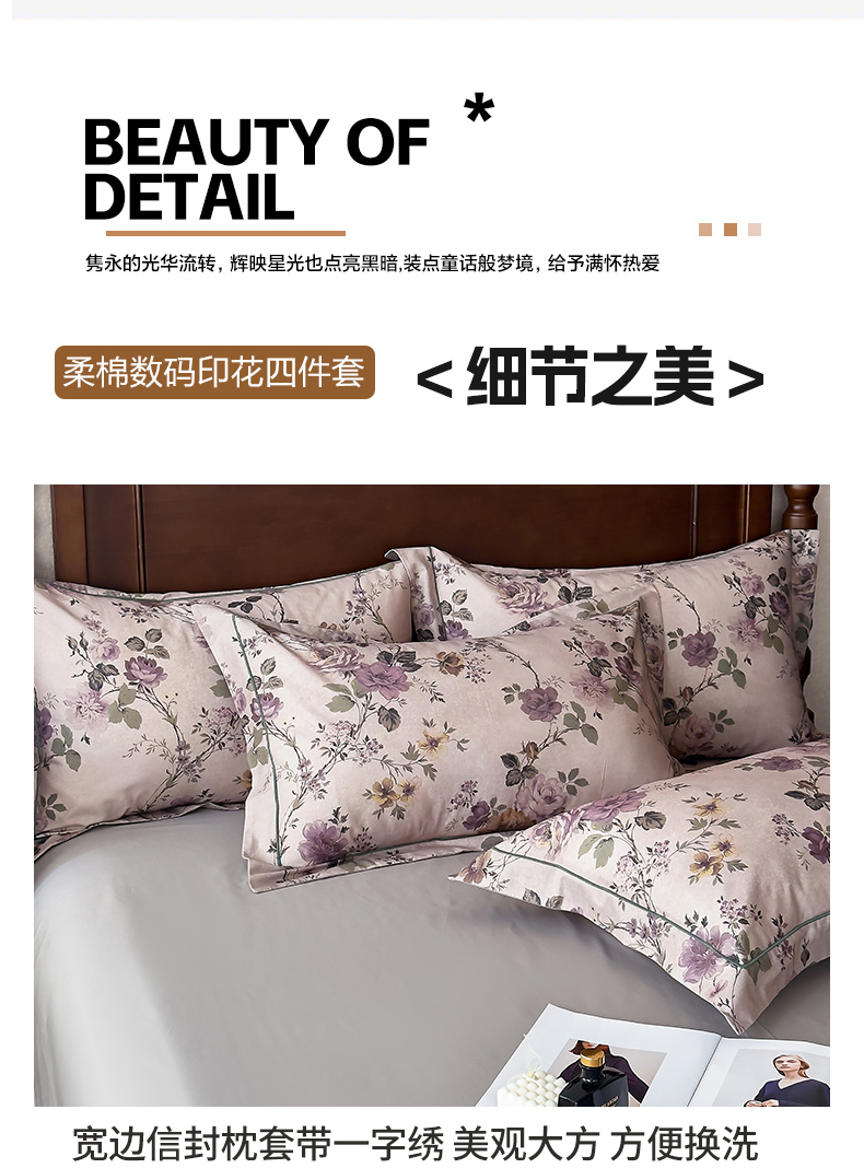 (总)由丽家纺 2025新款亲肤舒适全棉纯棉臻棉数码印花四件套系列,繁花似锦,感棉-粉,金溪-灰,金溪-咖,茂林-兰,明羽-黄,沐恩-绿,野玫瑰-紫,感棉-绿,玫瑰颂-粉
