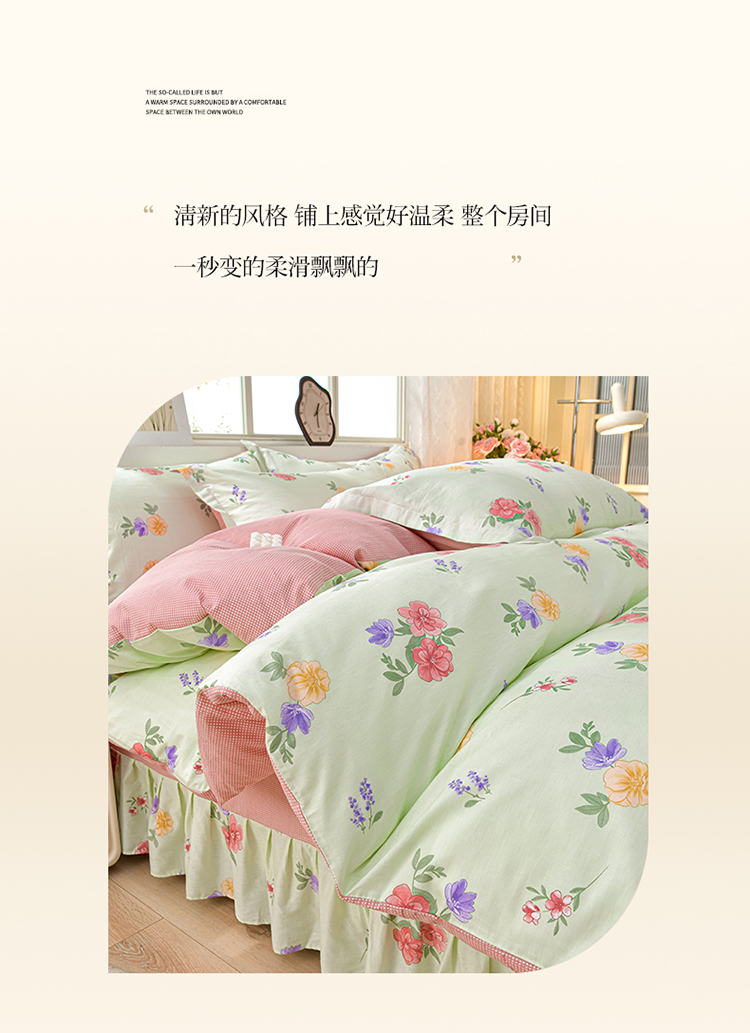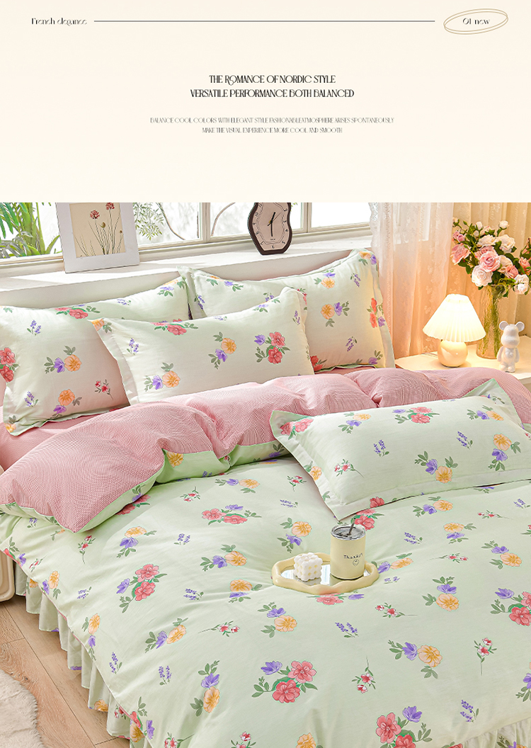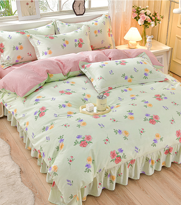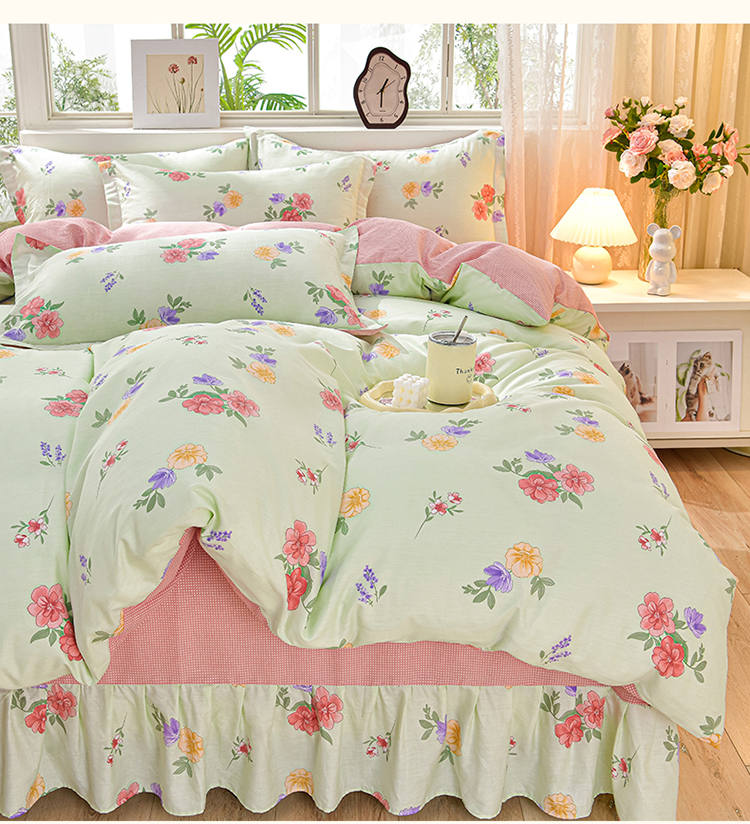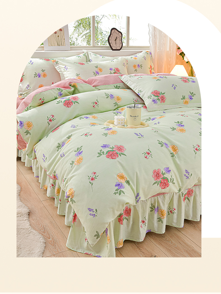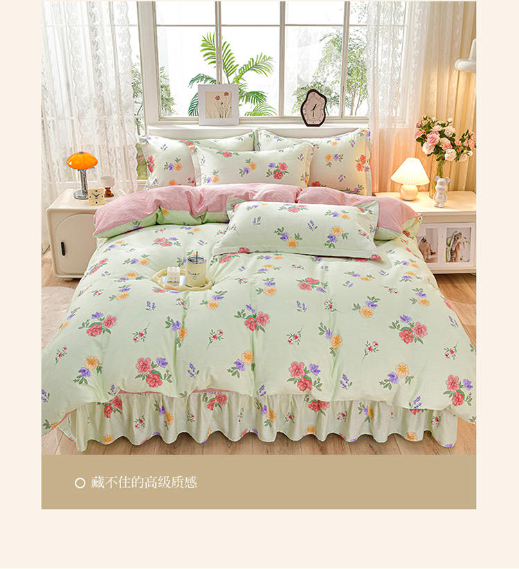 绘萱家居 2025新款100%全棉床裙款斜纹印花四件套 千姿百媚