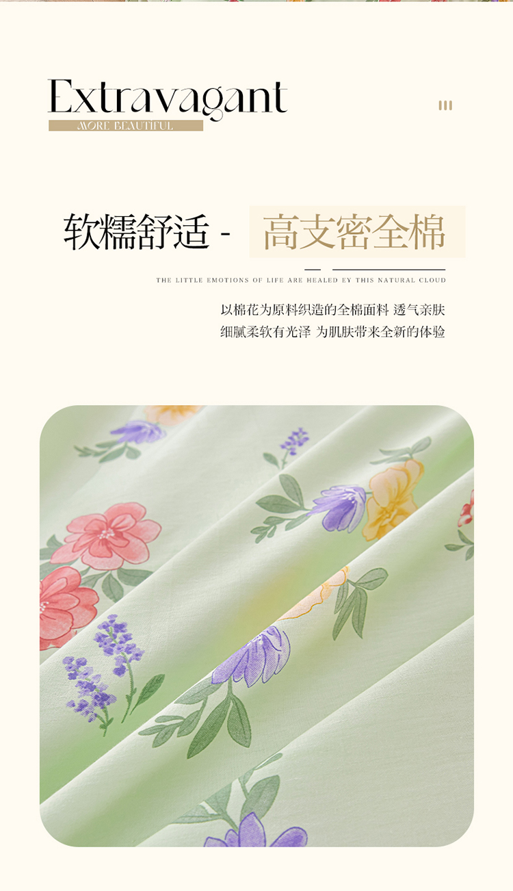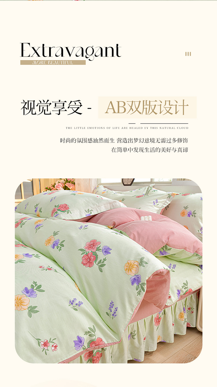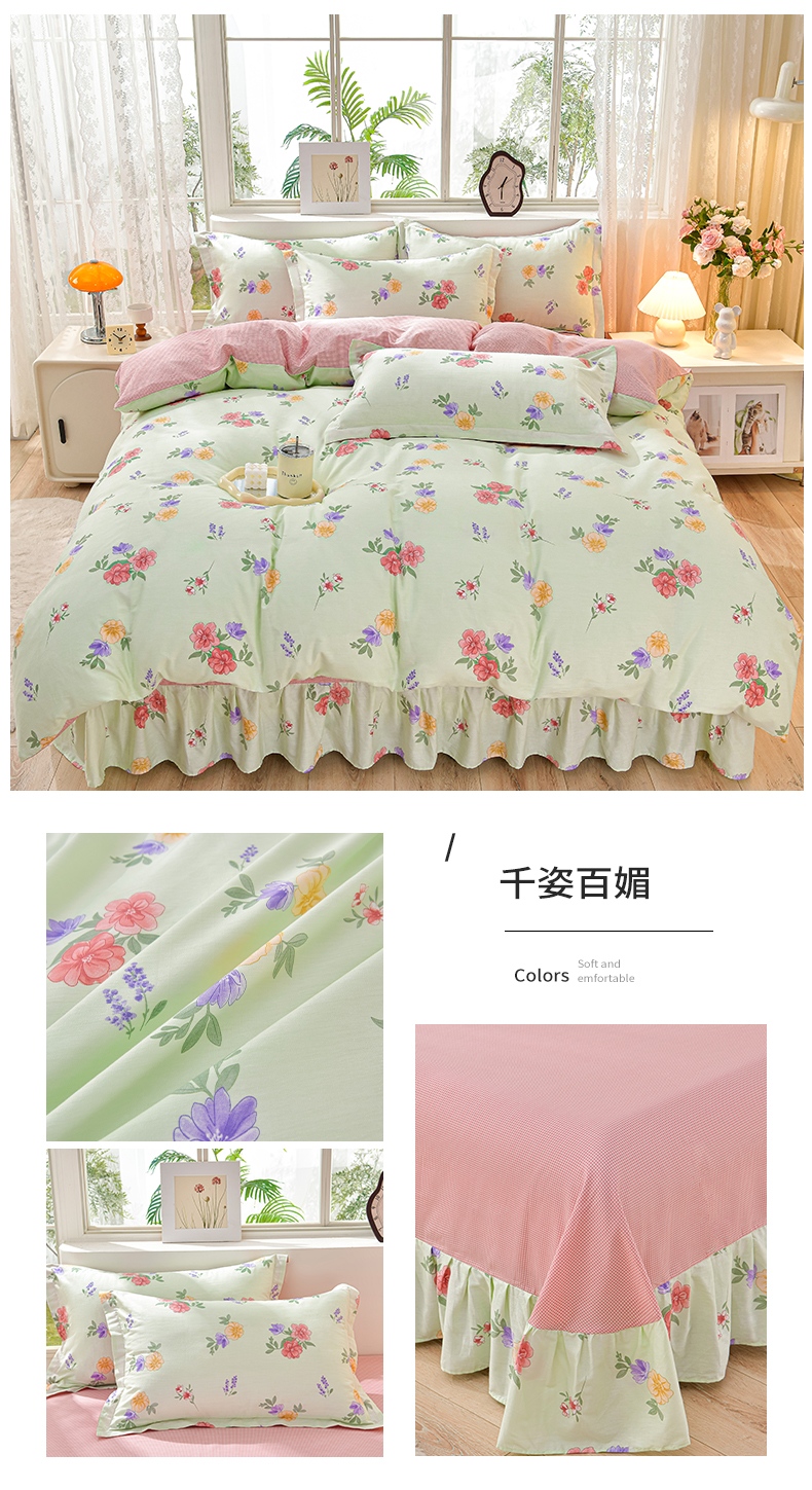 商品名称:绘萱家居 2025新款100%全棉床裙款斜纹印花四件套 千姿百媚