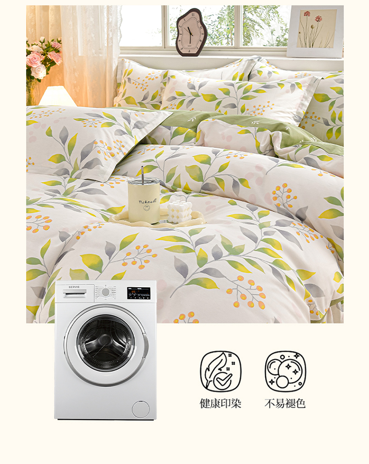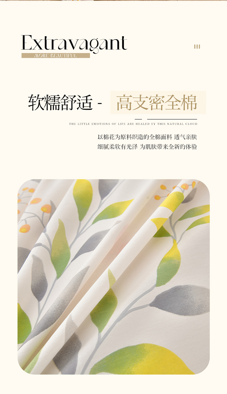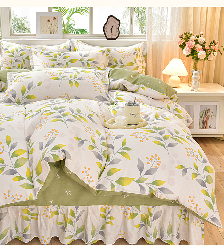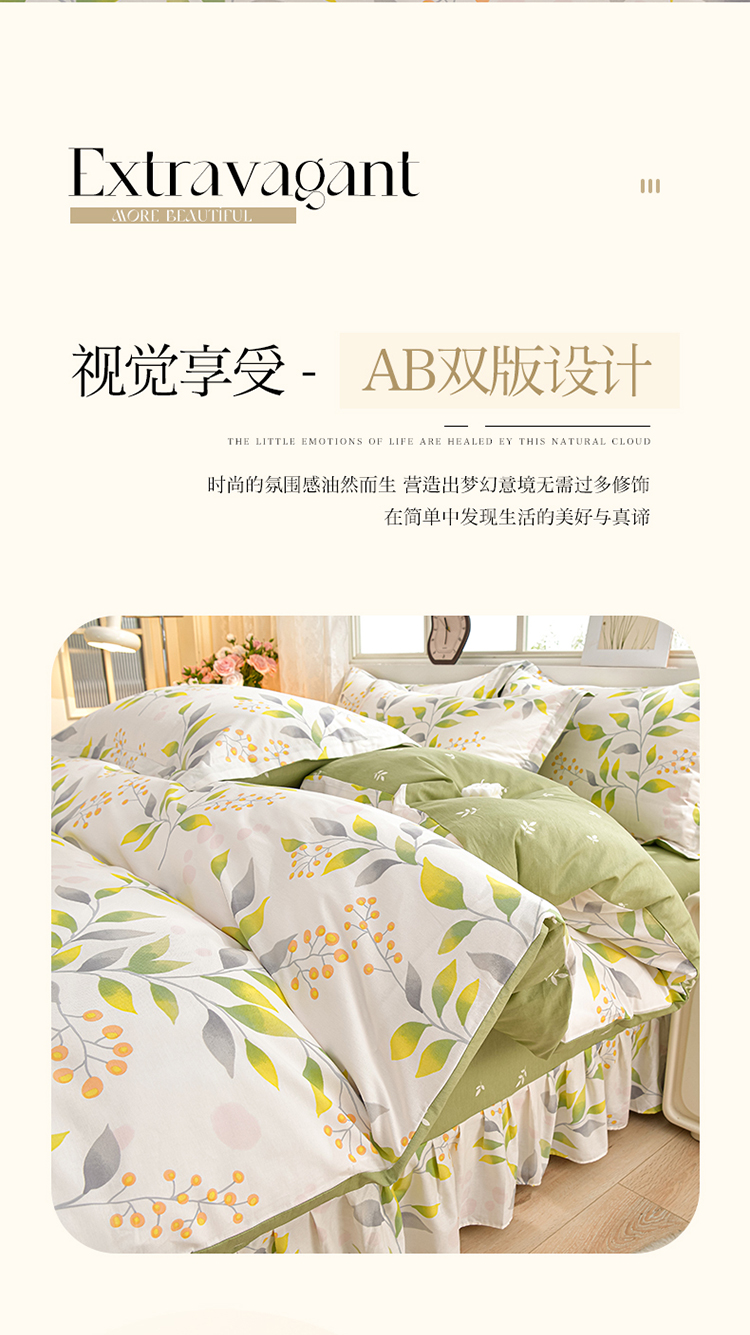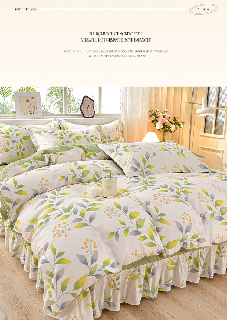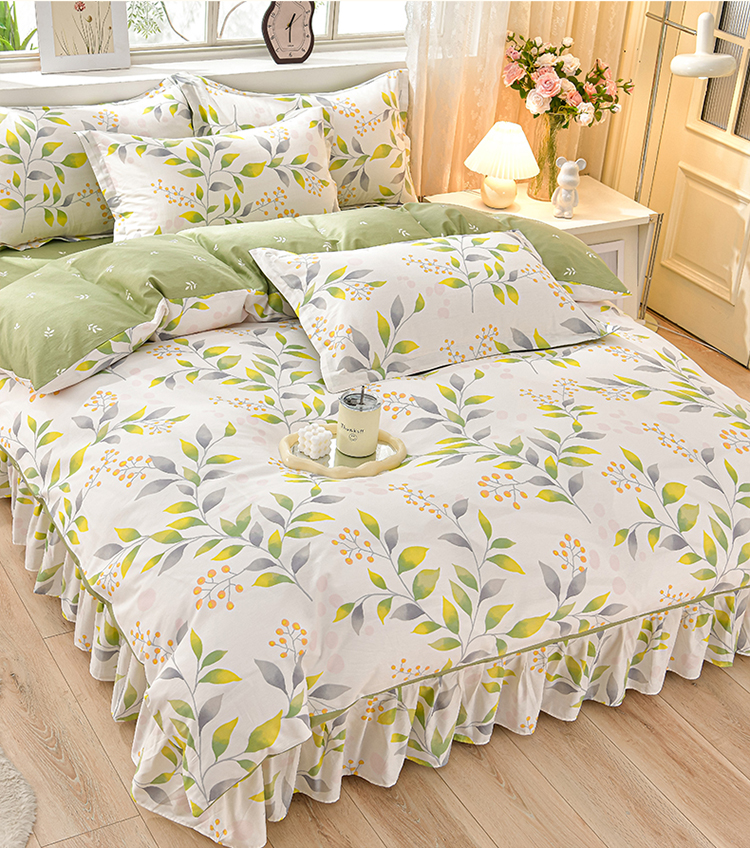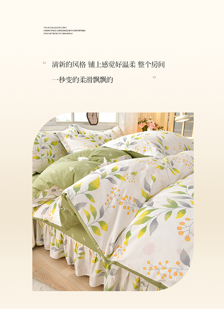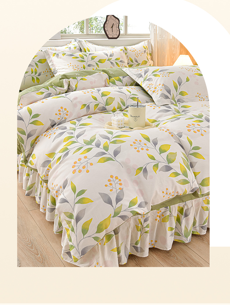 商品名称:绘萱家居 2025新款100%全棉床裙款斜纹印花四件套 叶之恋