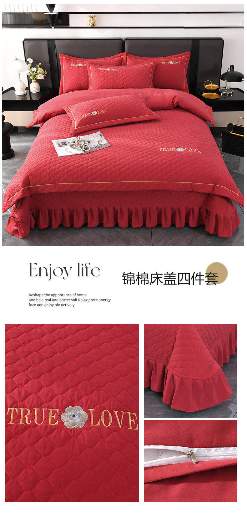 (总)代芙家纺 2025新款锦棉床盖四件套-花边款,花香-花边款-豆沙粉,花香-花边款-酒红,花香-花边款-绅士蓝,花香-花边款-雅灰