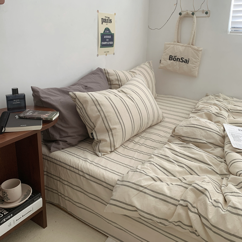 当前位置: 91家纺网 > 商品网购 > 床品套件 > 四件套 > 全棉普通四件套 > 柚可家居 2024新款40支全棉色织水洗棉单品系列-四件套 红竖条