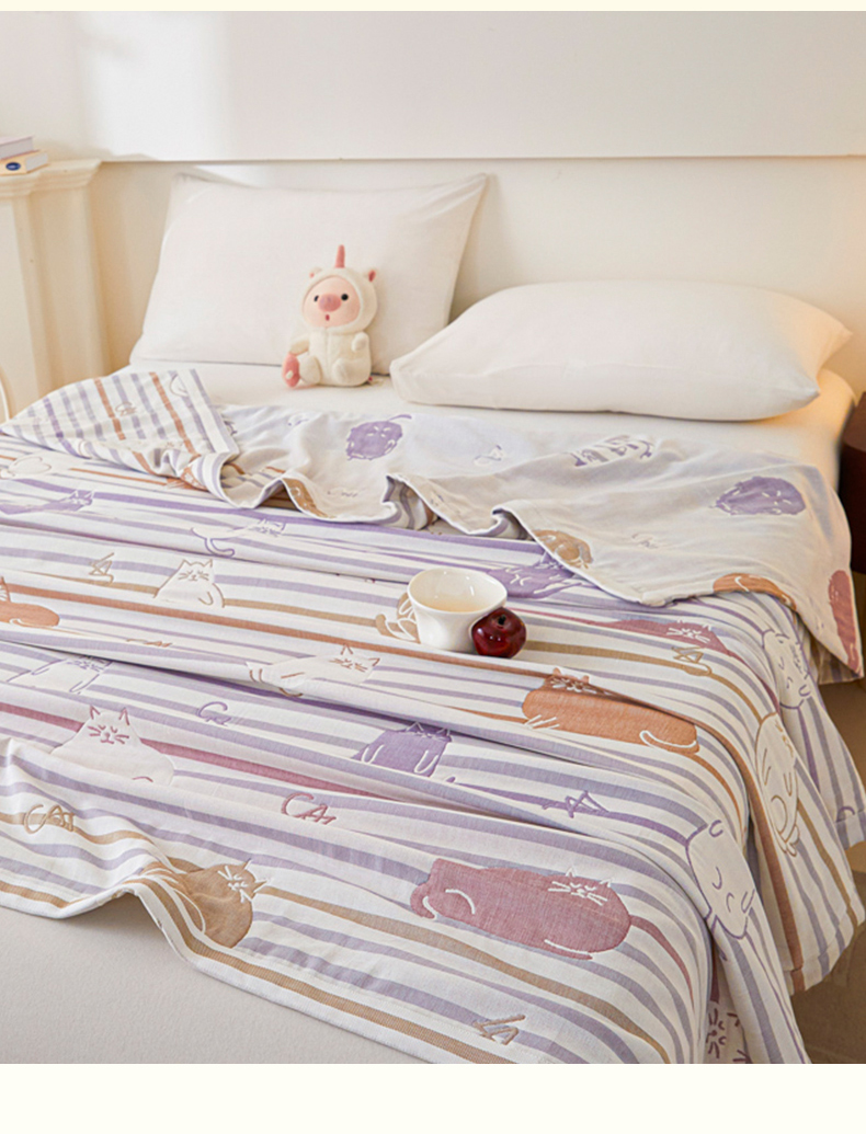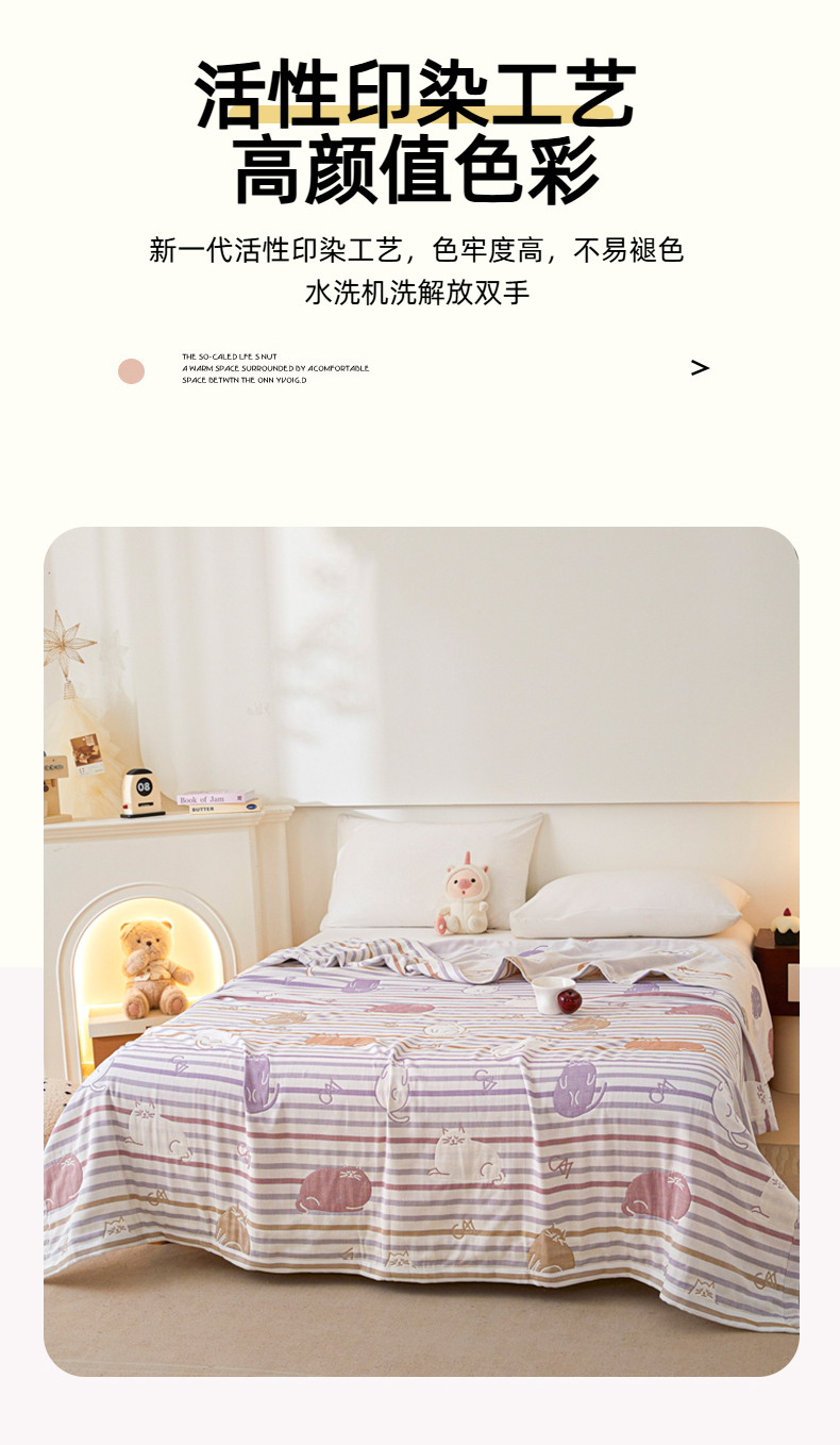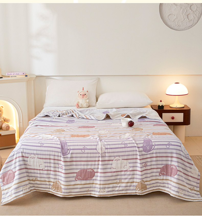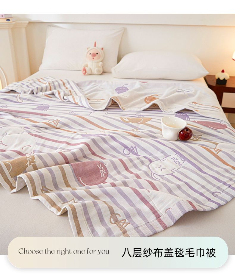 商品名称:悦然毛巾被 2025新款八层纱布盖毯毛巾被夏被夏凉被空调被 彩虹猫咖