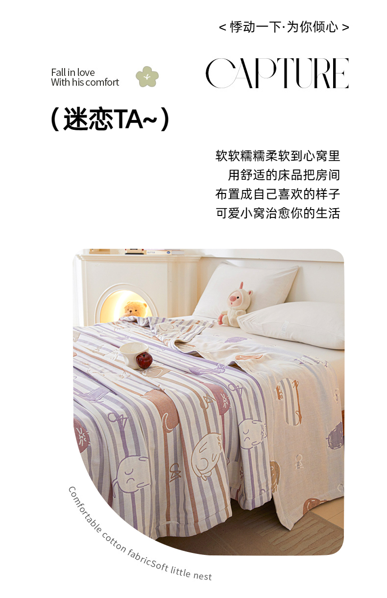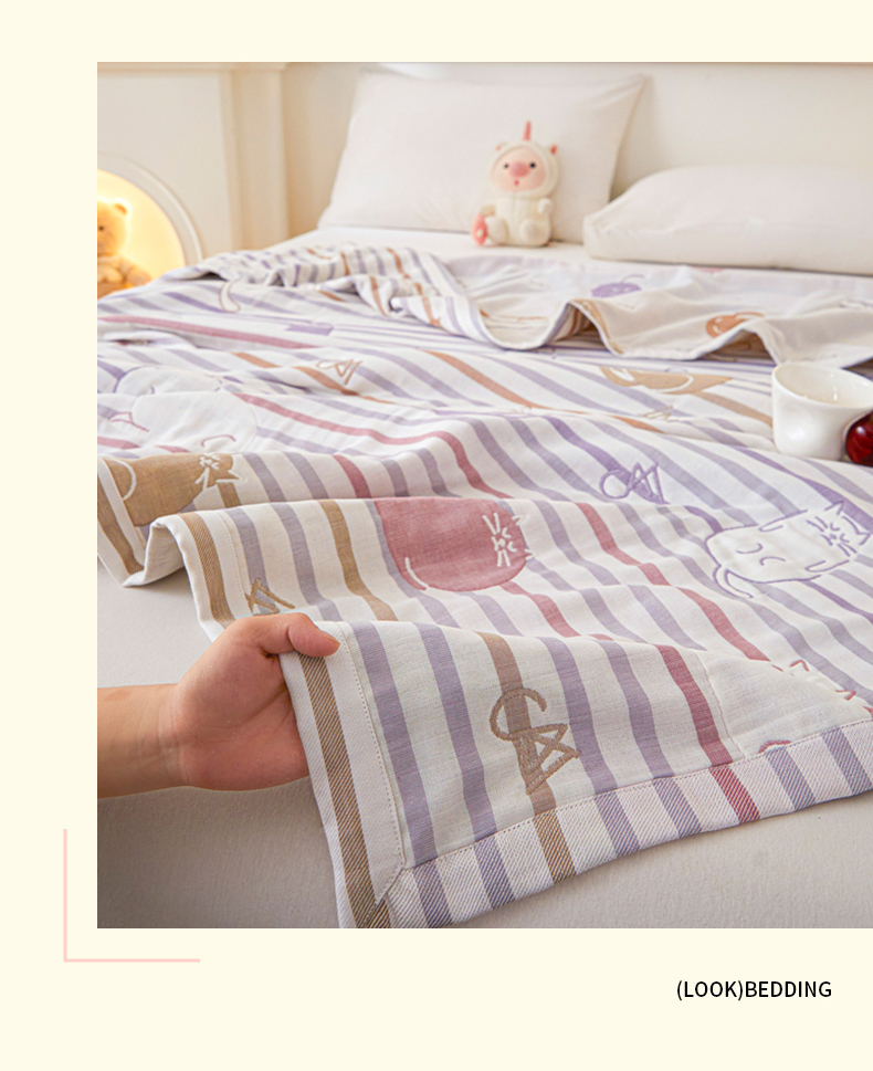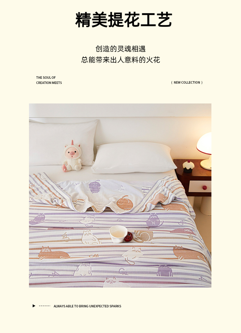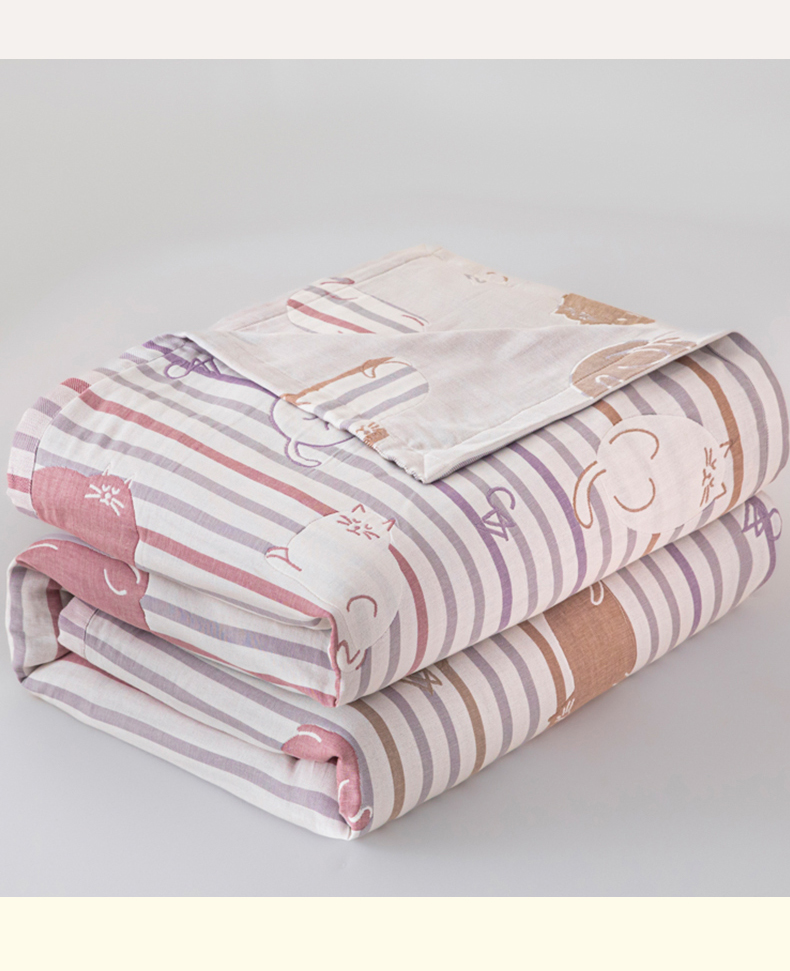 商品名称:悦然毛巾被 2025新款八层纱布盖毯毛巾被夏被夏凉被空调被 彩虹猫咖