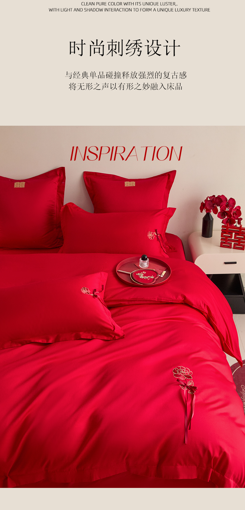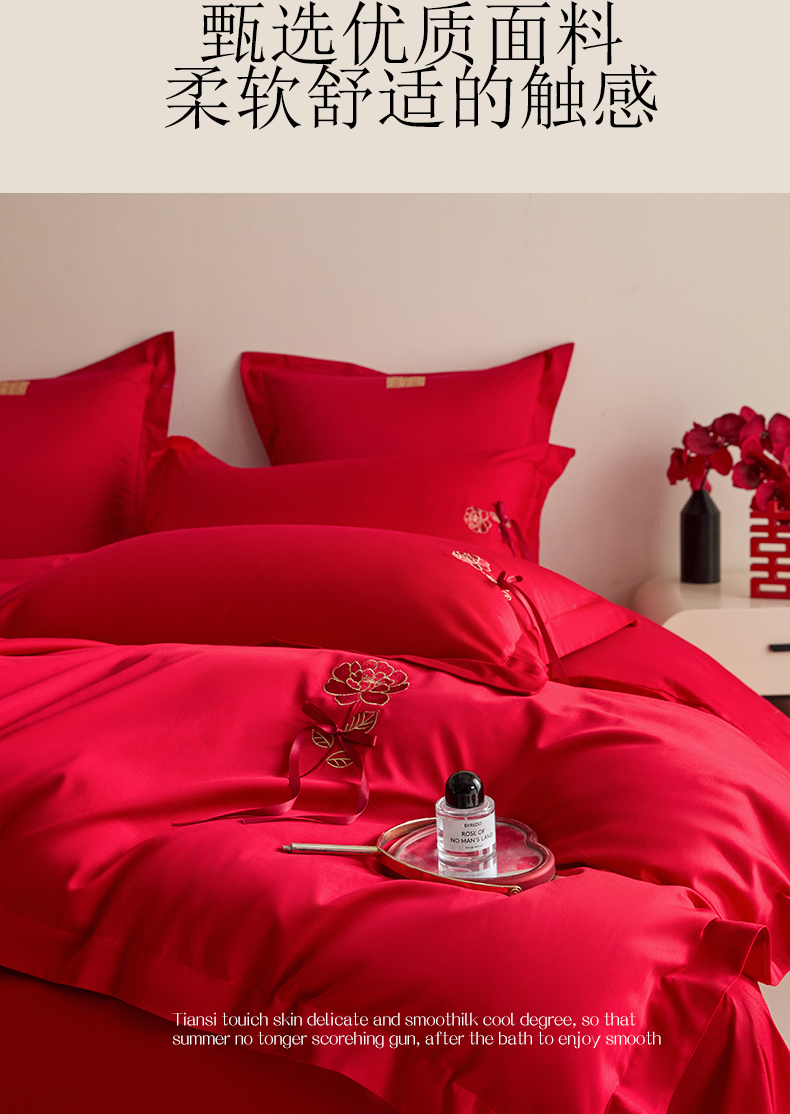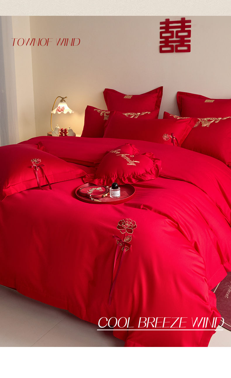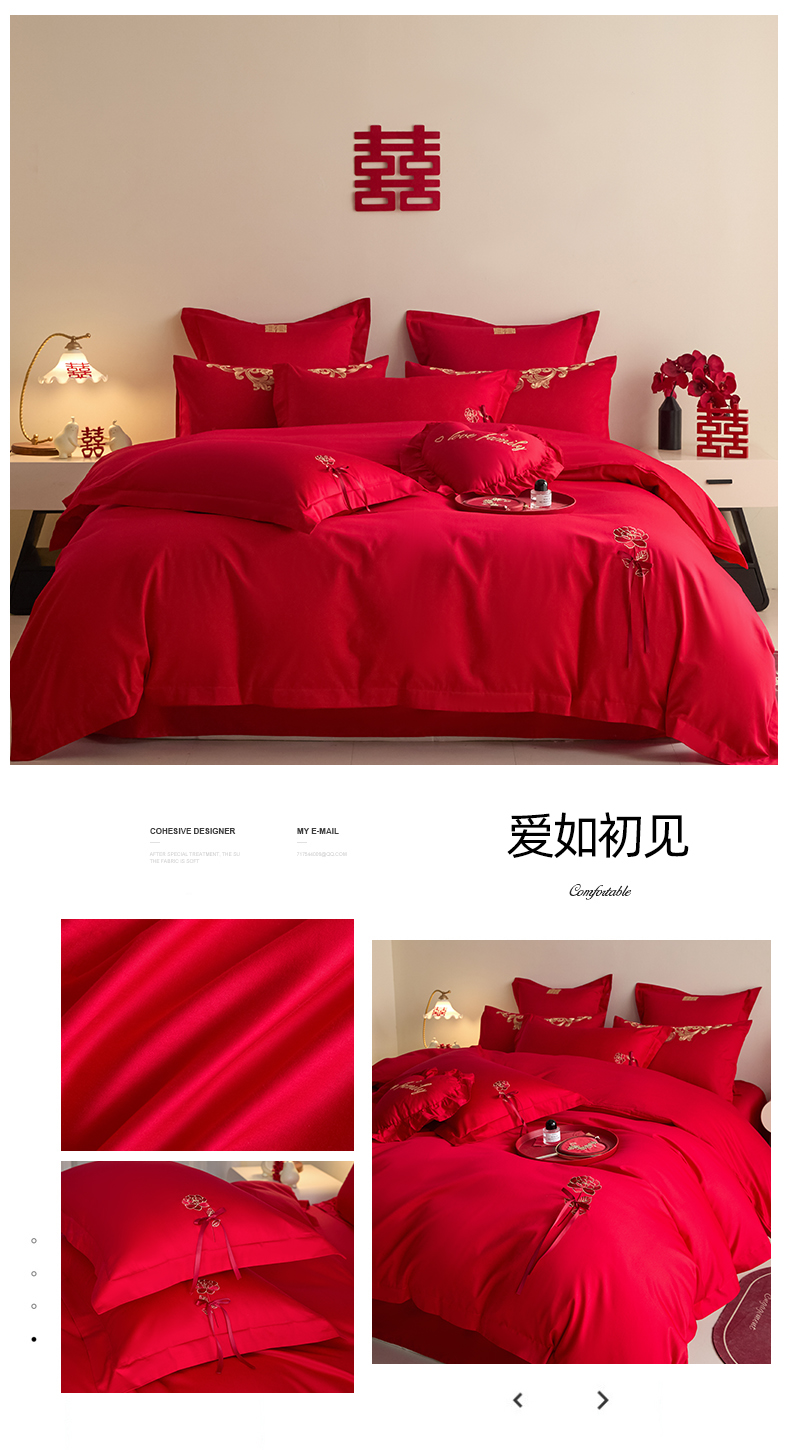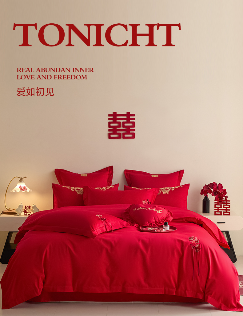 当前位置: 91家纺网 > 商品网购 > 床品套件 > 四件套 > 婚庆四件套 > 东方合美(原:皇家传奇)2025新款婚庆小红书化纤系列四件套 (控价138/148)爱如初见