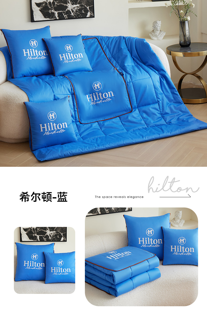 商品名称:宝马家纺(原梦童画) 2025新款全棉刺绣希尔顿四季款抱枕被 希尔顿-蓝