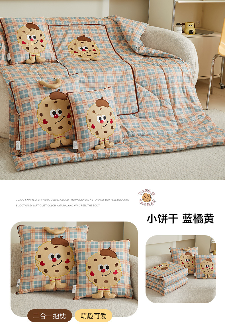 商品名称:宝马家纺(原梦童画) 2025新款全棉四季款小饼干抱枕被 小饼干-蓝橘黄