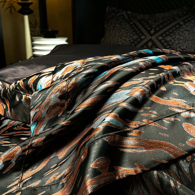 (总)仰望棉麻双层纱供应链 2026新款镂空加宽飞边全棉色织提花双层纱四件套-芳华,芳华-黑金色