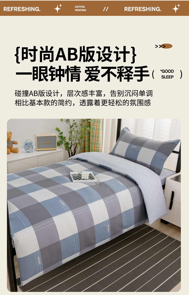 当前位置: 91家纺网 > 商品网购 > 床品套件 > 多件套 > 多件套 > 乐旗家纺 2025新款A类AB版全棉环保印花学生上下铺宿舍三件套六件套 莫斯格