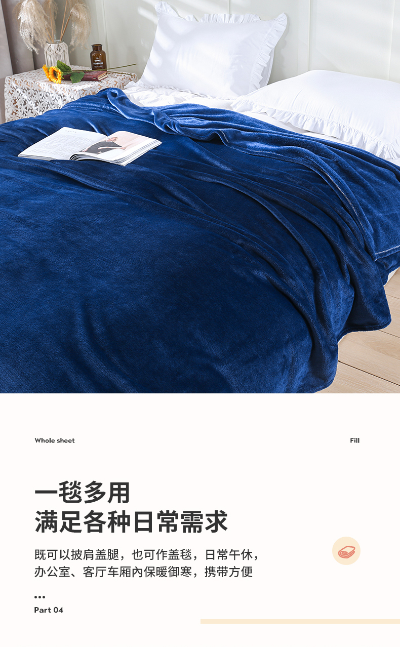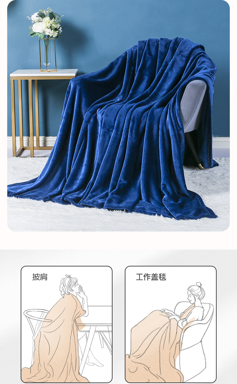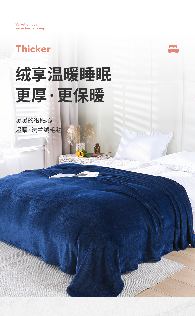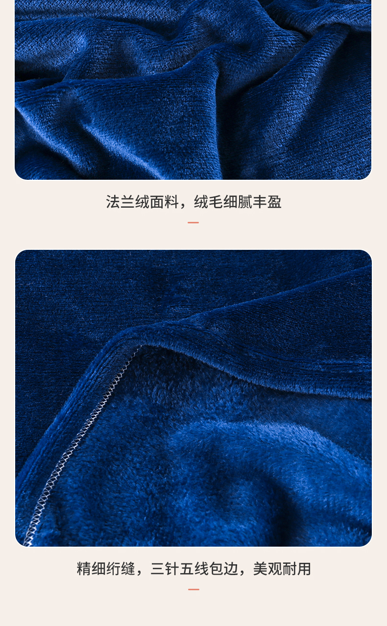 商品名称:胜百毛毯2025新款素色200克法兰绒毯 藏青