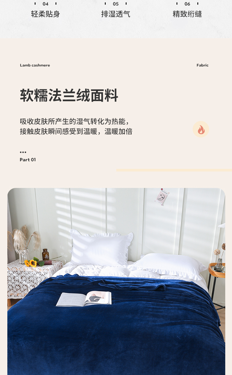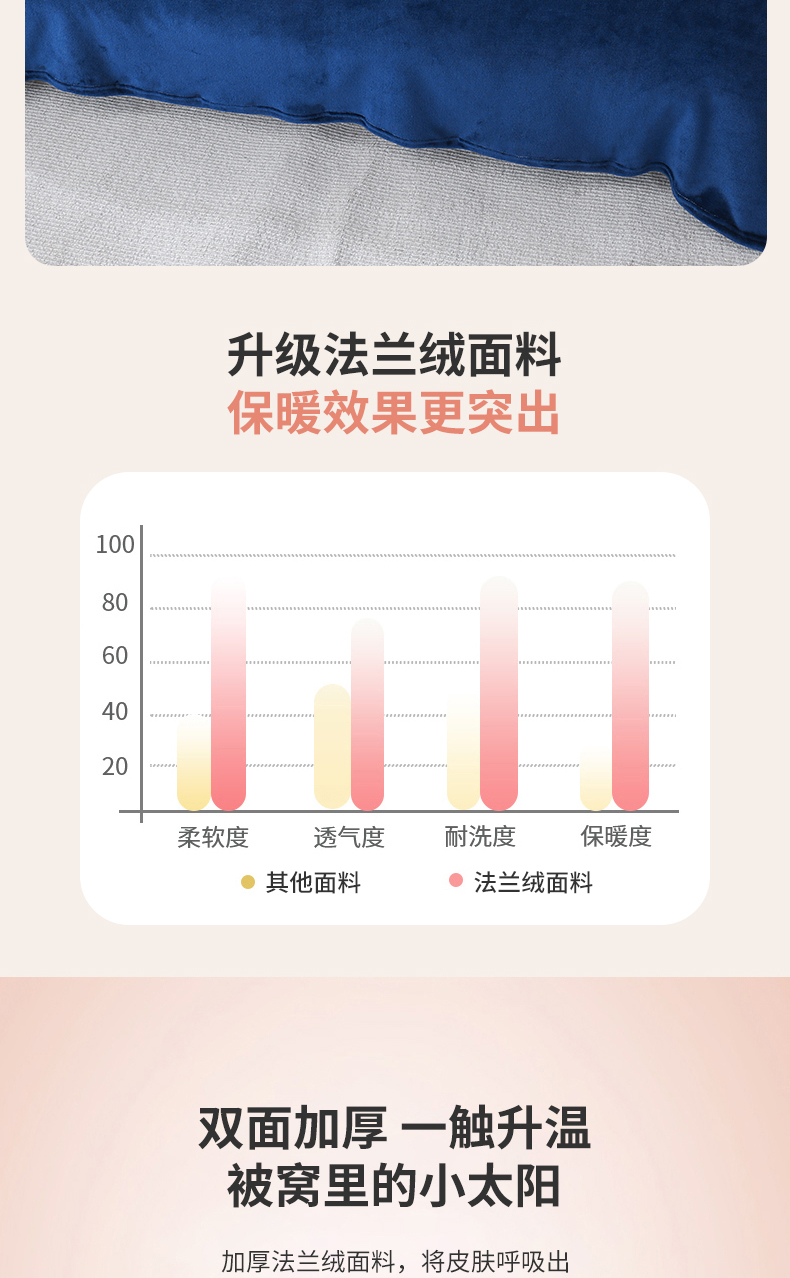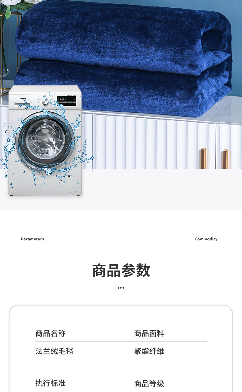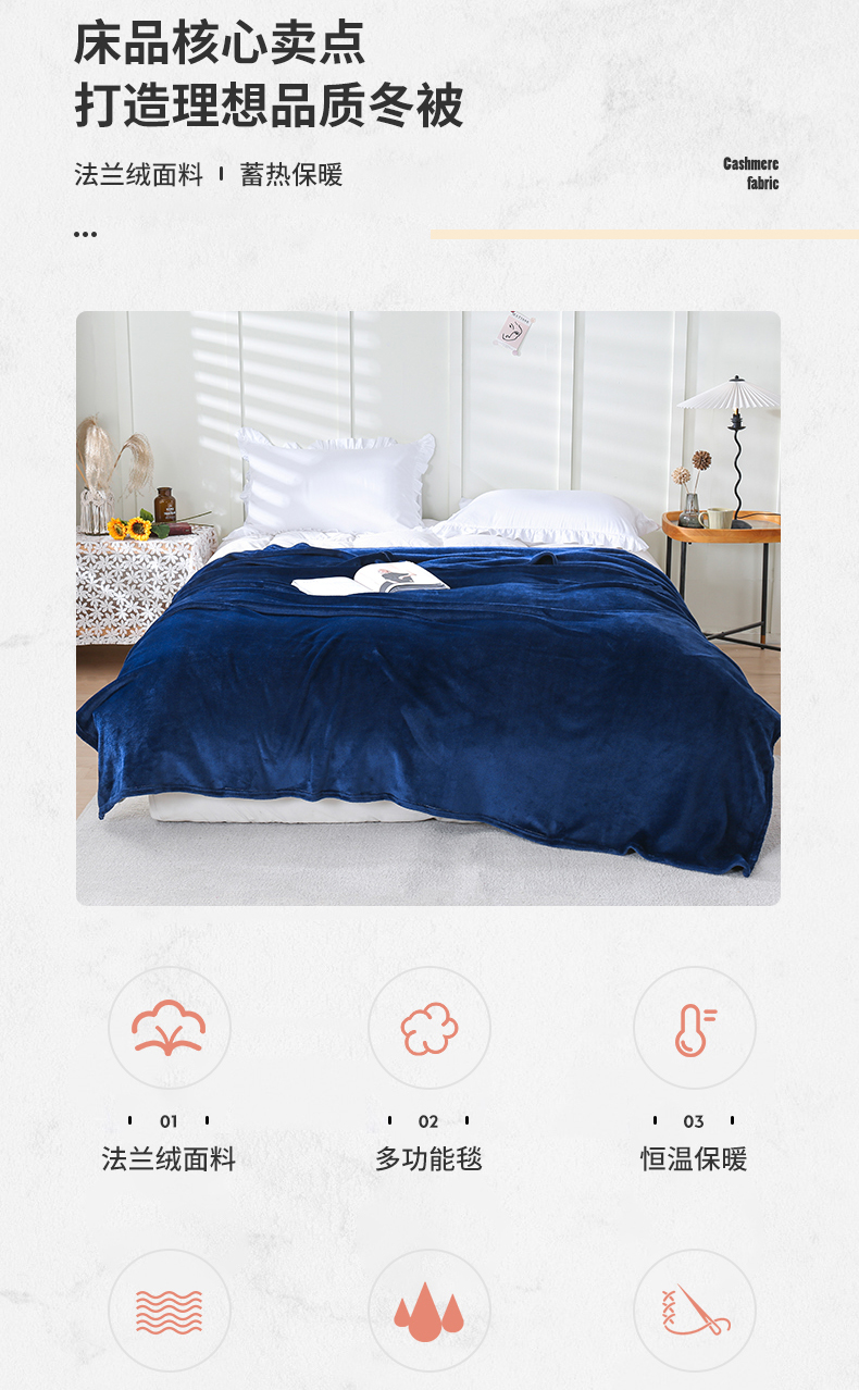 商品名称:胜百毛毯2025新款素色200克法兰绒毯 藏青