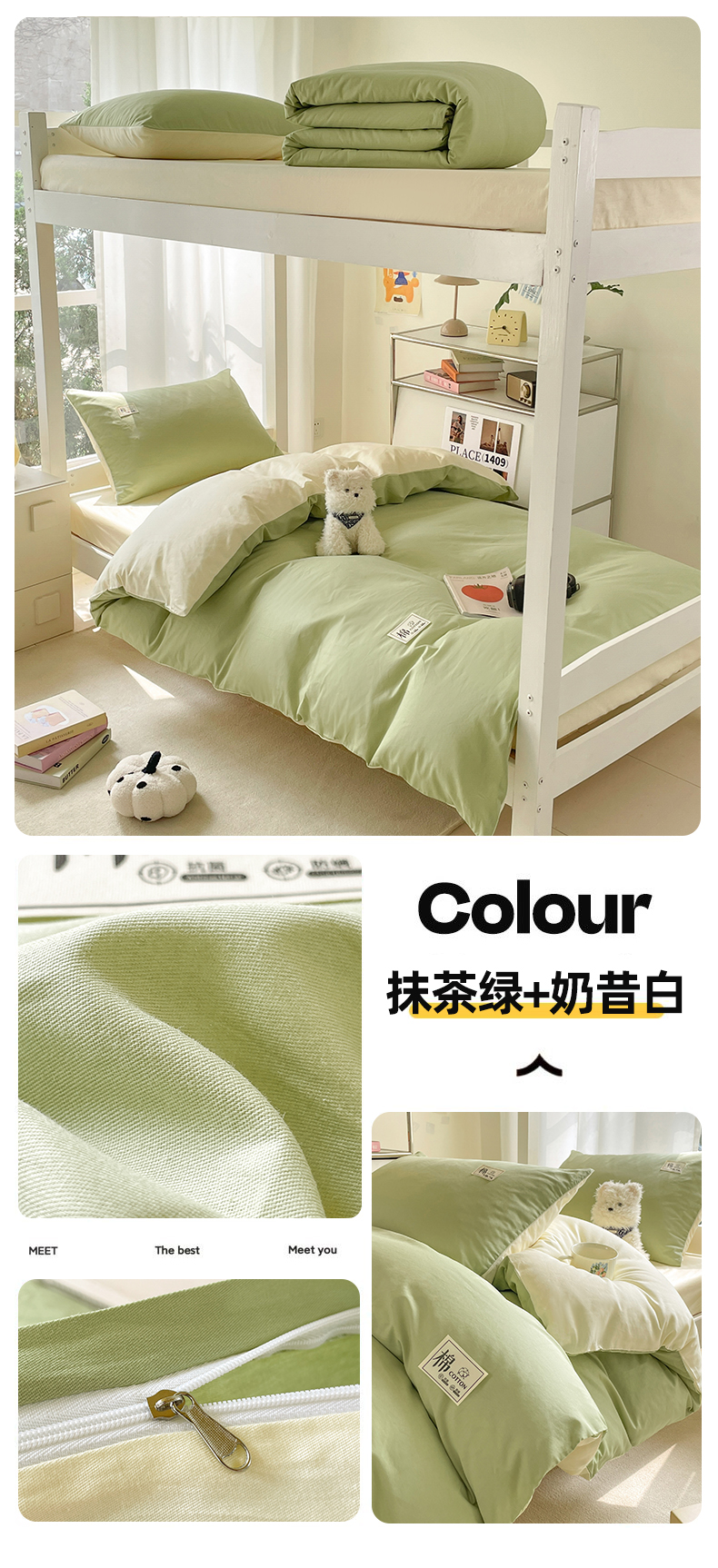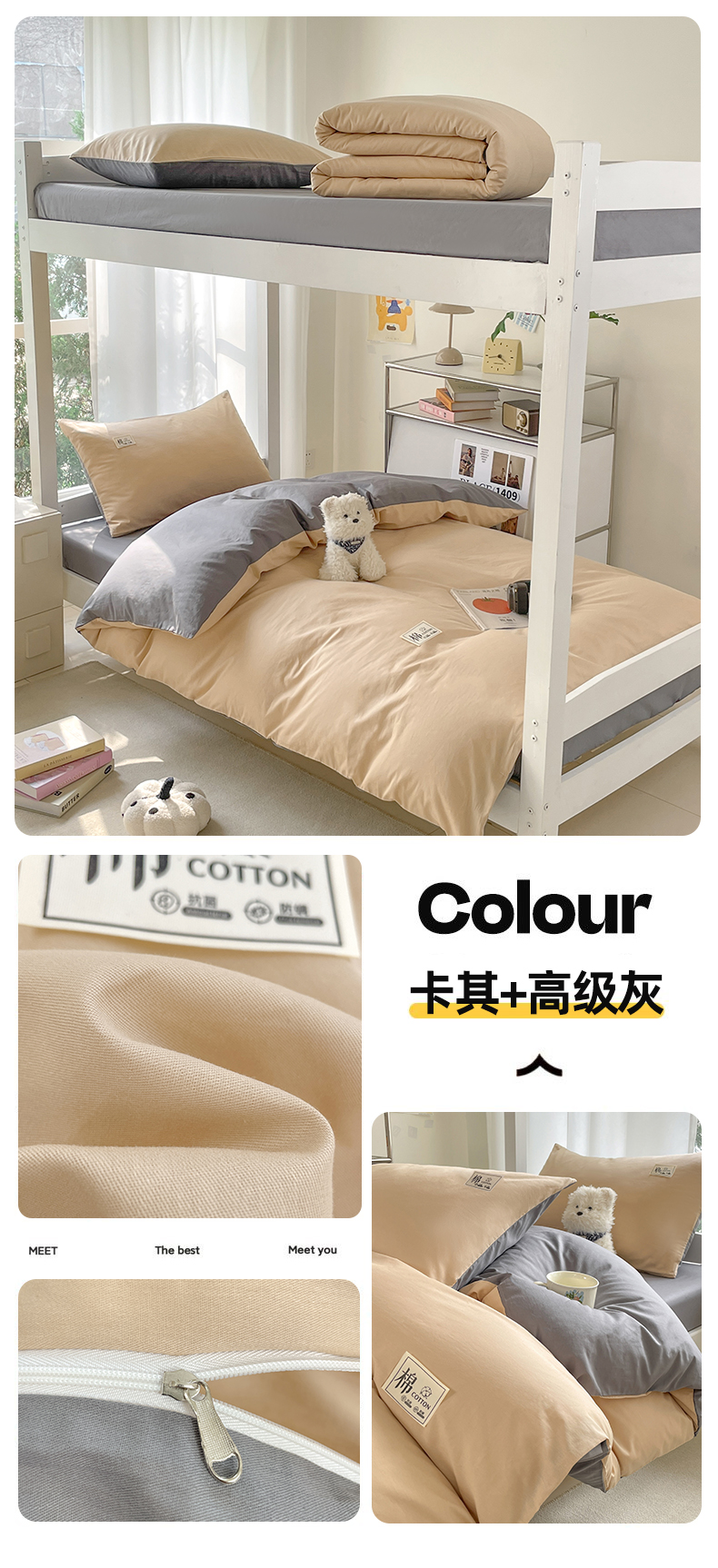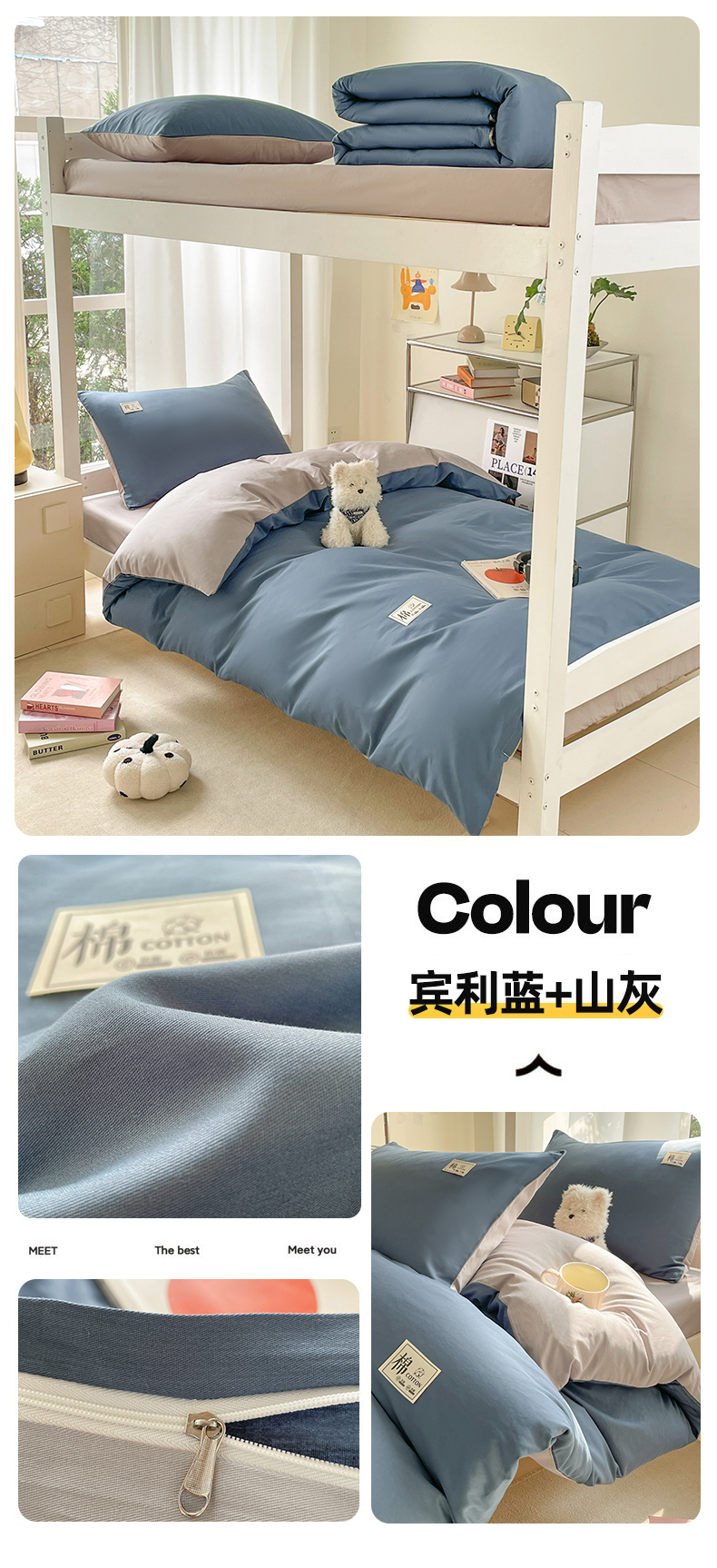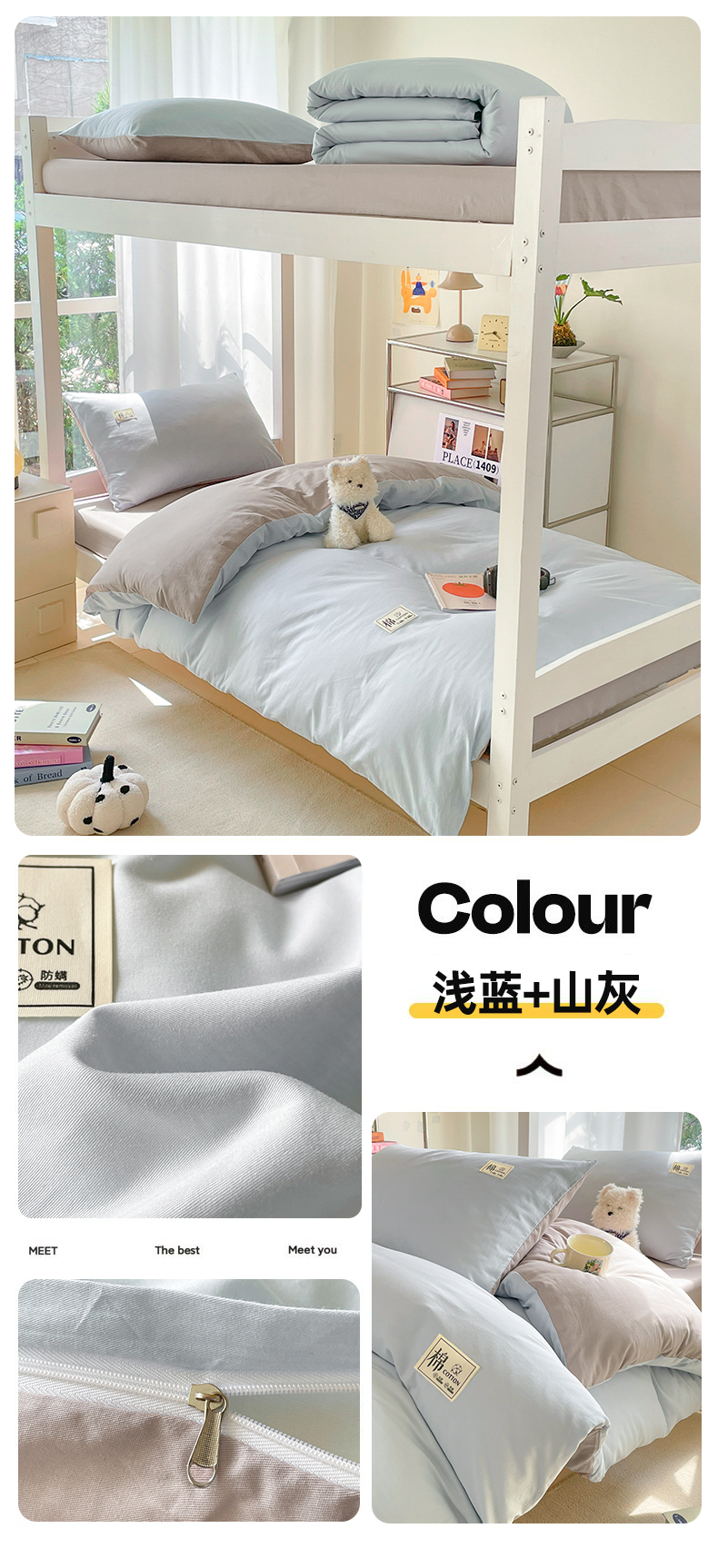 商品名称:(总)莱通家纺 2025春夏新款纯棉13372纯色双拼学生三件套六件套-商家提供买家秀