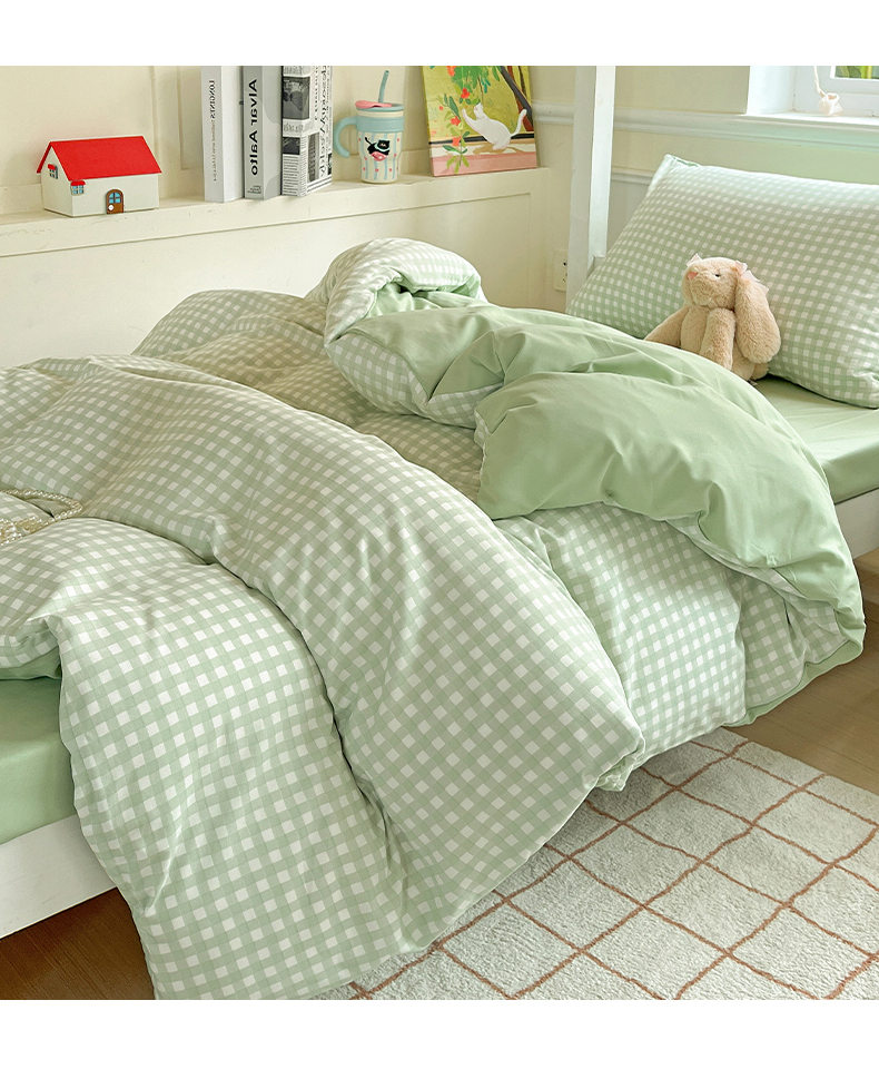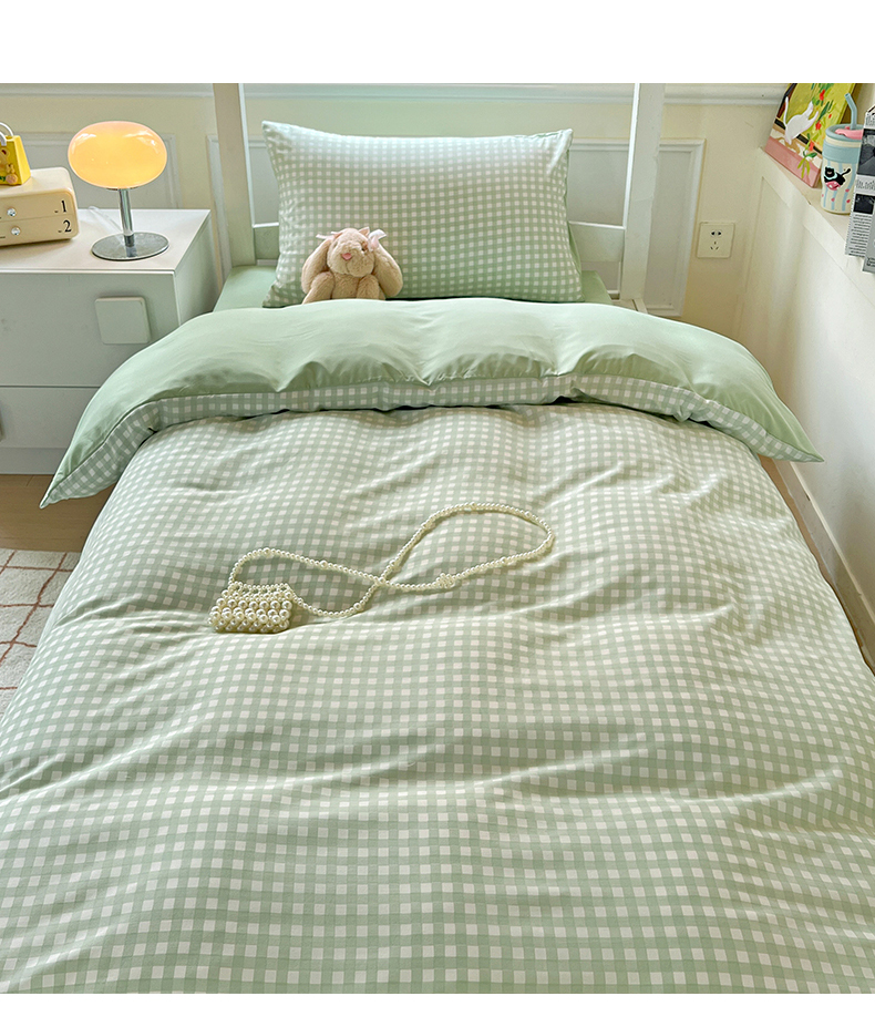 妖妖家纺 2025新款软糯水洗棉格子学生三件套 青提乐多
