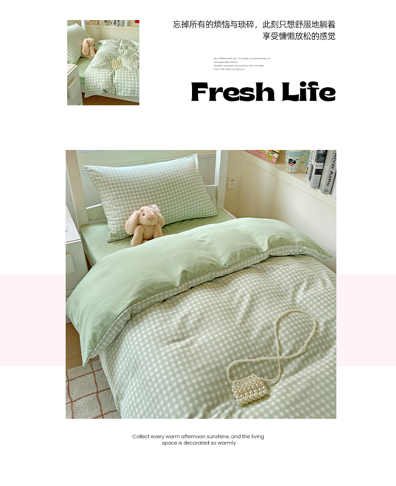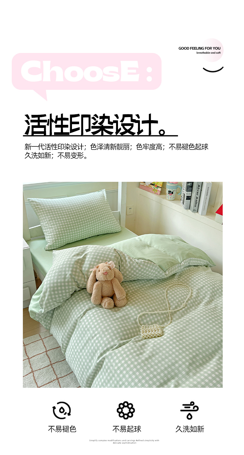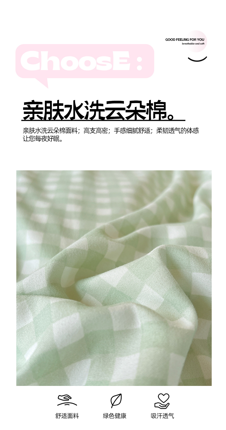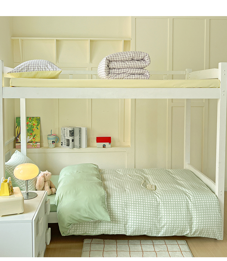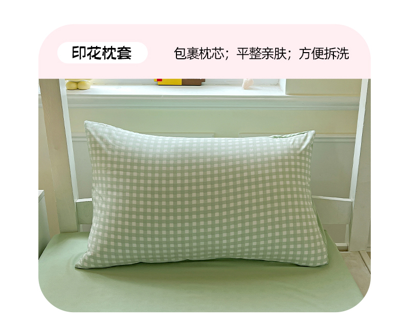 商品名称:妖妖家纺 2025新款软糯水洗棉格子学生三件套 青提乐多