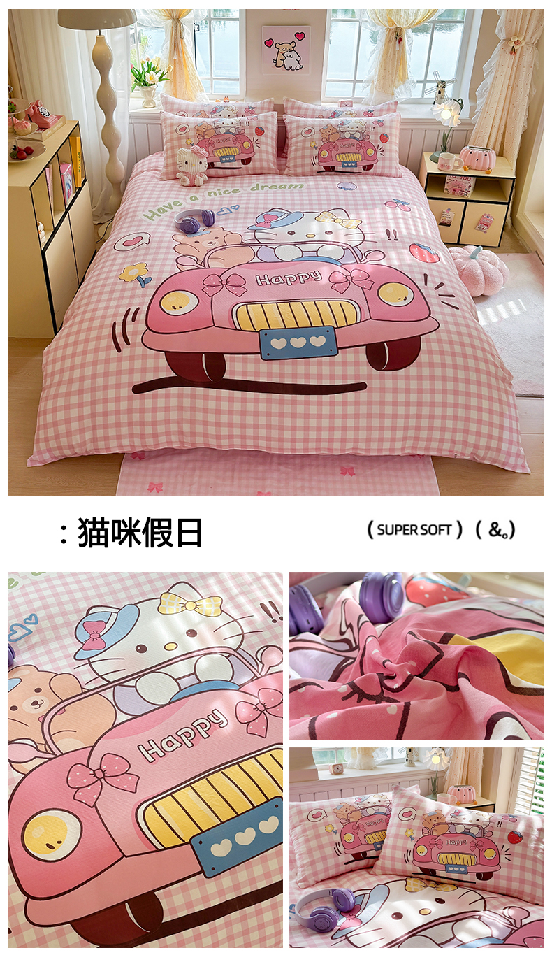 商品名称:馨语家居 2025新款全棉双层纱四件套 猫咪假日