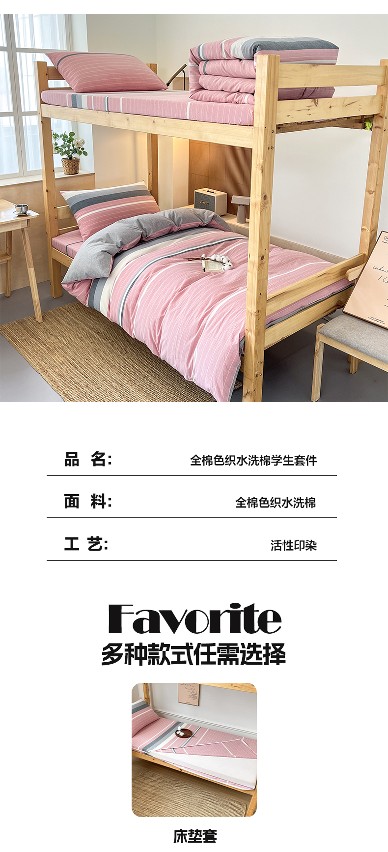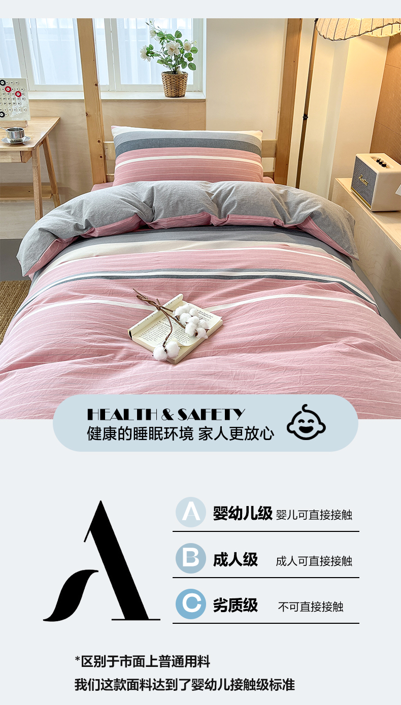 商品名称:鸣升家纺 2025新款全棉纯棉色织水洗棉学生三件套 格林粉