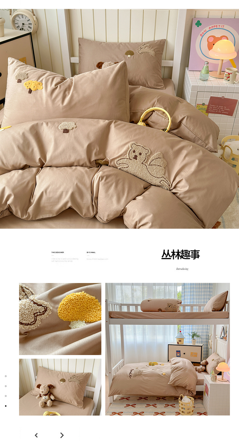 当前位置: 91家纺网 > 商品网购 > 床品套件 > 三件套 > 锦觅 2025新款学生季全棉纯棉毛巾绣三件套奶油小清新刺绣四件套(全文件大图以及买家秀) 丛林趣事