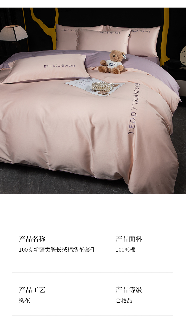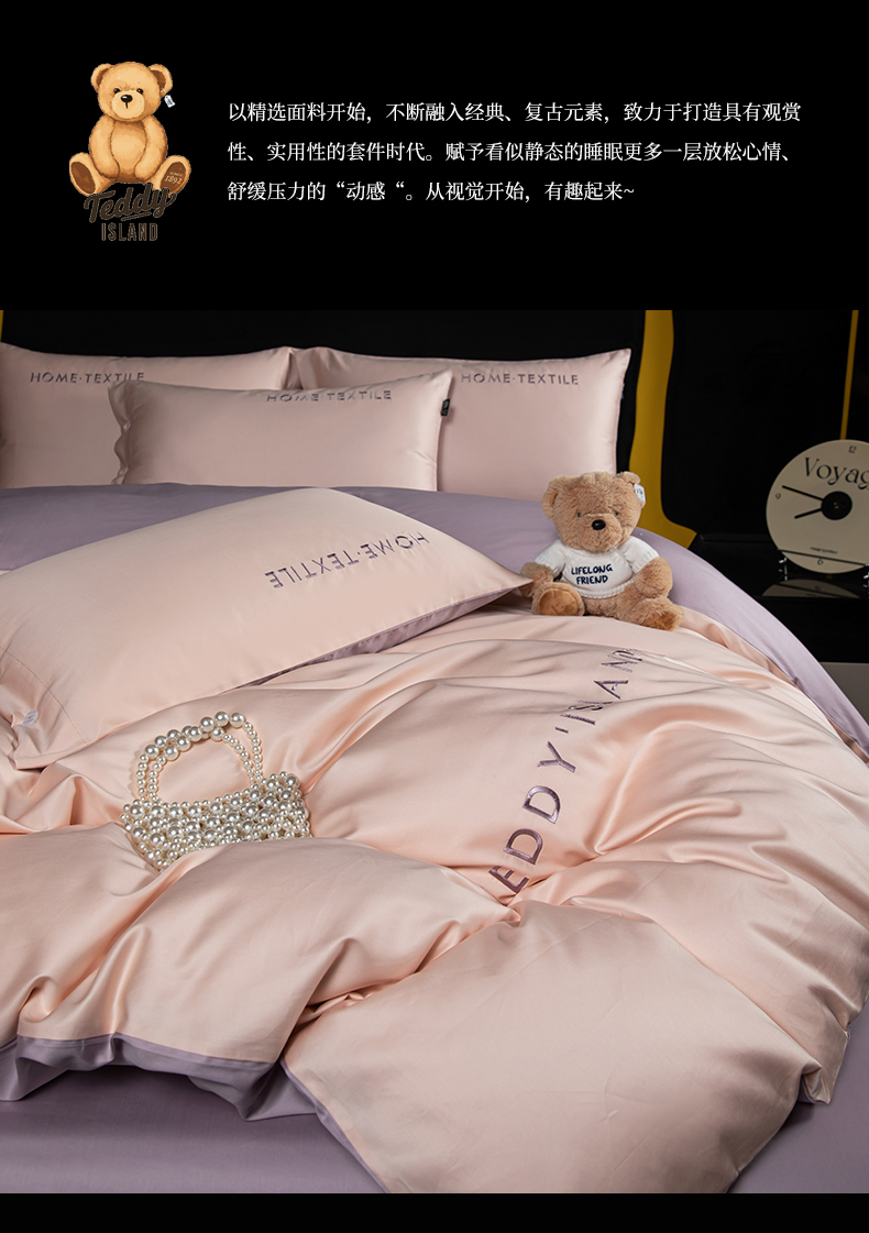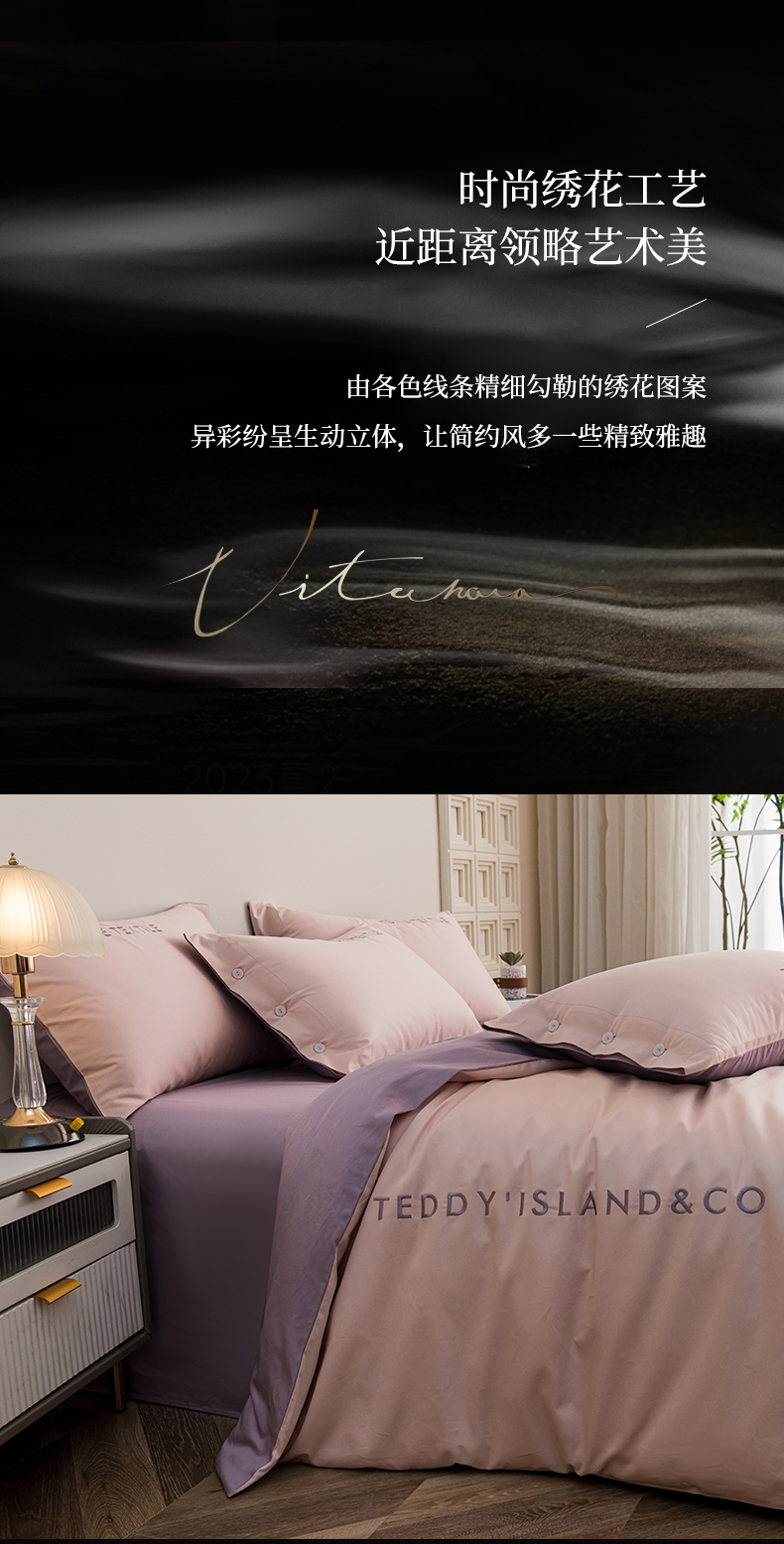 当前位置: 91家纺网 > 商品网购 > 床品套件 > 四件套 > 全棉活性四件套 > 泰迪爱兰Teddy 2025新款100支(50支)全棉贡缎字母绣花四件套 低调粉+加仑紫