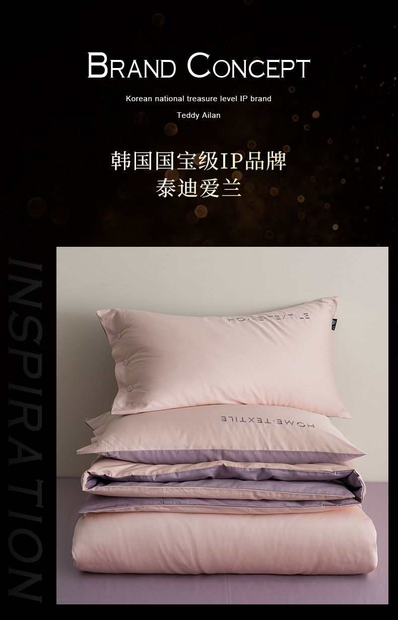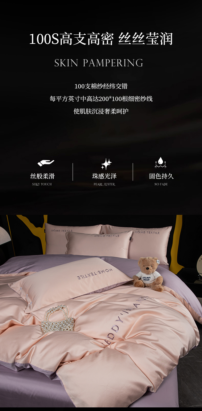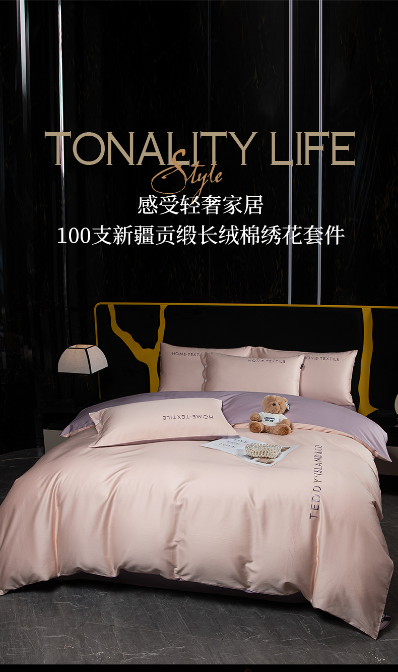 当前位置: 91家纺网 > 商品网购 > 床品套件 > 四件套 > 全棉活性四件套 > 泰迪爱兰Teddy 2025新款100支(50支)全棉贡缎字母绣花四件套 低调粉+加仑紫