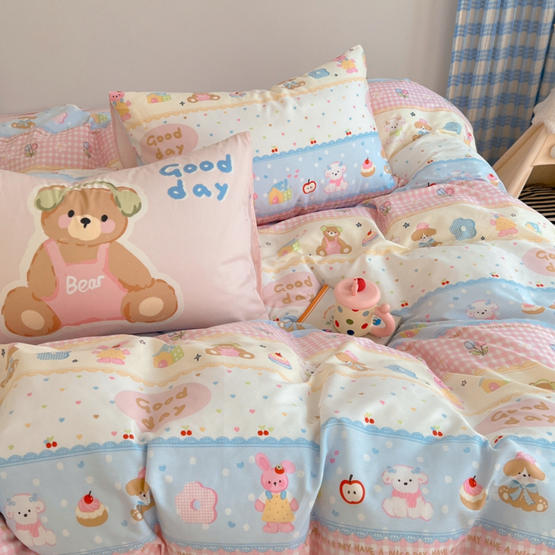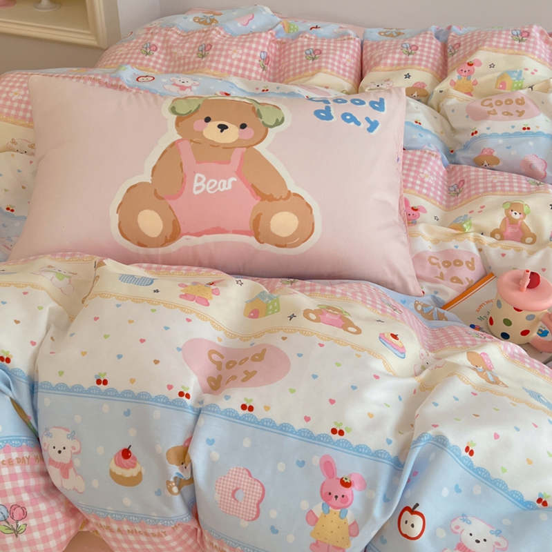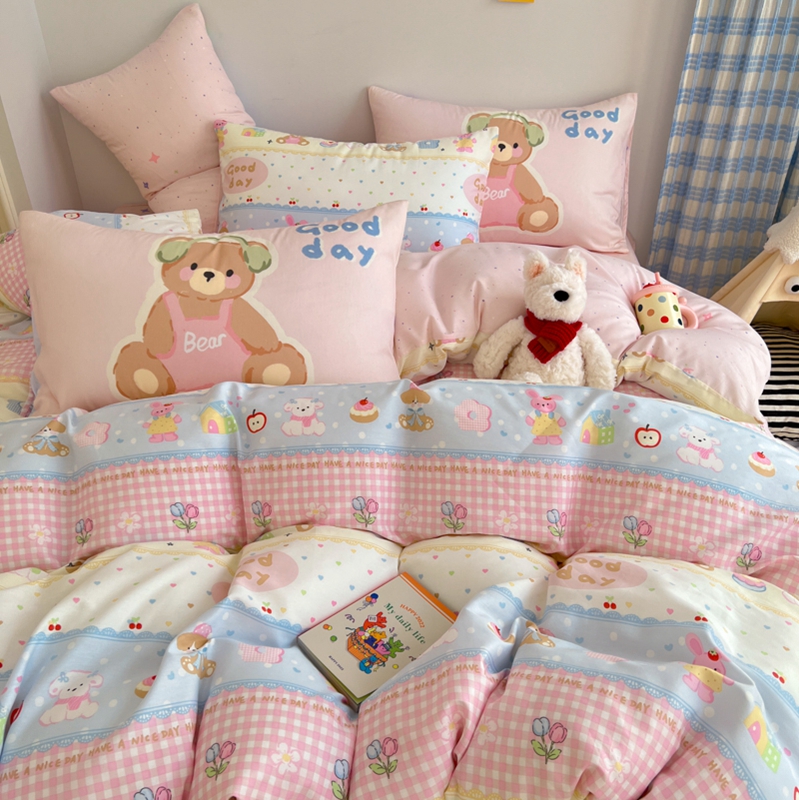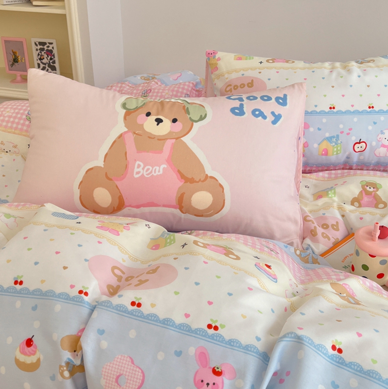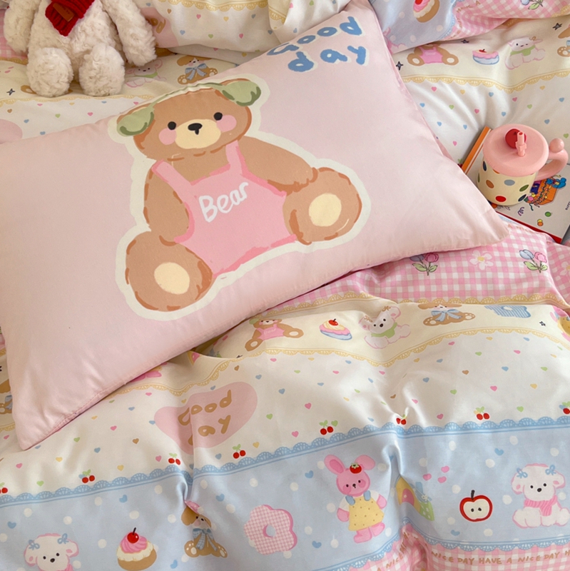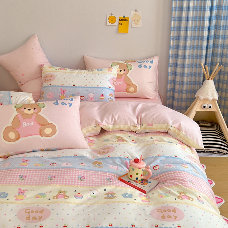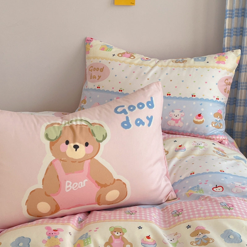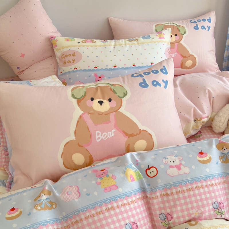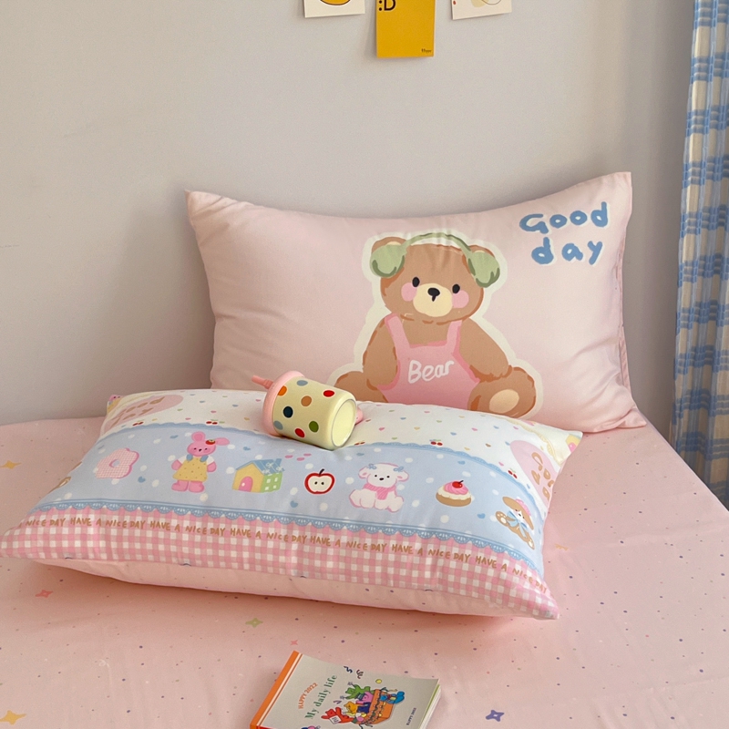 桃喜 2025新款6月开学季全棉混搭枕套13070学生三件套四件套 小熊派