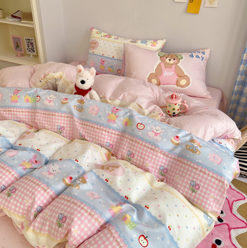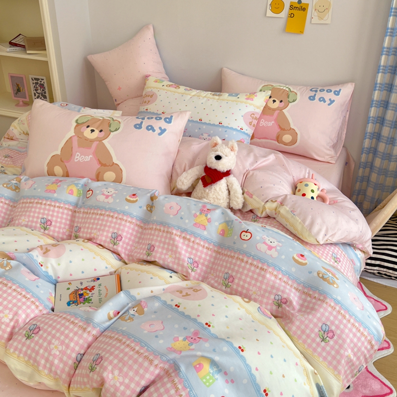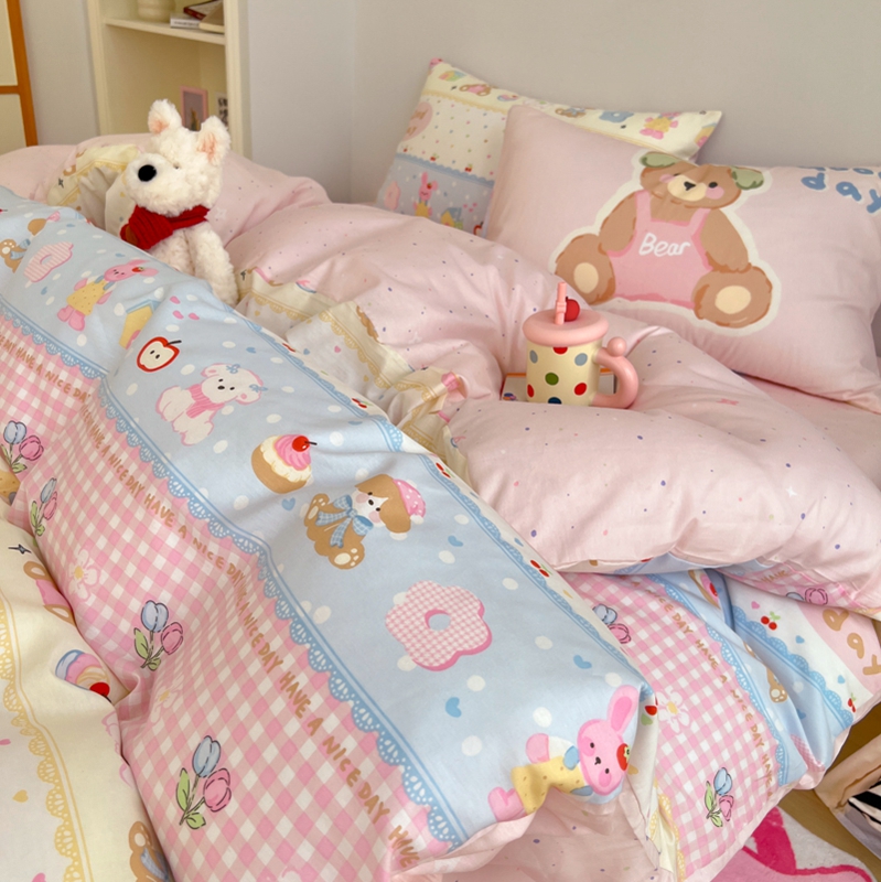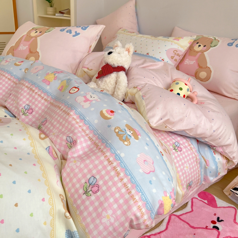 (总)桃喜 2026新款全棉混搭卡通印花学生三件套四件套,费尔岛蝴蝶结小狗,费尔岛小熊,可爱动物团,可爱小兔子,星星猫咪
