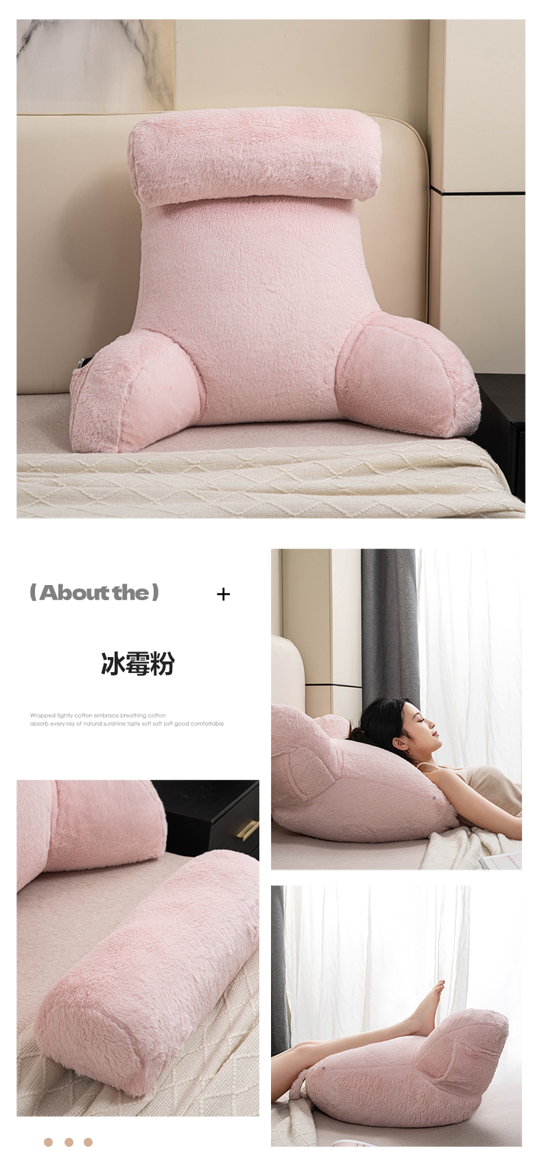 (总)一兰家纺 2024新款泰迪绒三角靠垫床头大靠背腰靠沙发靠背可拆洗-楠妮系列,楠妮-冰霉粉,楠妮-琥珀棕,楠妮-芥末黄,楠妮-咖啡,楠妮-破境白,楠妮-浅系灰,楠妮-蔚蓝