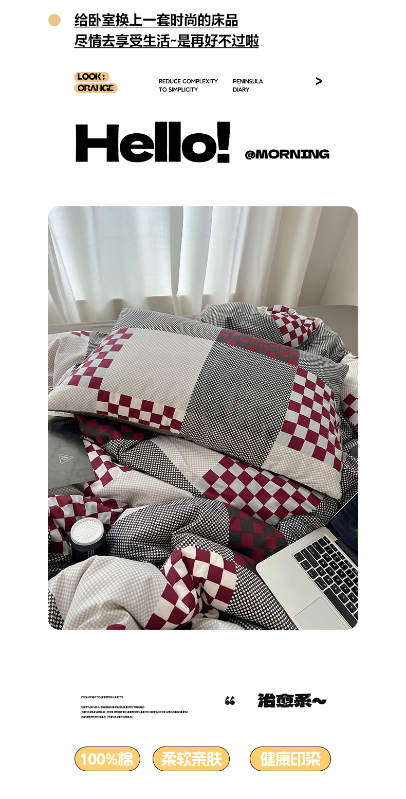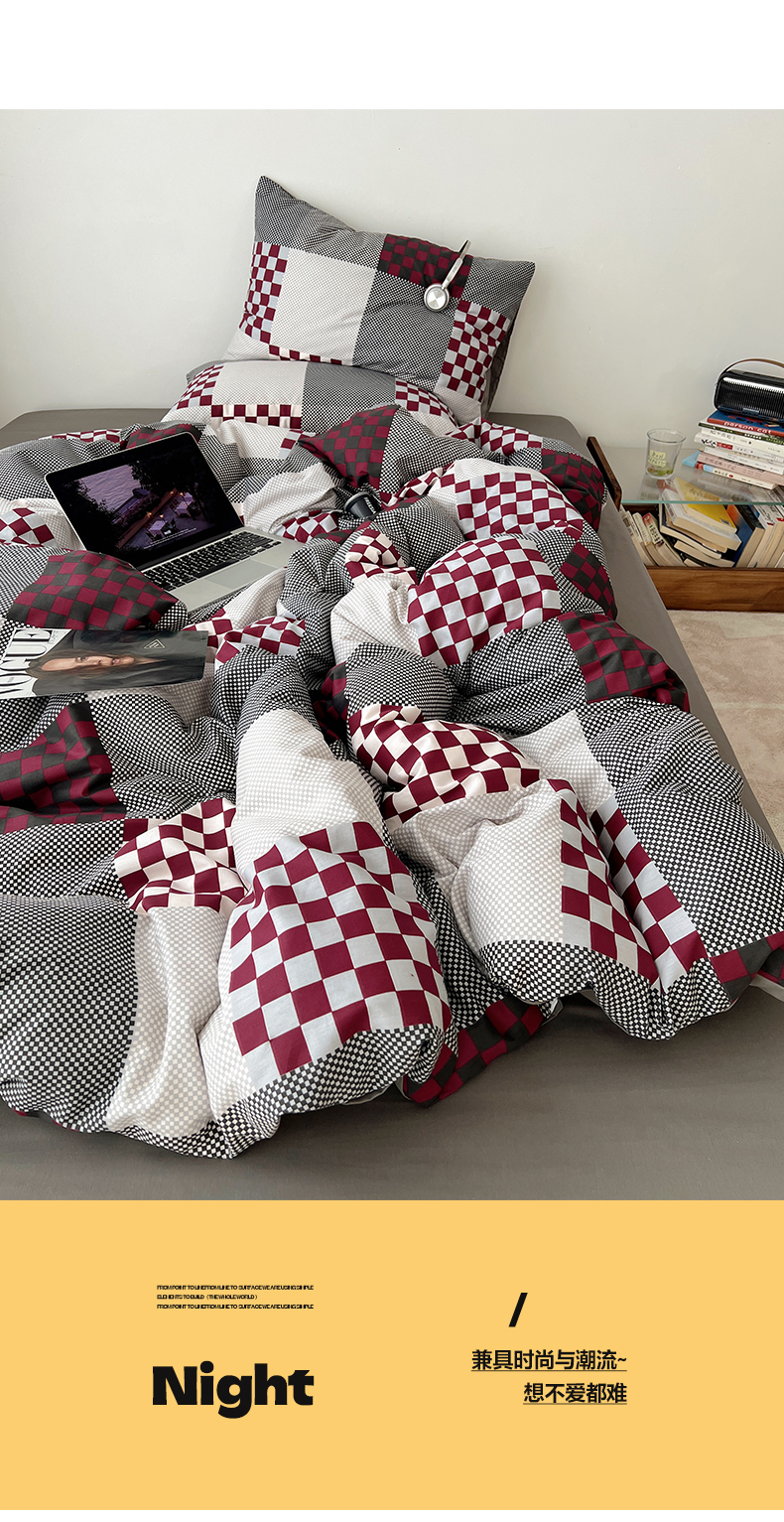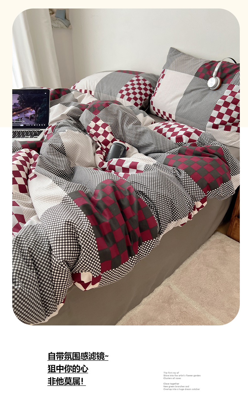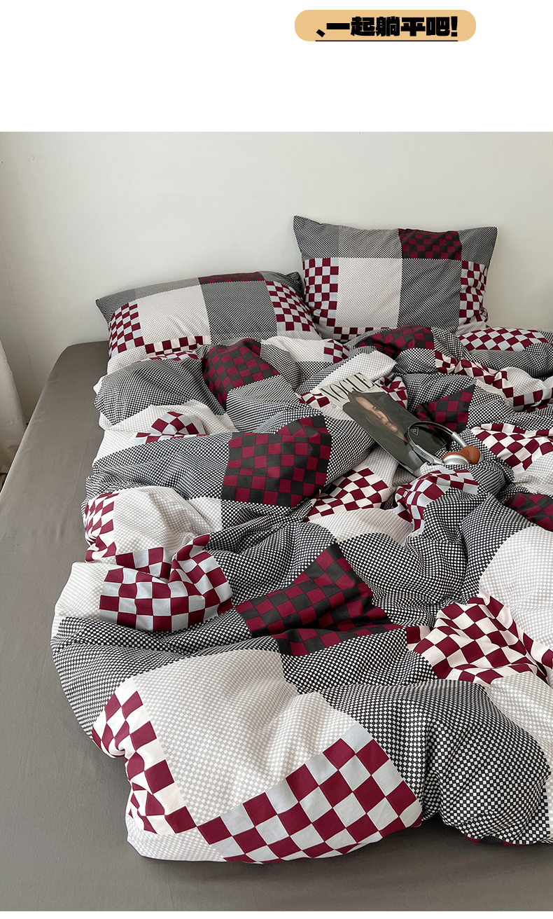 当前位置: 91家纺网 > 商品网购 > 床品套件 > 四件套 > 全棉普通四件套 > 雅居纺家纺 2025春夏新款全棉纯棉印花四件套 红灰格