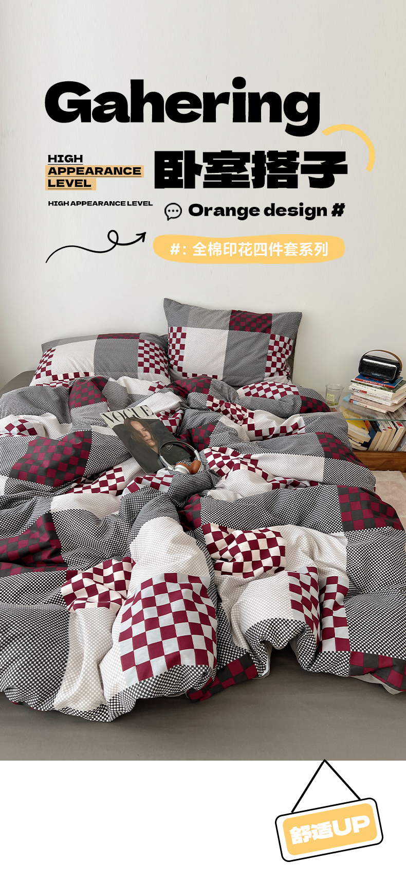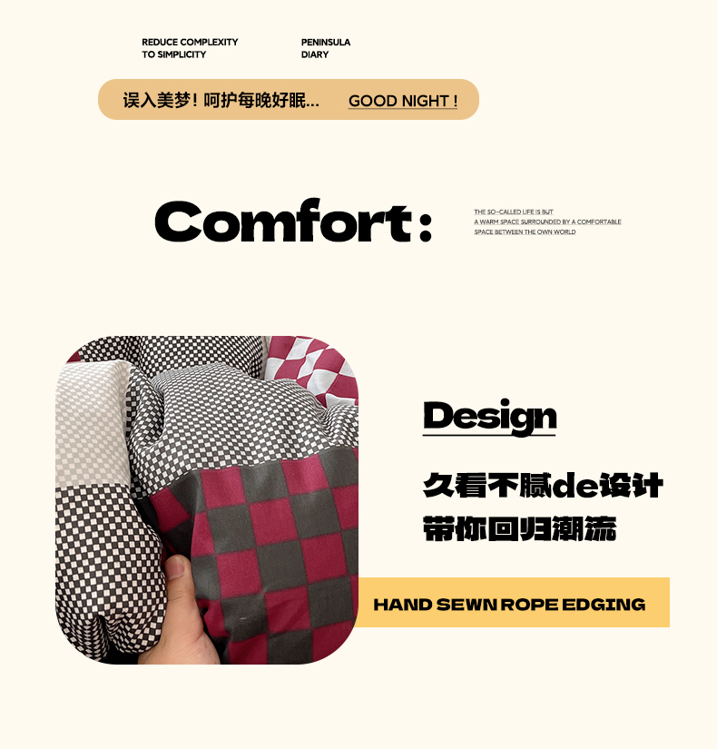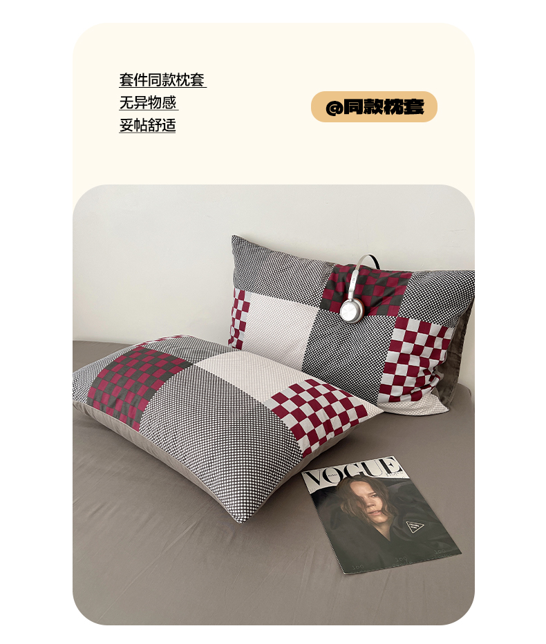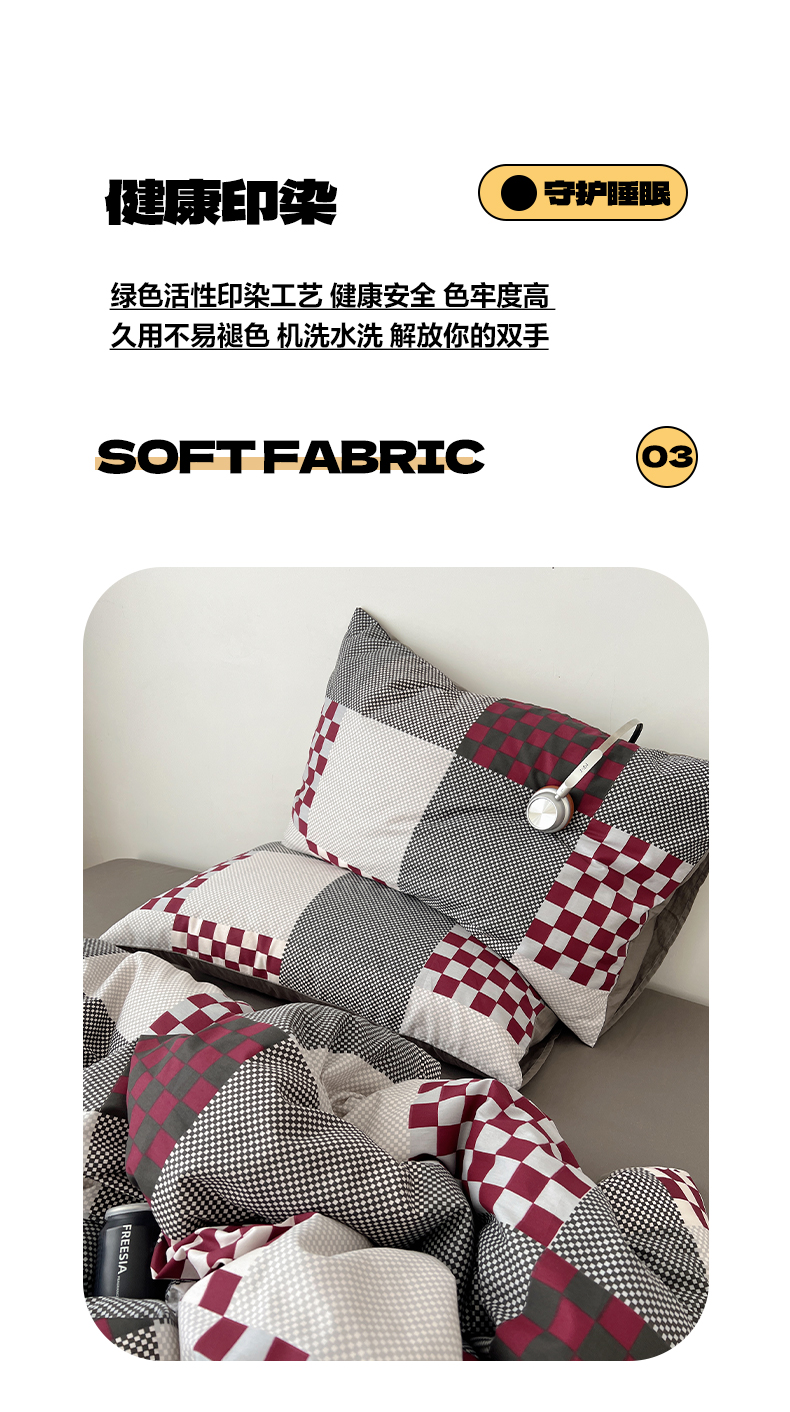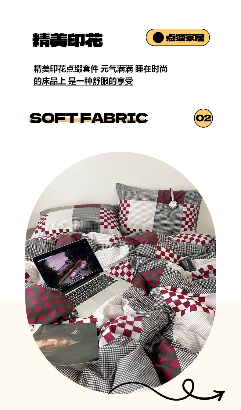 当前位置: 91家纺网 > 商品网购 > 床品套件 > 四件套 > 全棉普通四件套 > 雅居纺家纺 2025春夏新款全棉纯棉印花四件套 红灰格