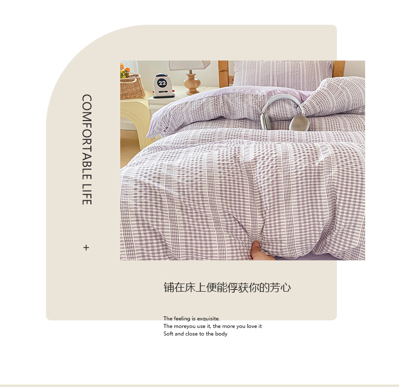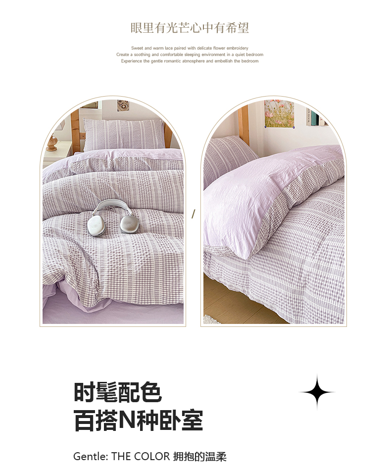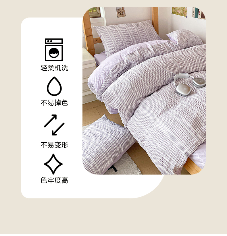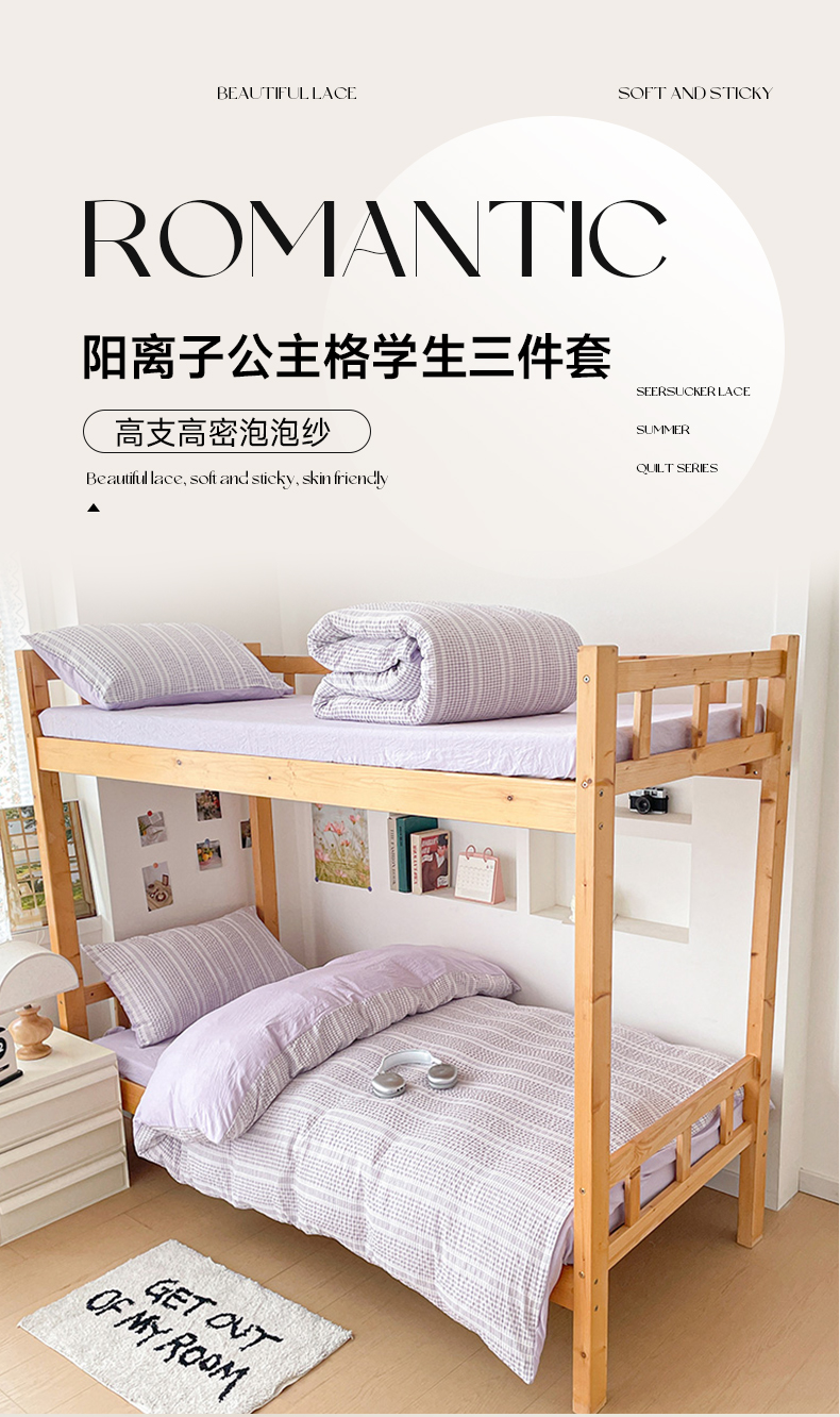 商品名称:卡普家居 2025新款阳离子公主格学生三件套 阳离子公主格紫罗兰