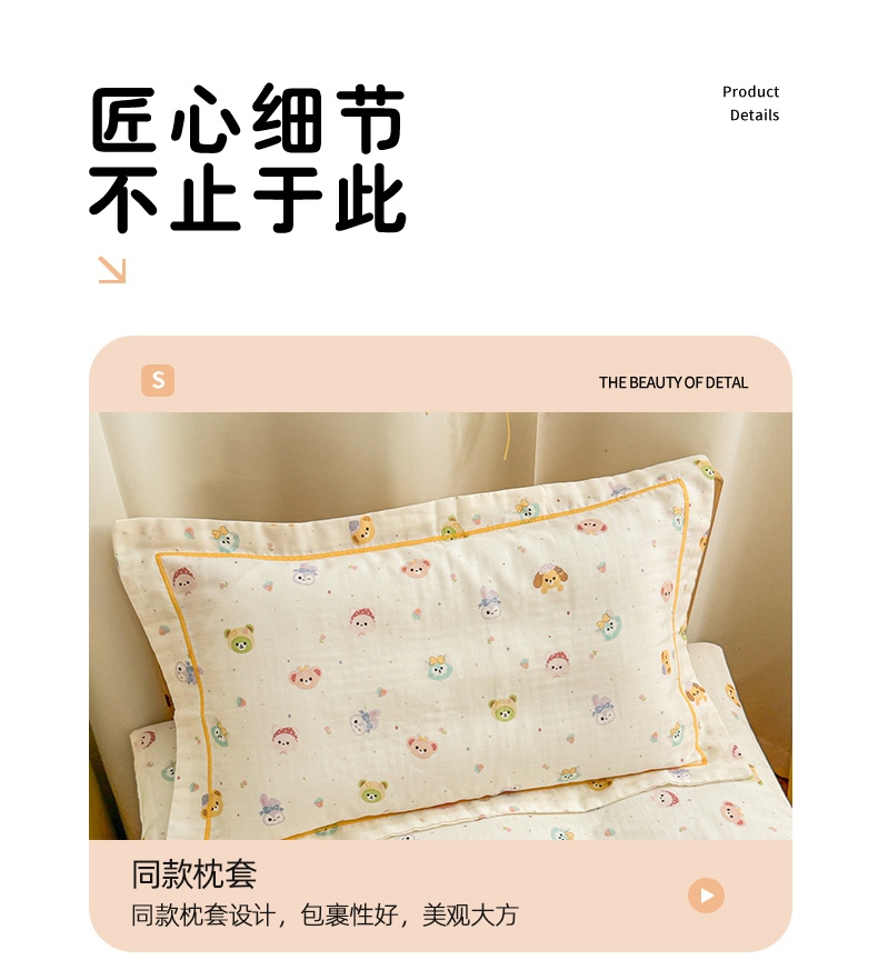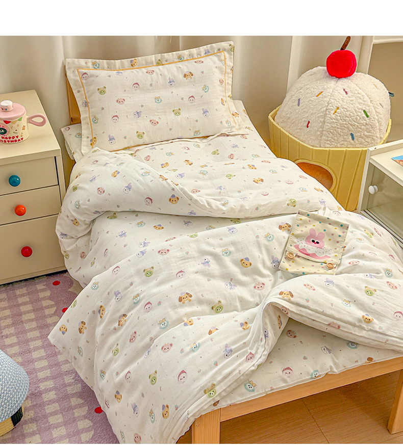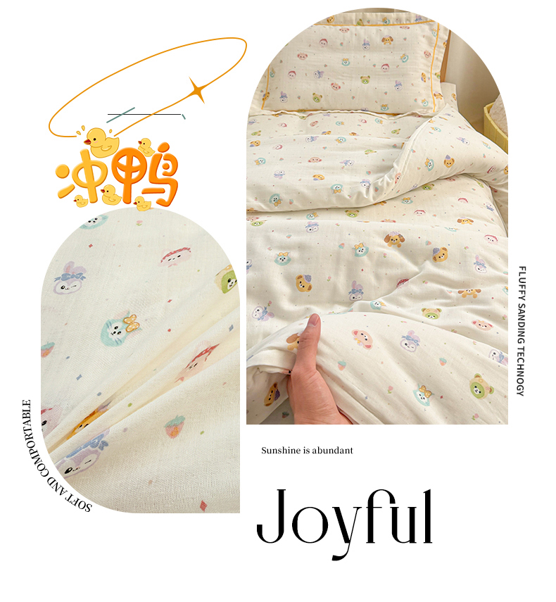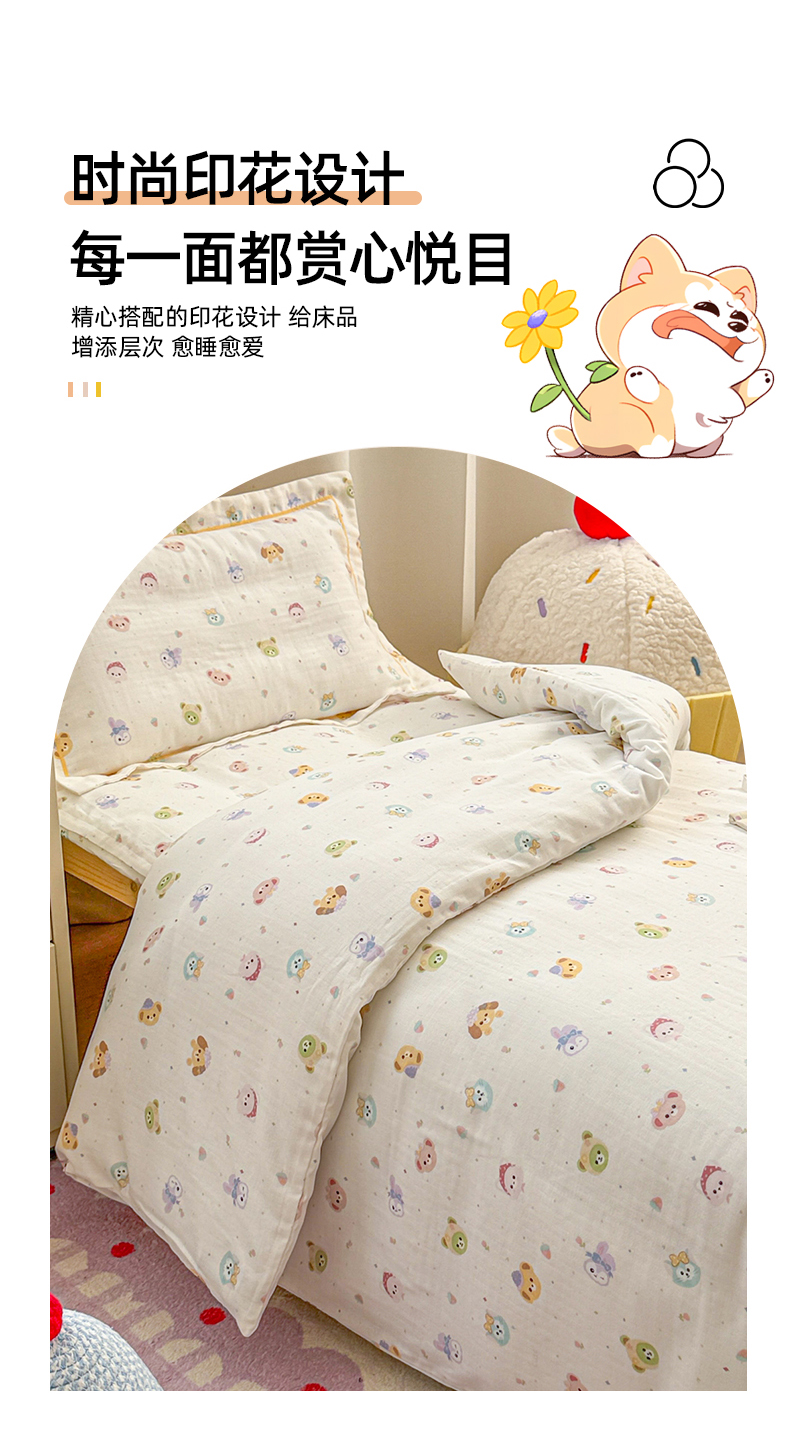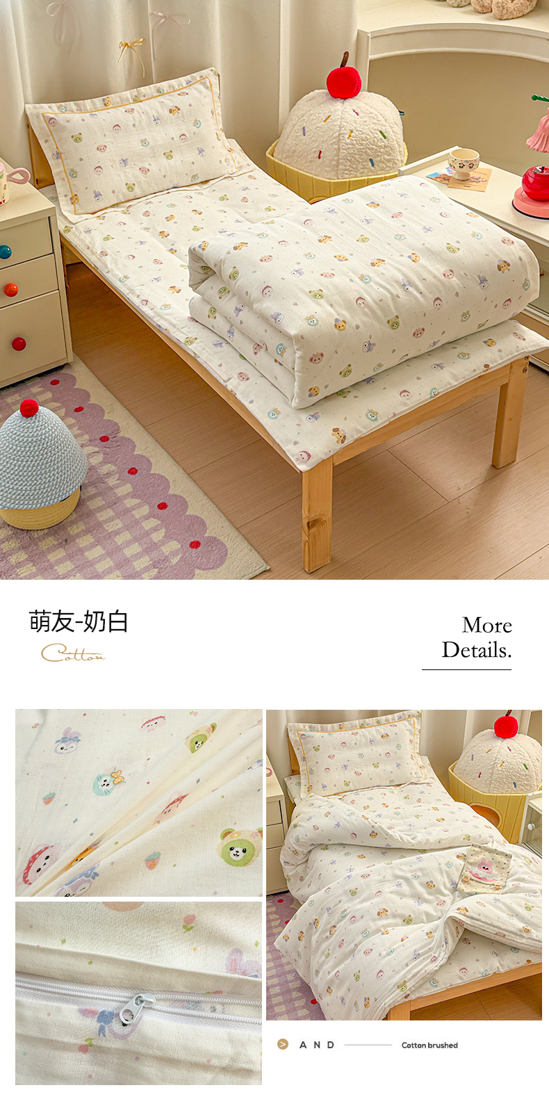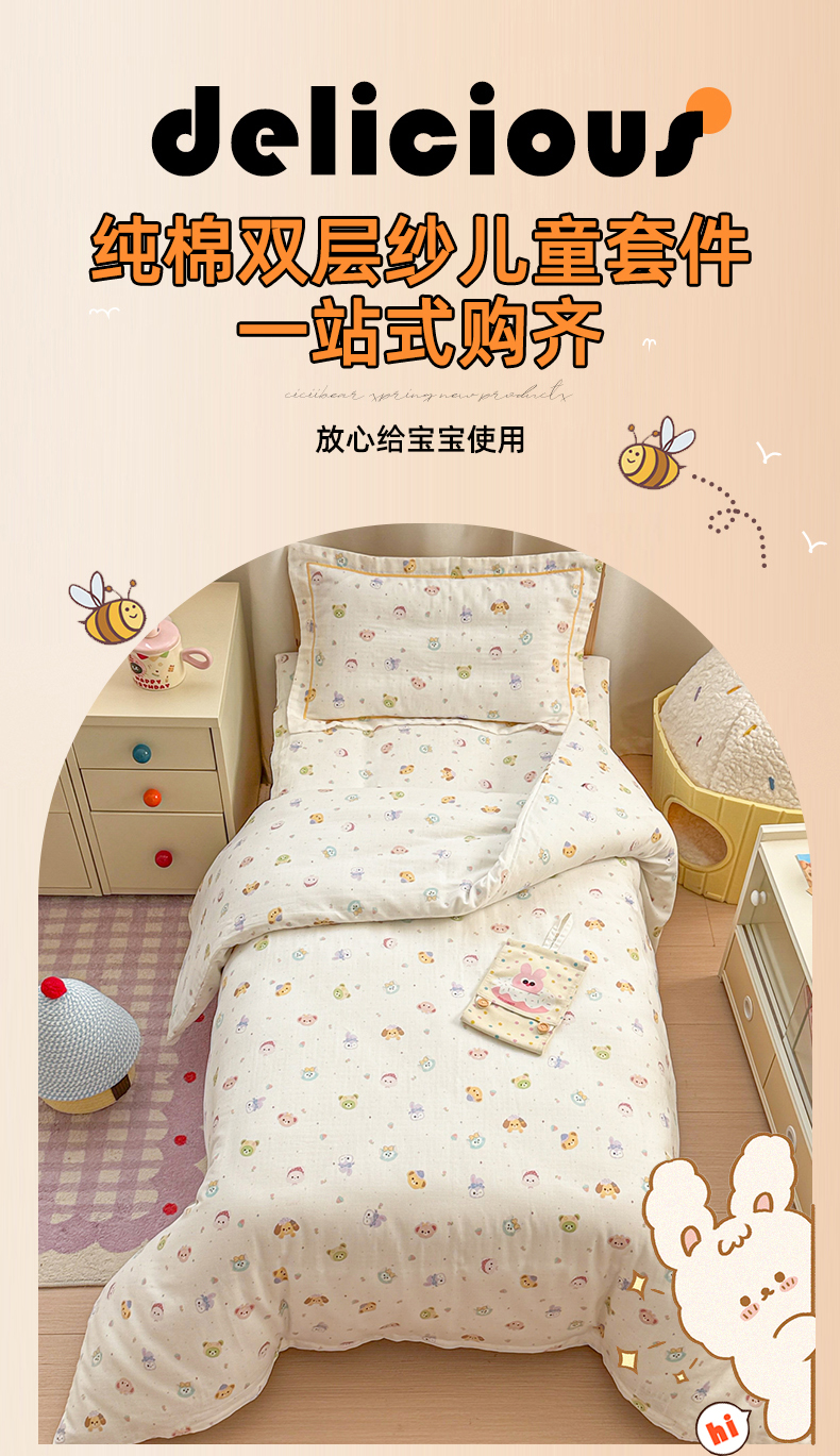 当前位置: 91家纺网 > 商品网购 > 床品套件 > 四件套 > 其它四件套 > 简宜家居(朝初家纺) 2025新款幼儿园双层纱套件 萌友-奶白