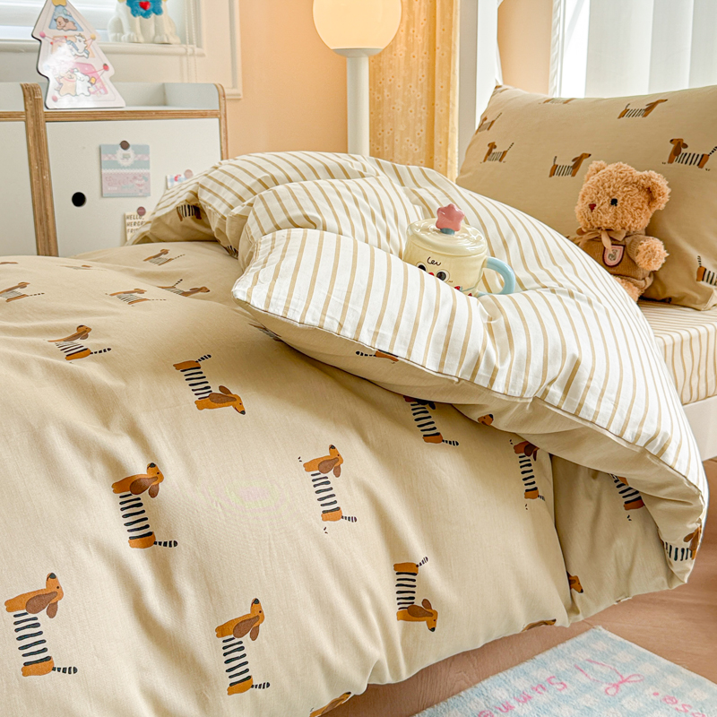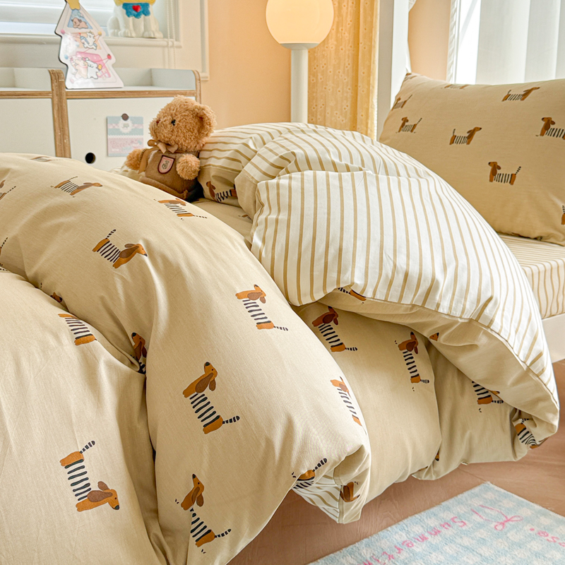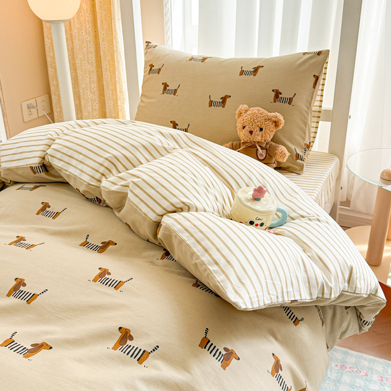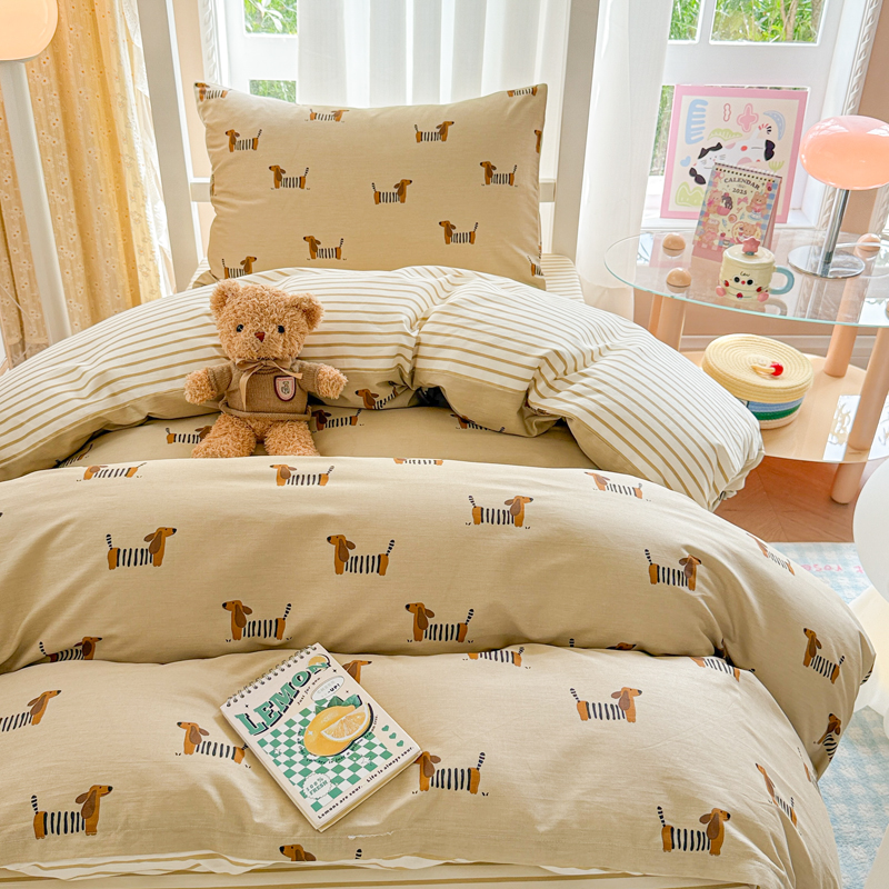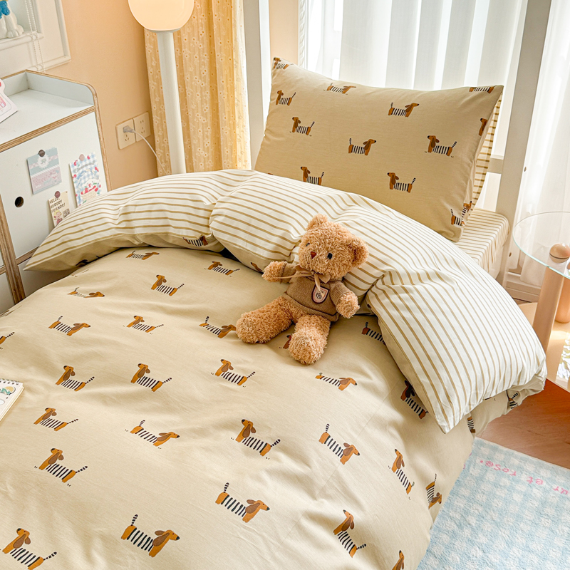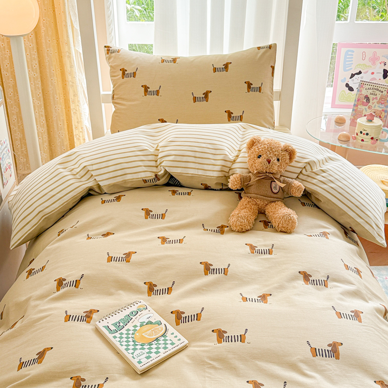 当前位置: 91家纺网 > 商品网购 > 床品套件 > 四件套 > 全棉普通四件套 > 呗旺鹿 2025新款学生床全棉纯棉卡通小清新三件套四件套 腊肠狗