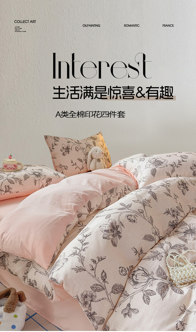 当前位置: 91家纺网 > 商品网购 > 床品套件 > 四件套 > 全棉普通四件套 > 恒爱家纺2025新款A类全棉印花四件套 恍然如梦