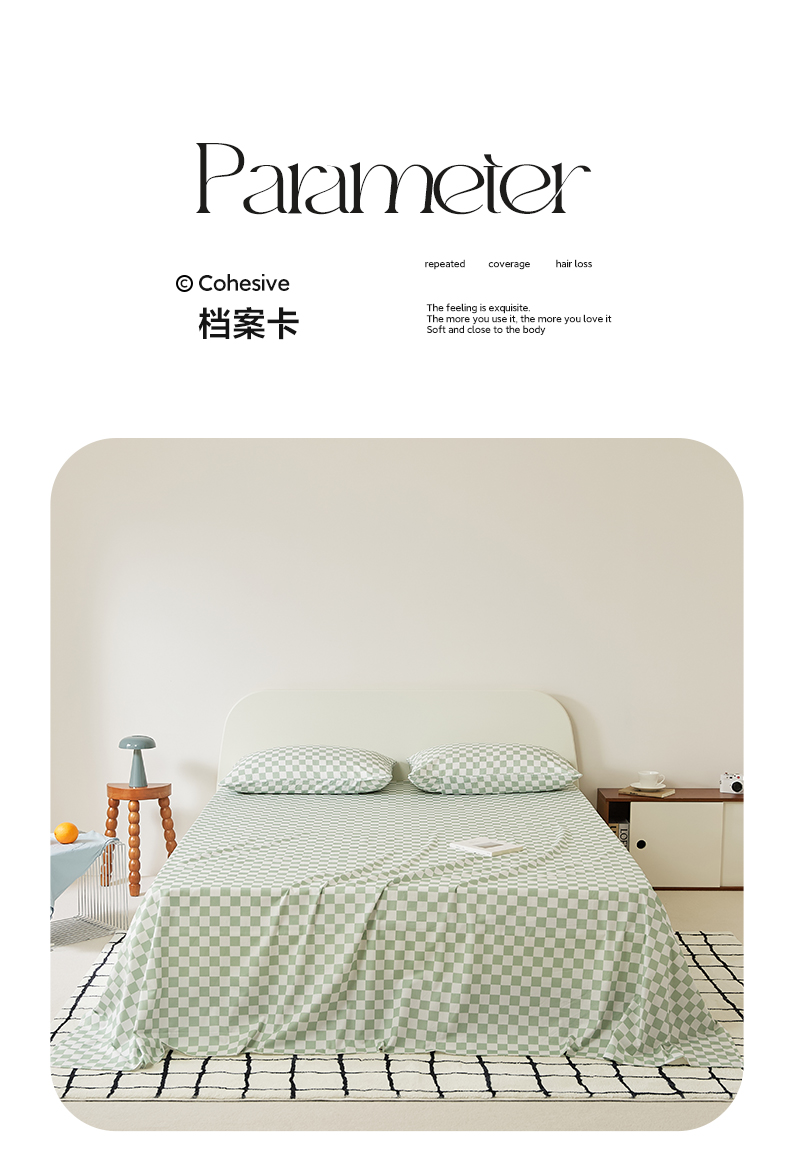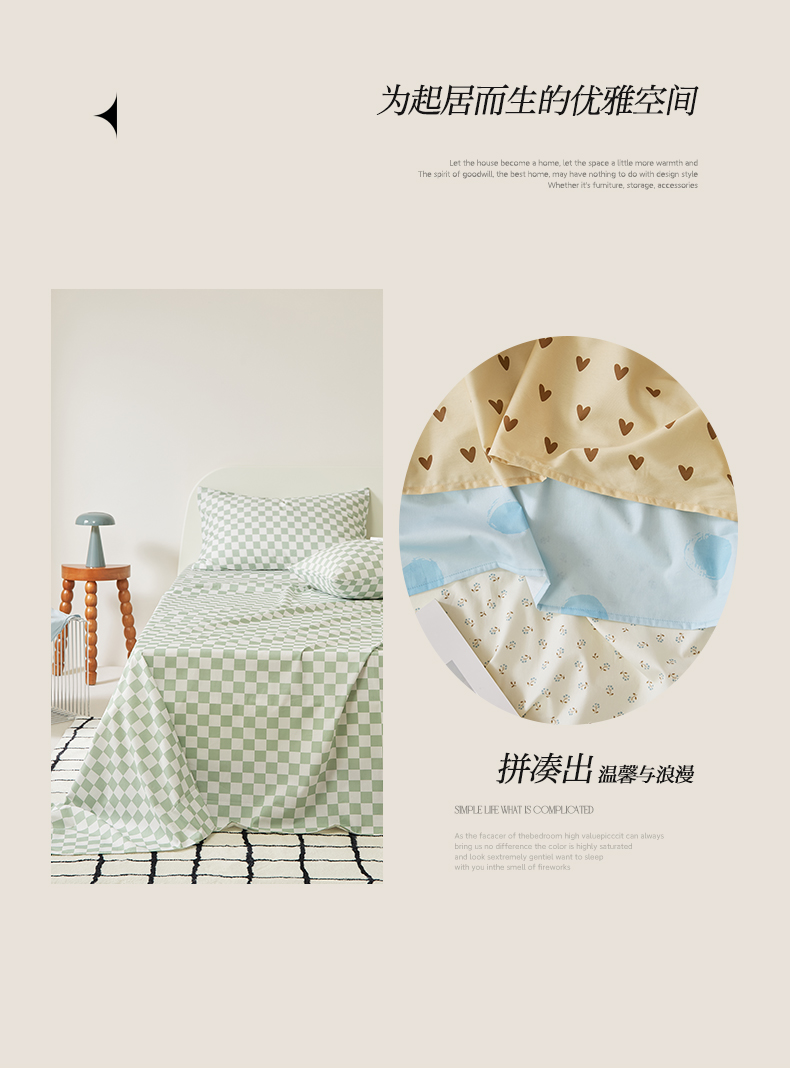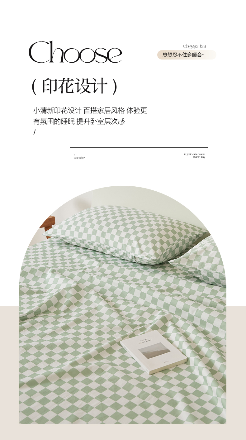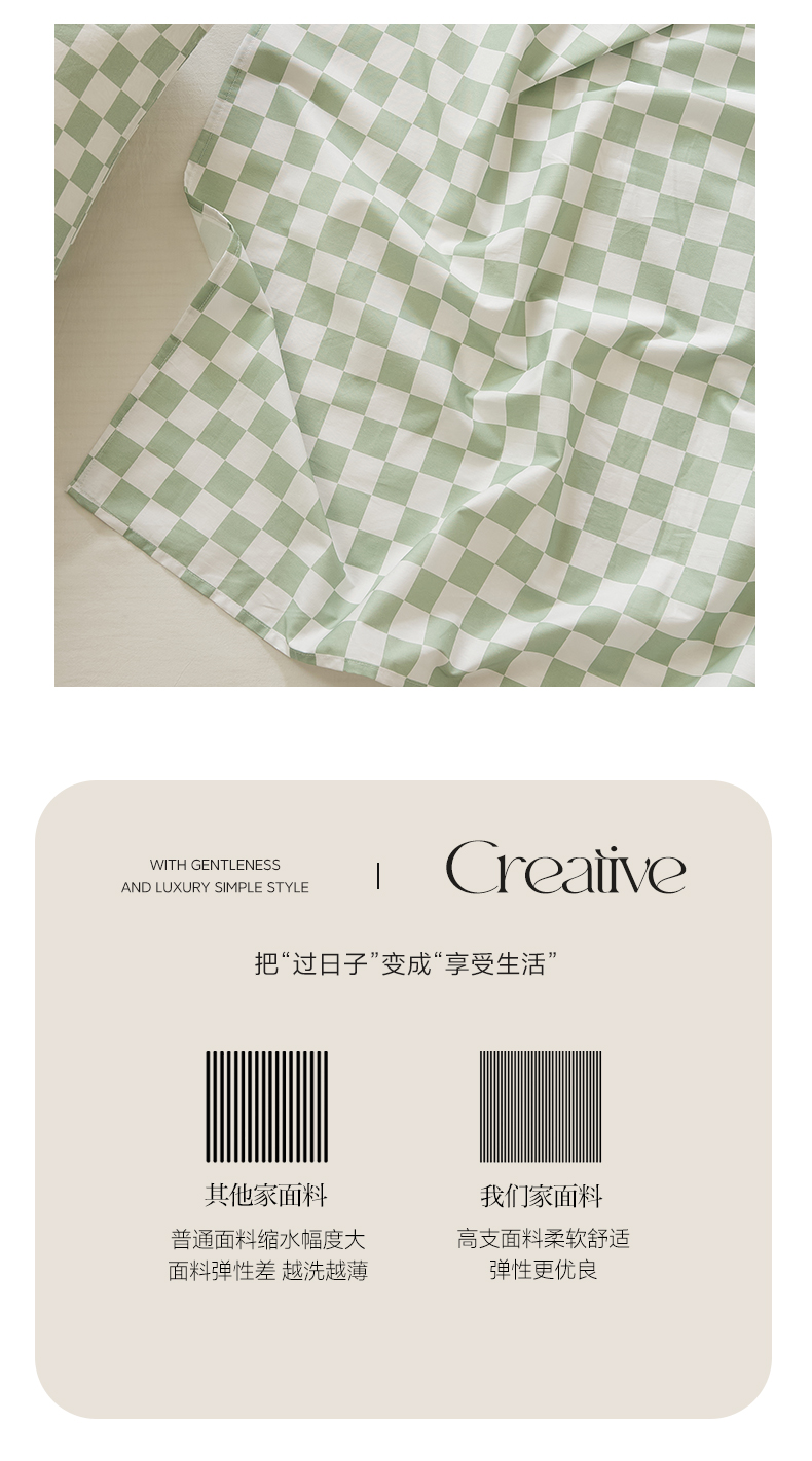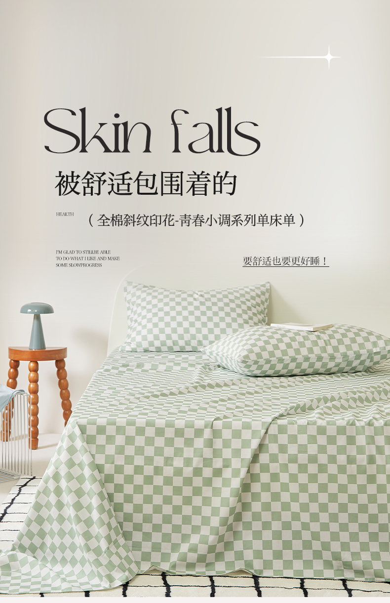 商品名称:EH家居 2025新款全棉斜纹印花-青春小调系列单床单 棋盘格-绿