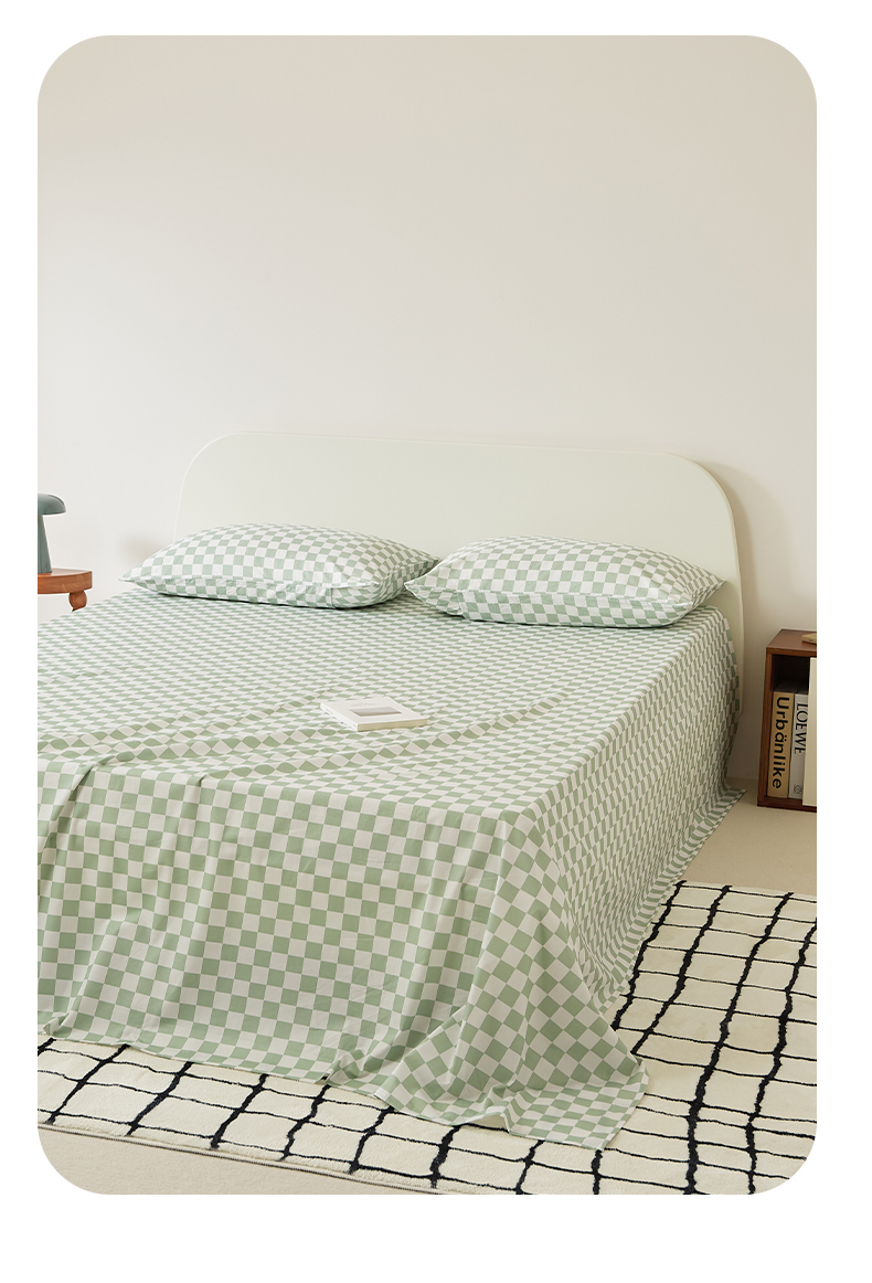 EH家居 2025新款全棉斜纹印花-青春小调系列单床单 棋盘格-绿