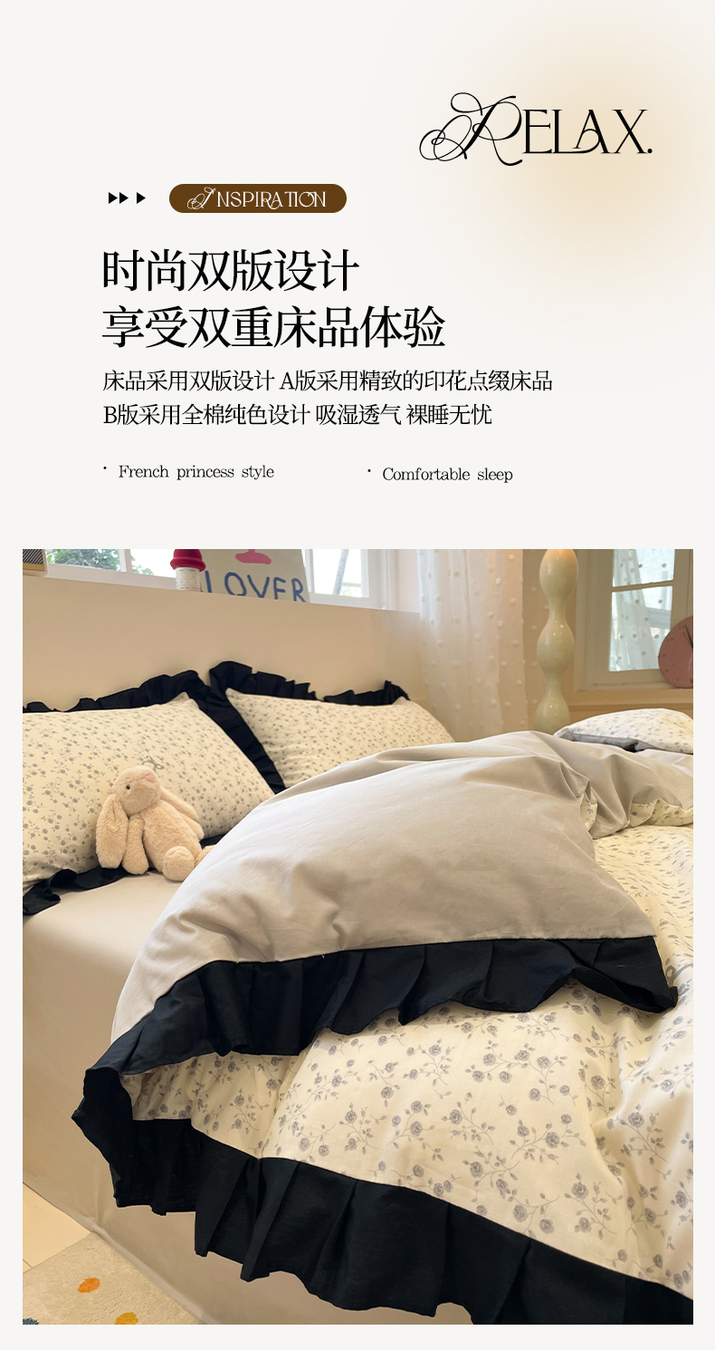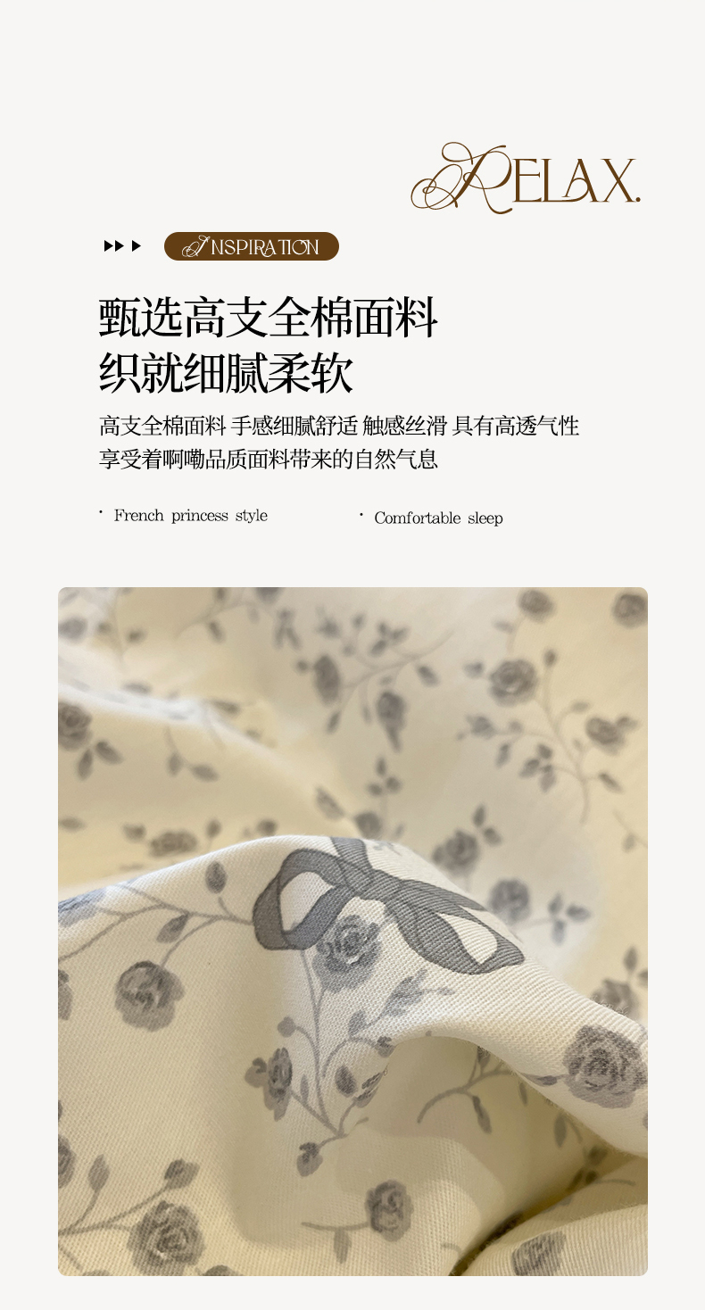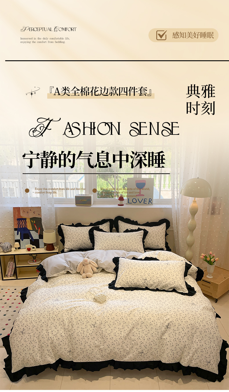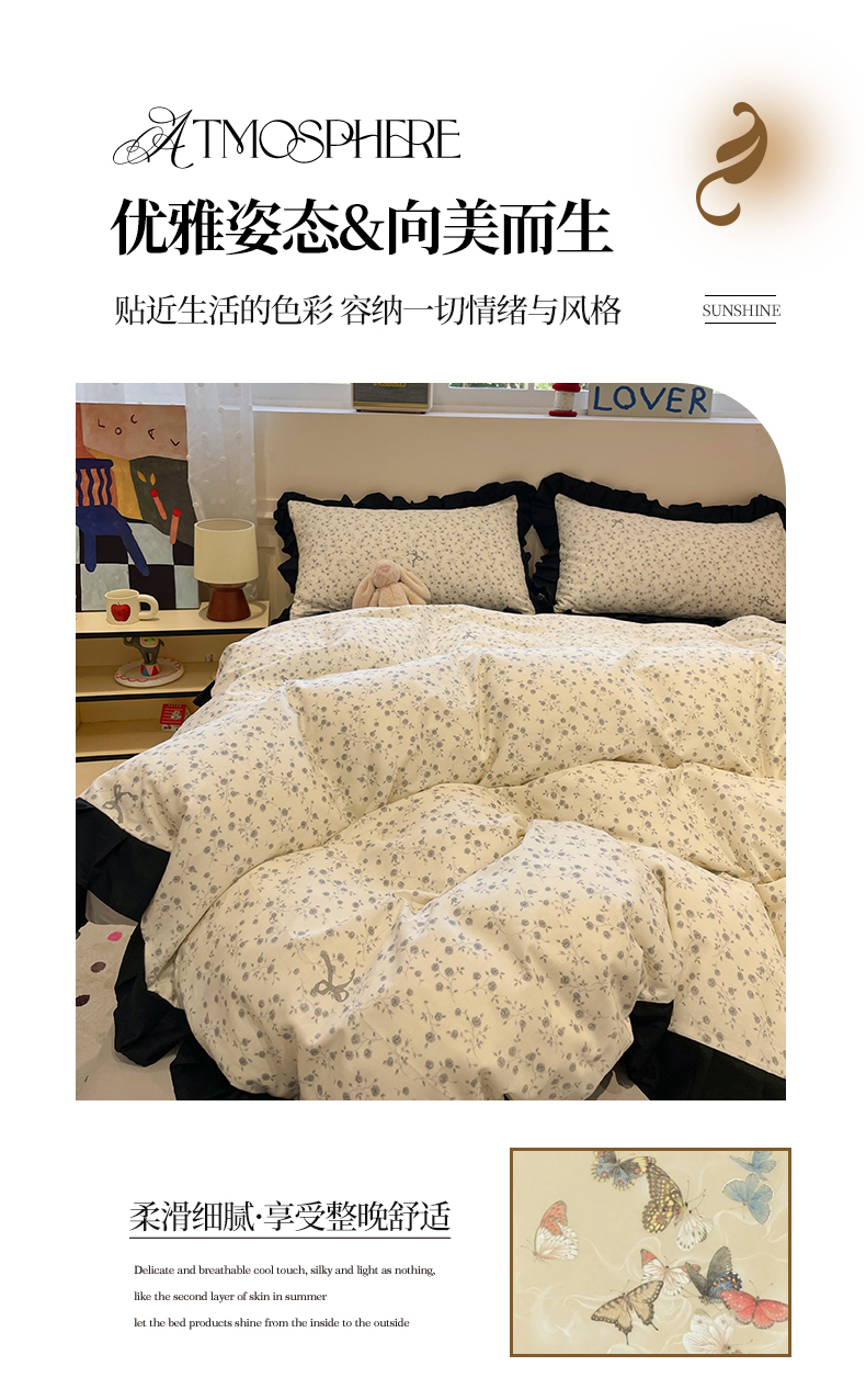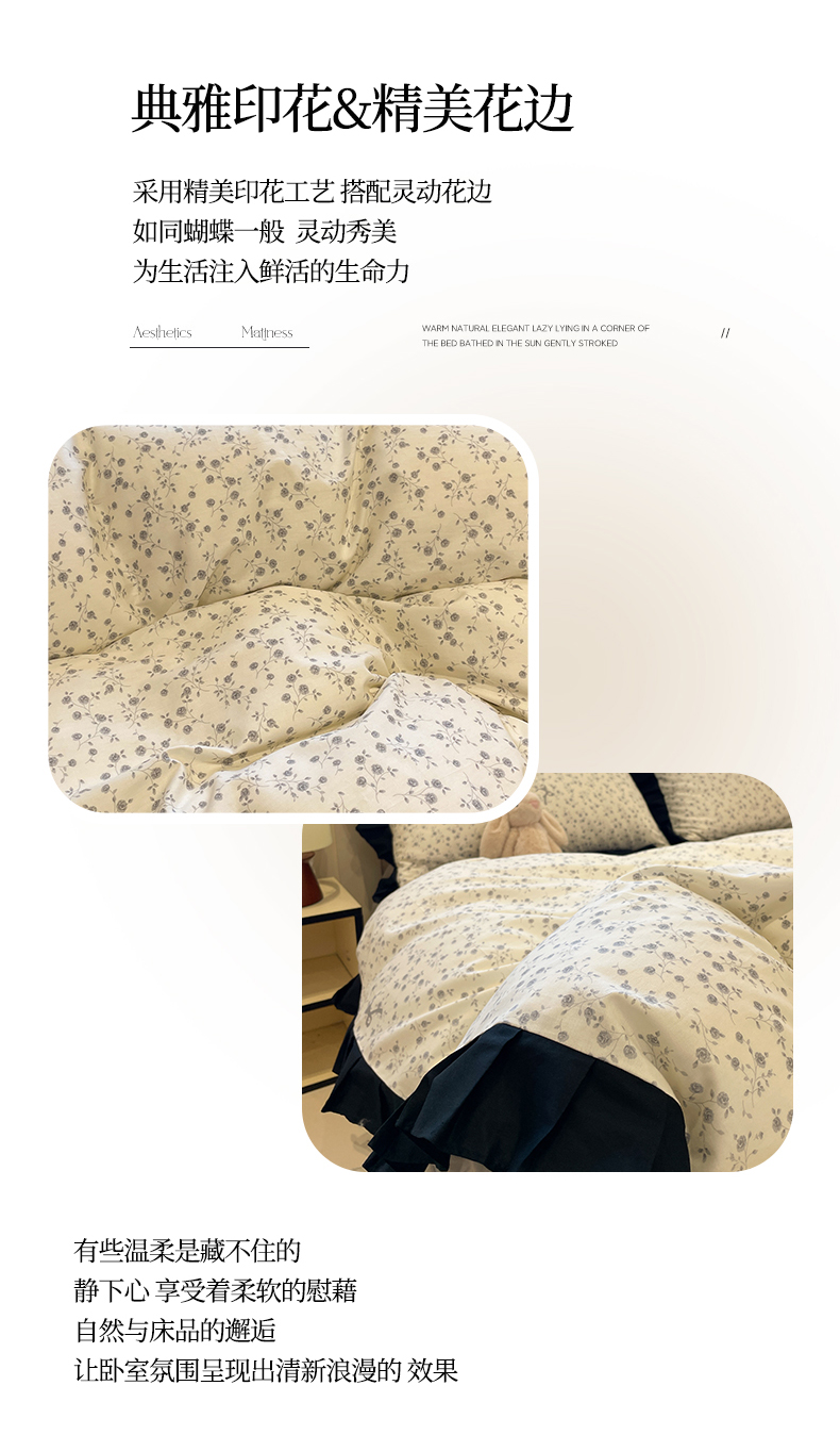 当前位置: 91家纺网 > 商品网购 > 床品套件 > 四件套 > 全棉普通四件套 > 羚羊语家纺 2025秋冬新款复古小清新花边款40支全棉纯棉轻法式13372小清新喷气印花 秋日来信