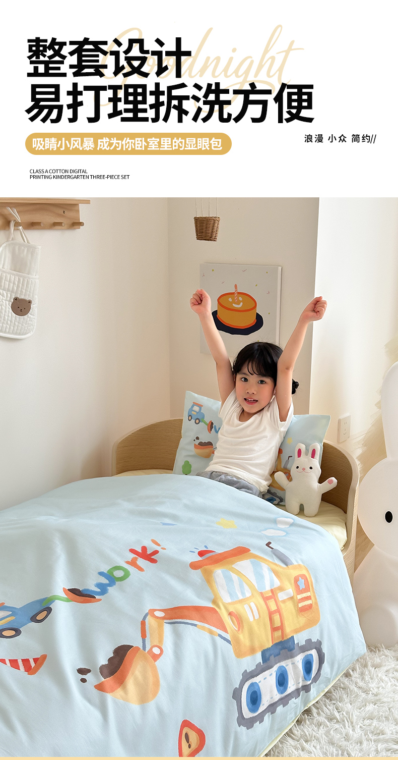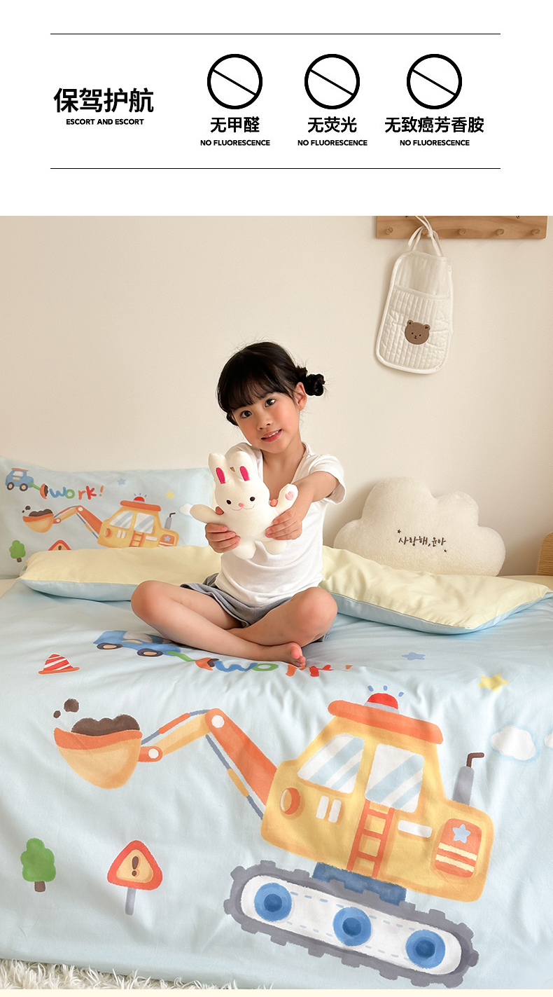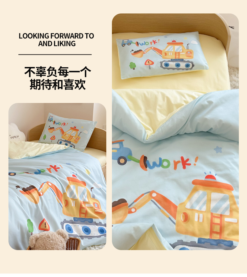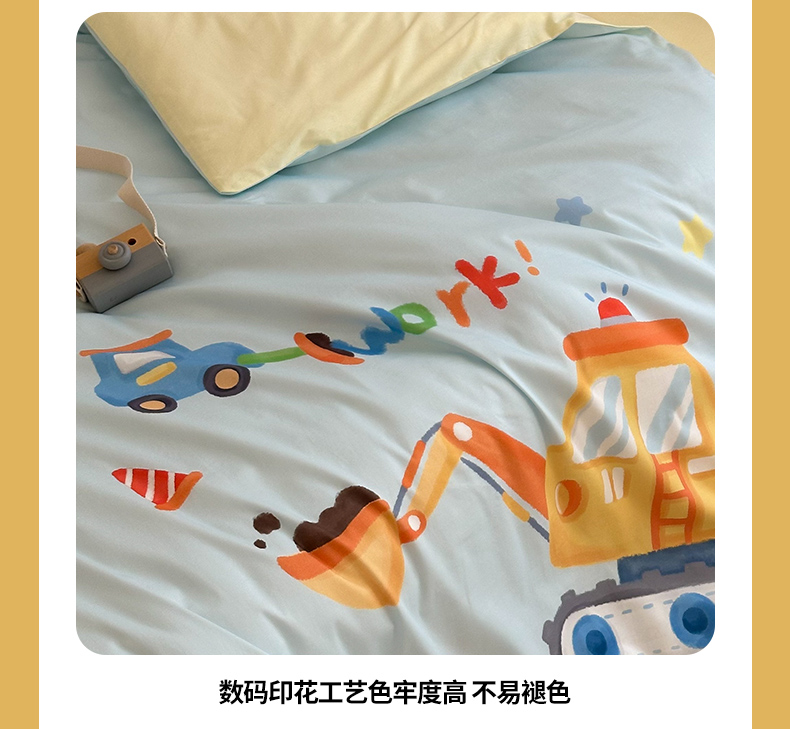 当前位置: 91家纺网 > 商品网购 > 床品套件 > 四件套 > 全棉普通四件套 > 嗨生活 2025新款A类全棉纯棉40s数码印花原创大版卡通幼儿园套件 幼儿园三件套 蓝色挖掘