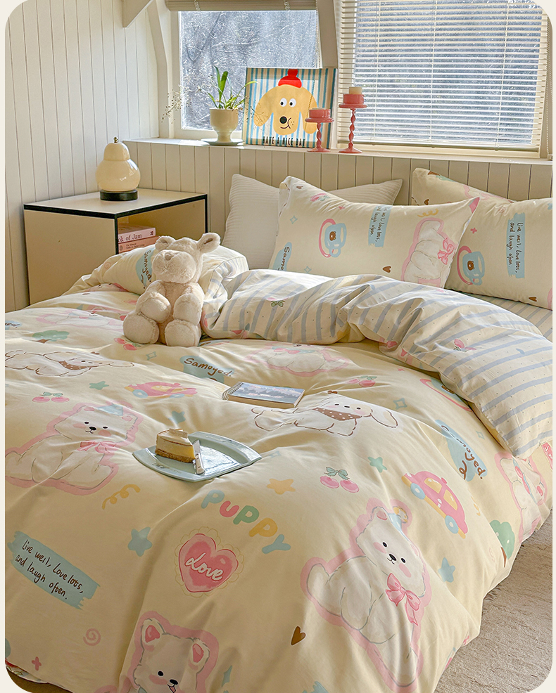 当前位置: 91家纺网 > 商品网购 > 床品套件 > 四件套 > 麦伦家居 2025新款40s斜纹全棉纯棉跑量款卡通小清新四件套 萌趣乐园
