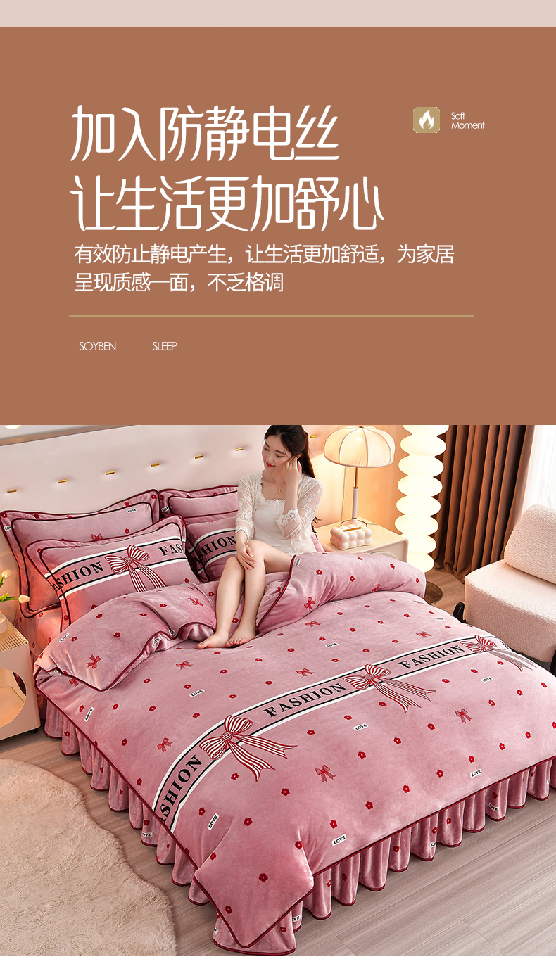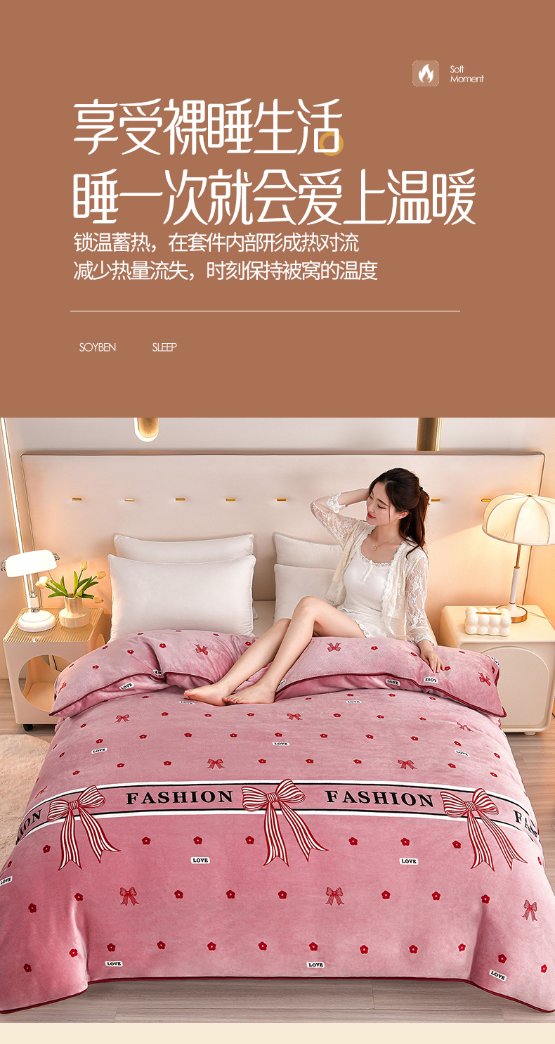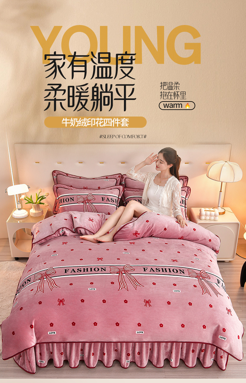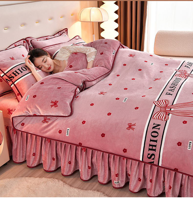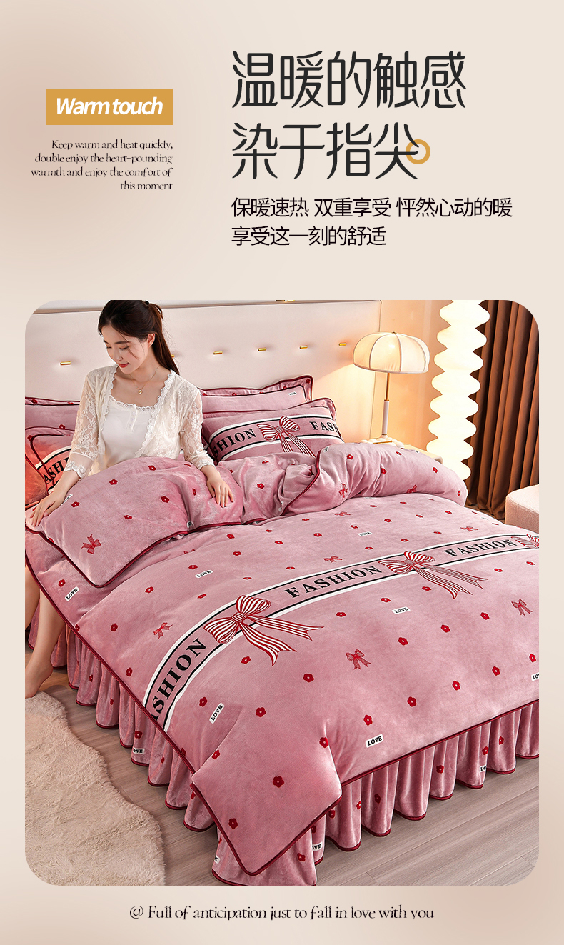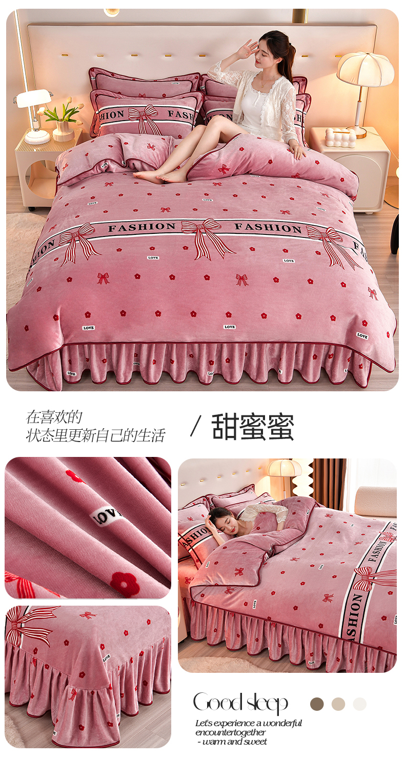 缘莉娜家纺 2025高克重8斤牛奶绒四件套金貂绒法莱绒加厚保暖直播电商爆款 甜蜜蜜,甜蜜蜜