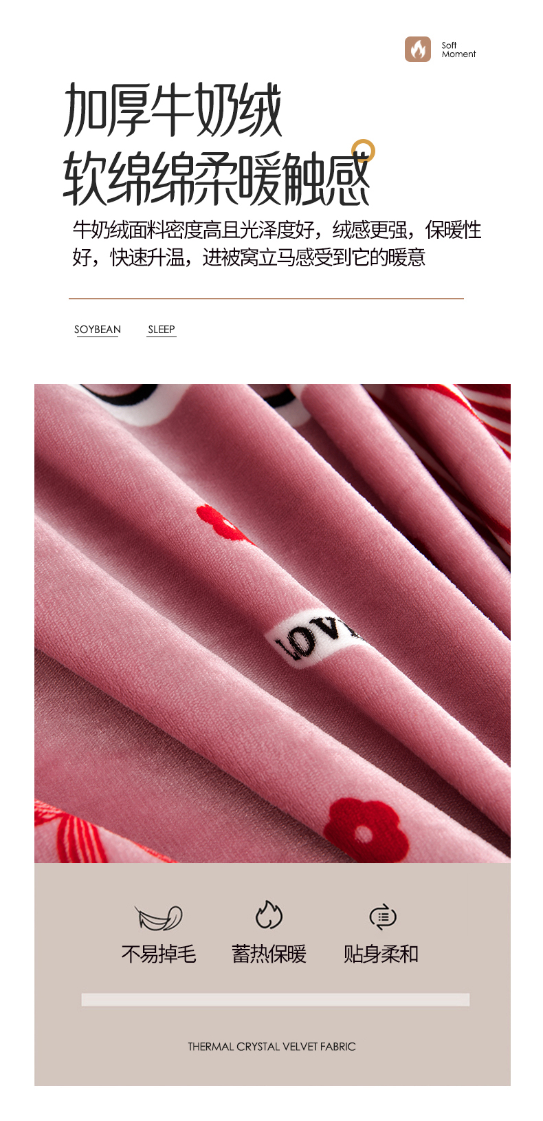商品名称:缘莉娜家纺 2025新款花色高克重加厚牛奶绒金貂绒被套单件 甜蜜蜜