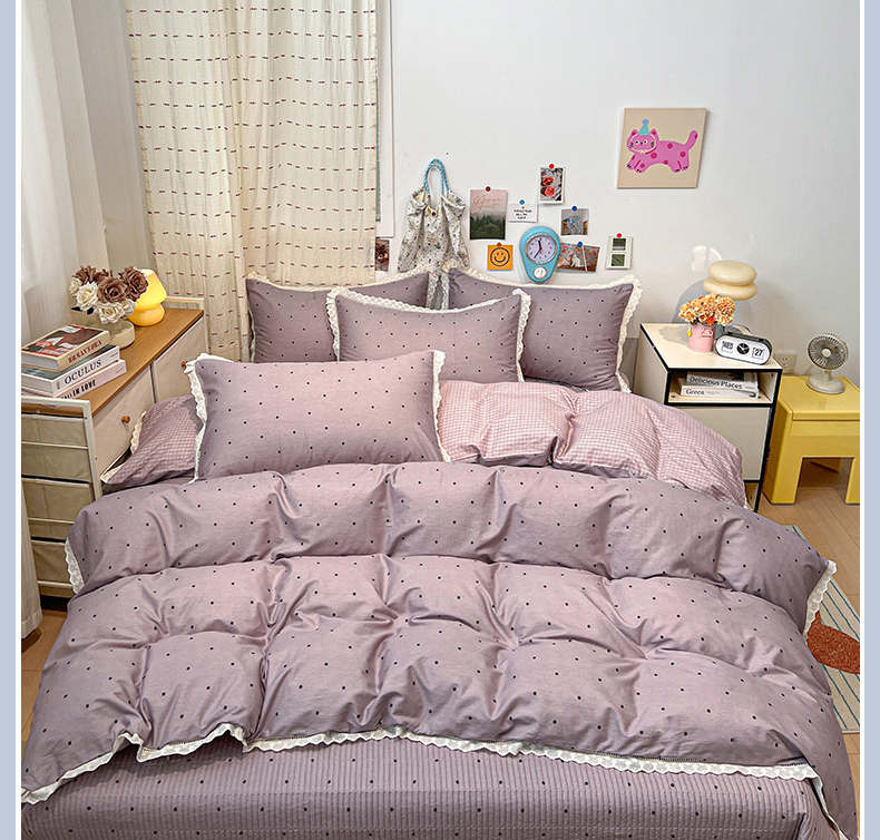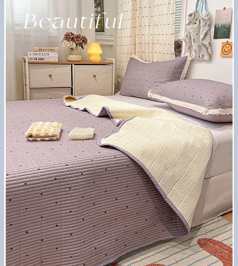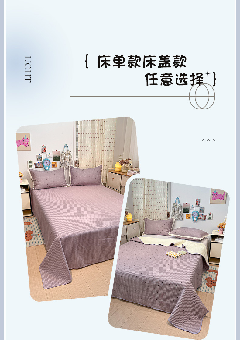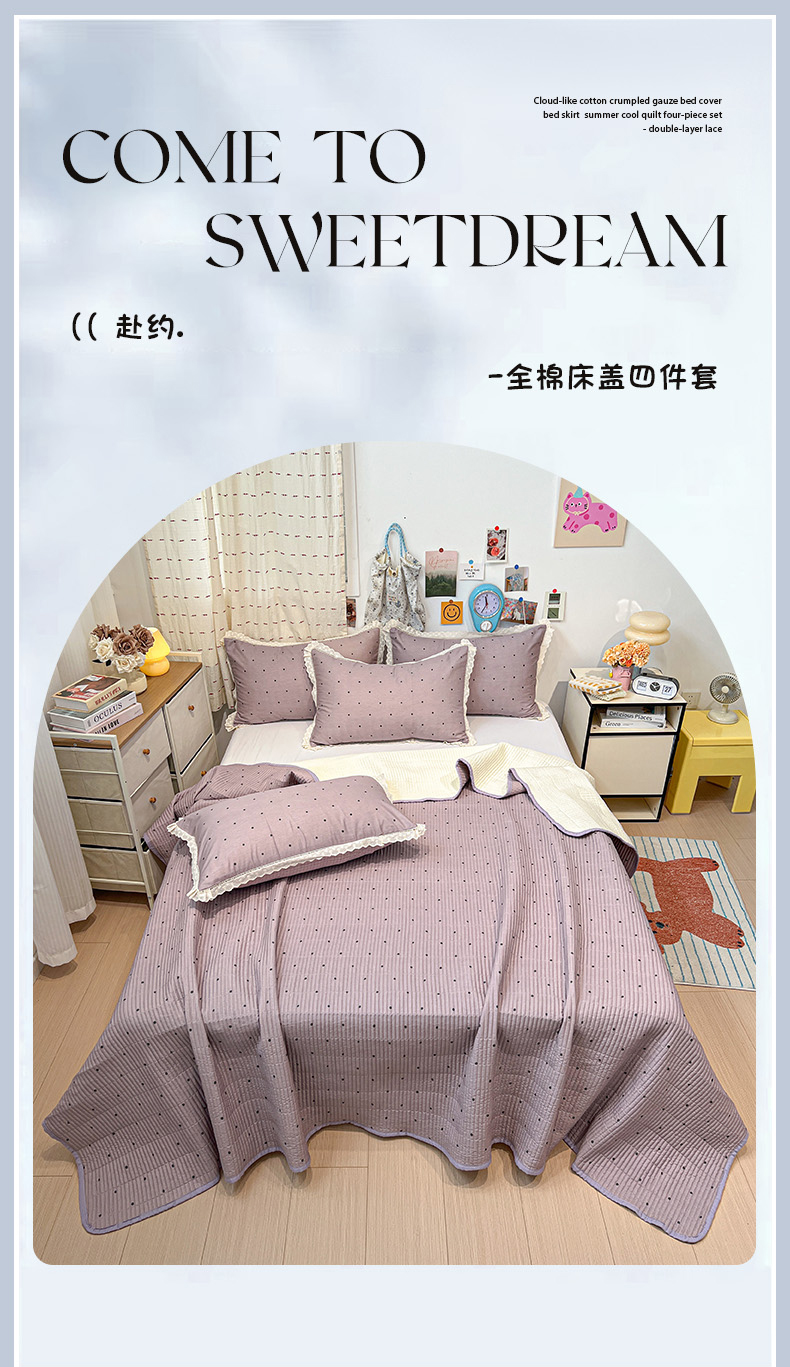 橙子家居 2025年新款小清新全棉高温砂洗棉花床盖四件套跑量款床盖单面纯棉 芋泥啵啵