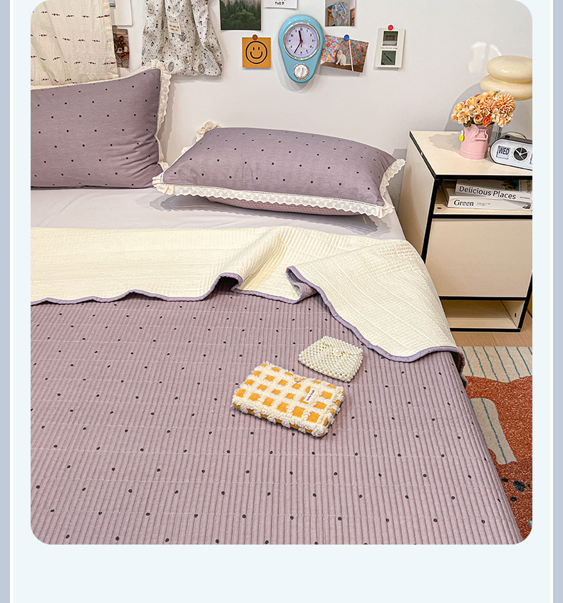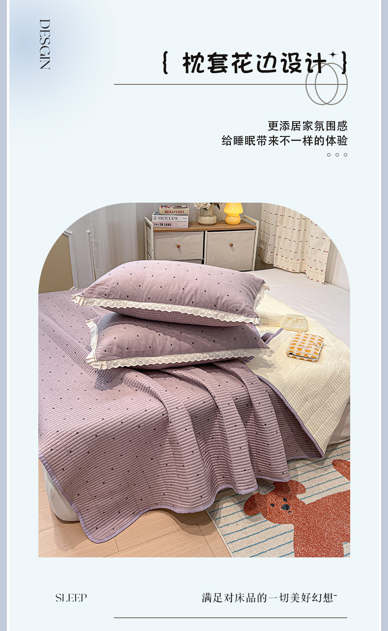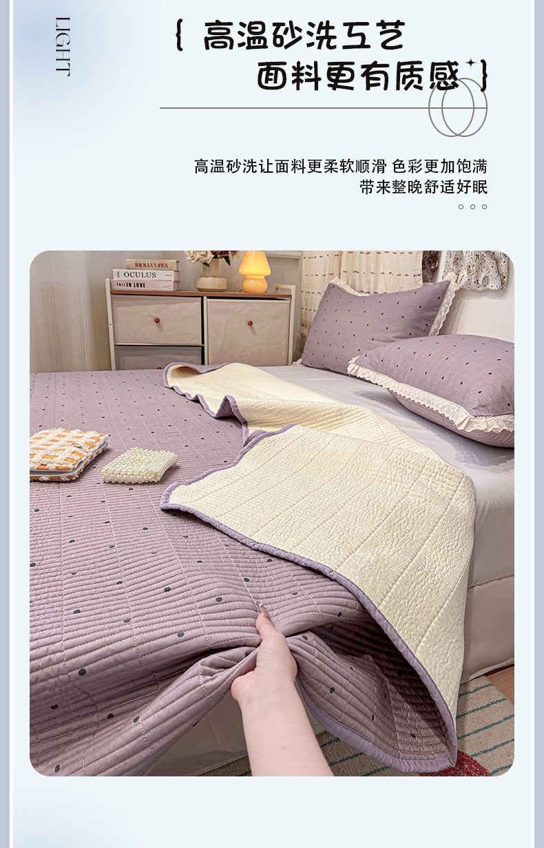 当前位置: 91家纺网 > 商品网购 > 床上用品 > 床盖 > 橙子家居 2025年新款小清新全棉高温砂洗棉花床盖四件套跑量款床盖单面纯棉 芋泥啵啵