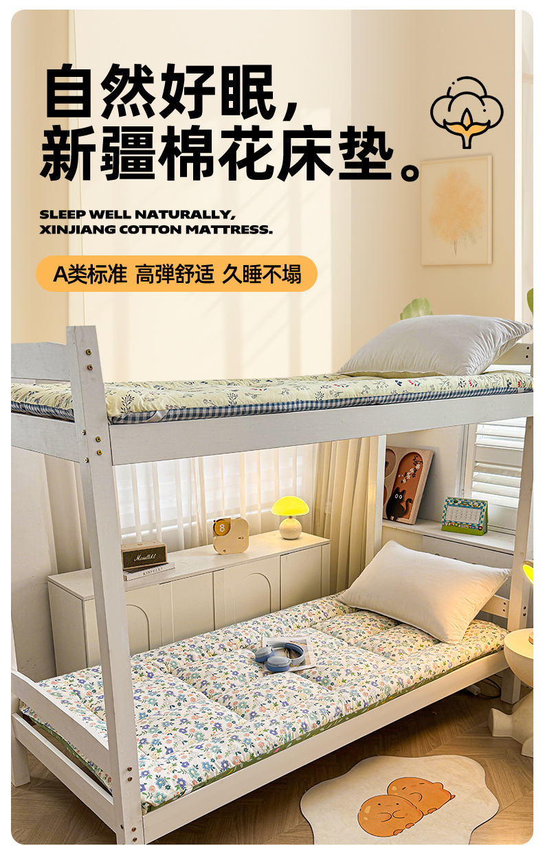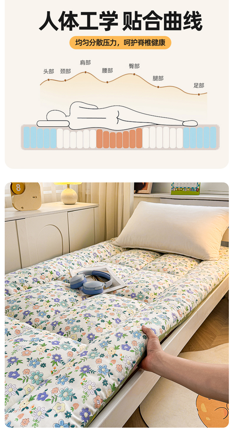 商品名称:(总)梵蒂莎 2025新款新疆棉花四季款秋冬两用床垫子褥子学生宿舍印花学生款棉花床褥垫(场景2)(含买家秀)