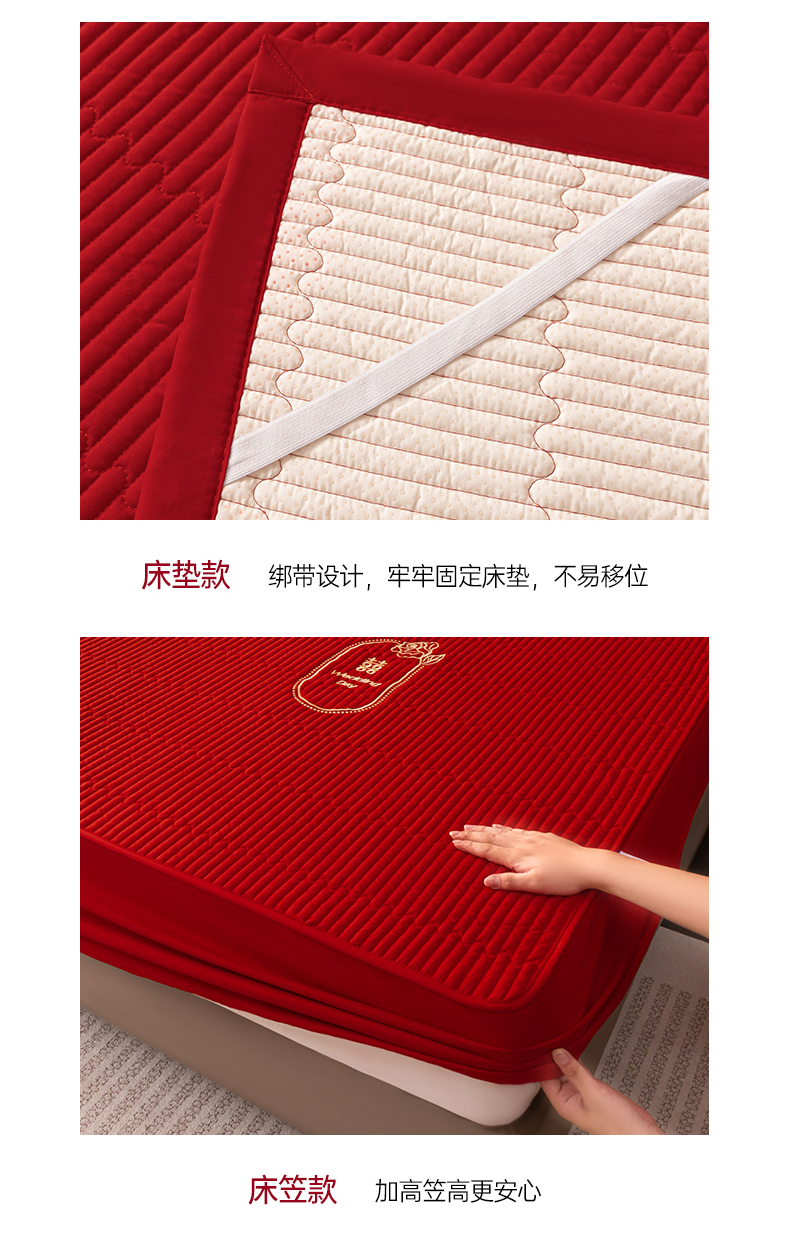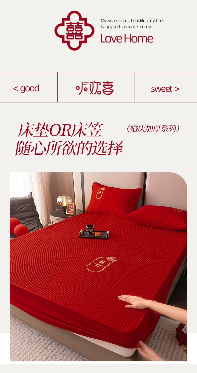 卓缦家纺 2025新款婚庆加厚软床垫软床笠三件套婚庆床单床盖 情缘-床笠