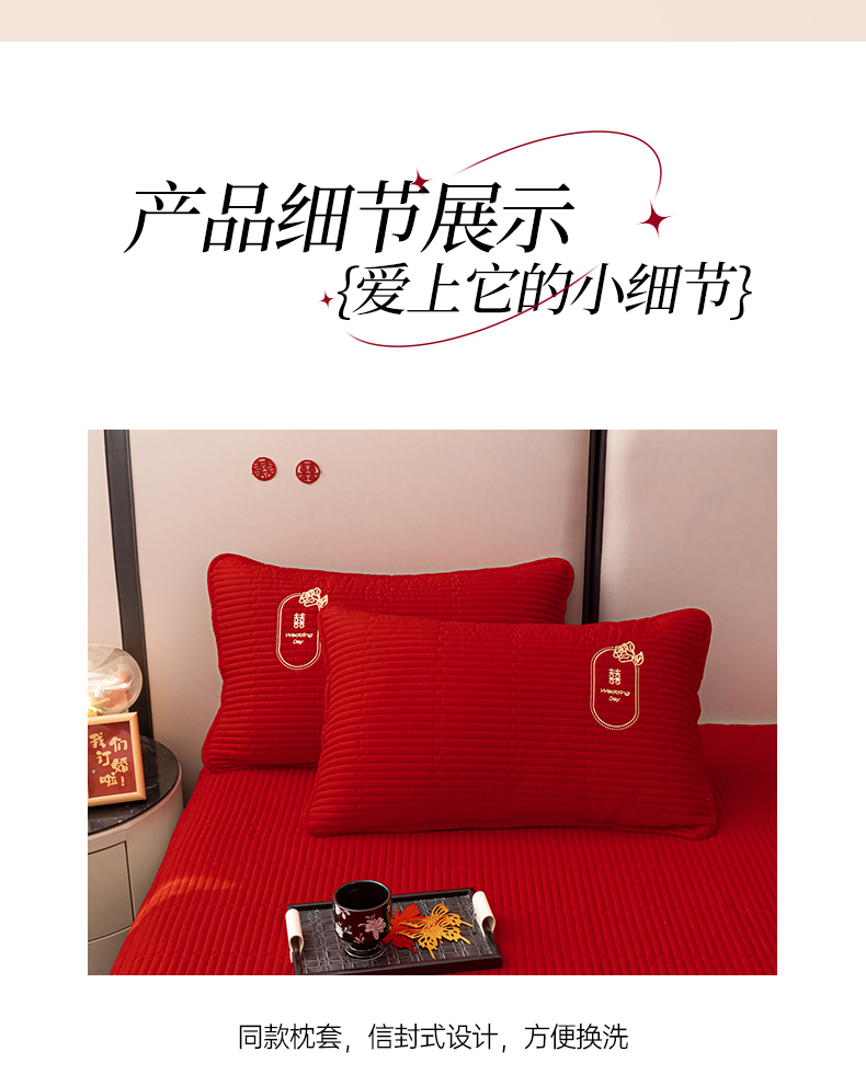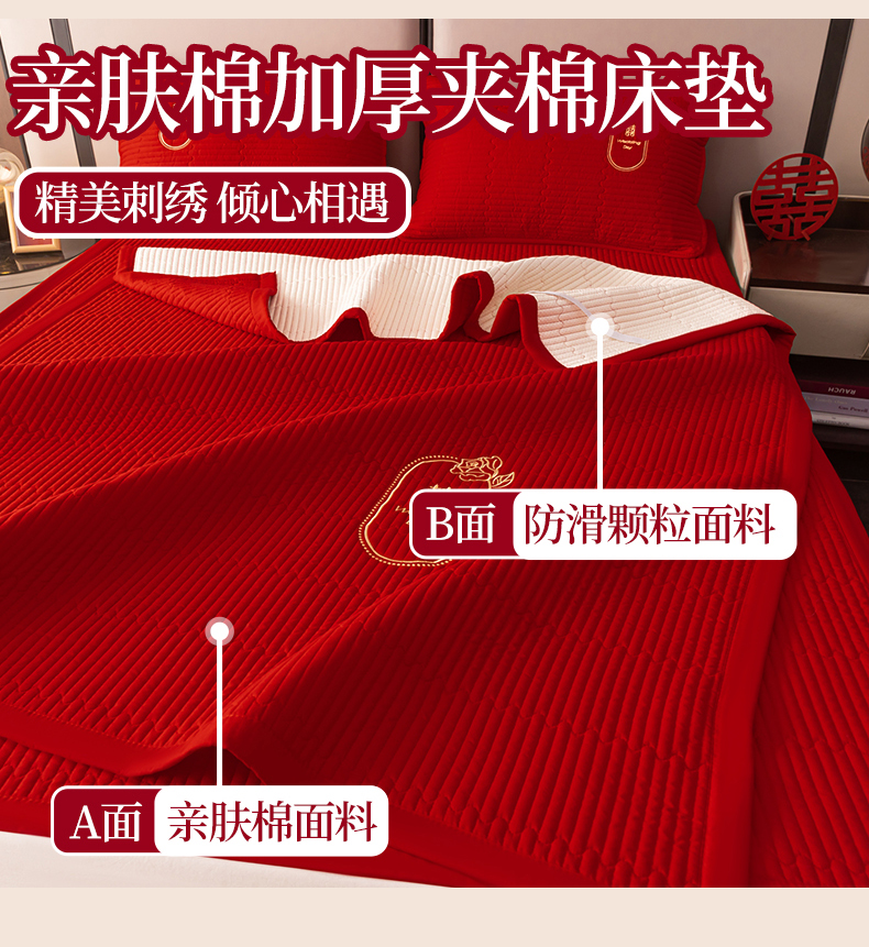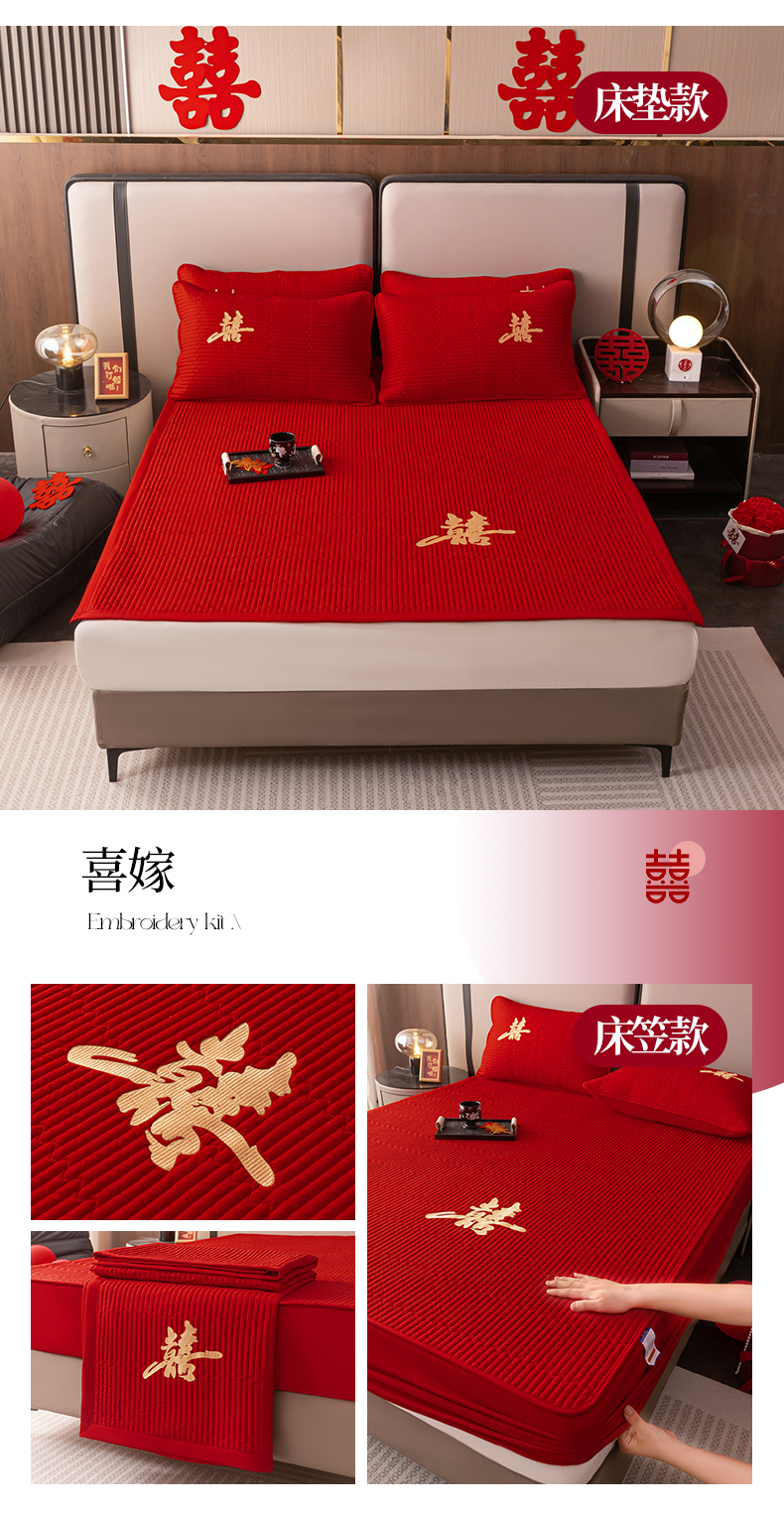 商品名称:卓缦家纺 2025新款婚庆加厚软床垫软床笠三件套婚庆床单床盖 情缘-床笠