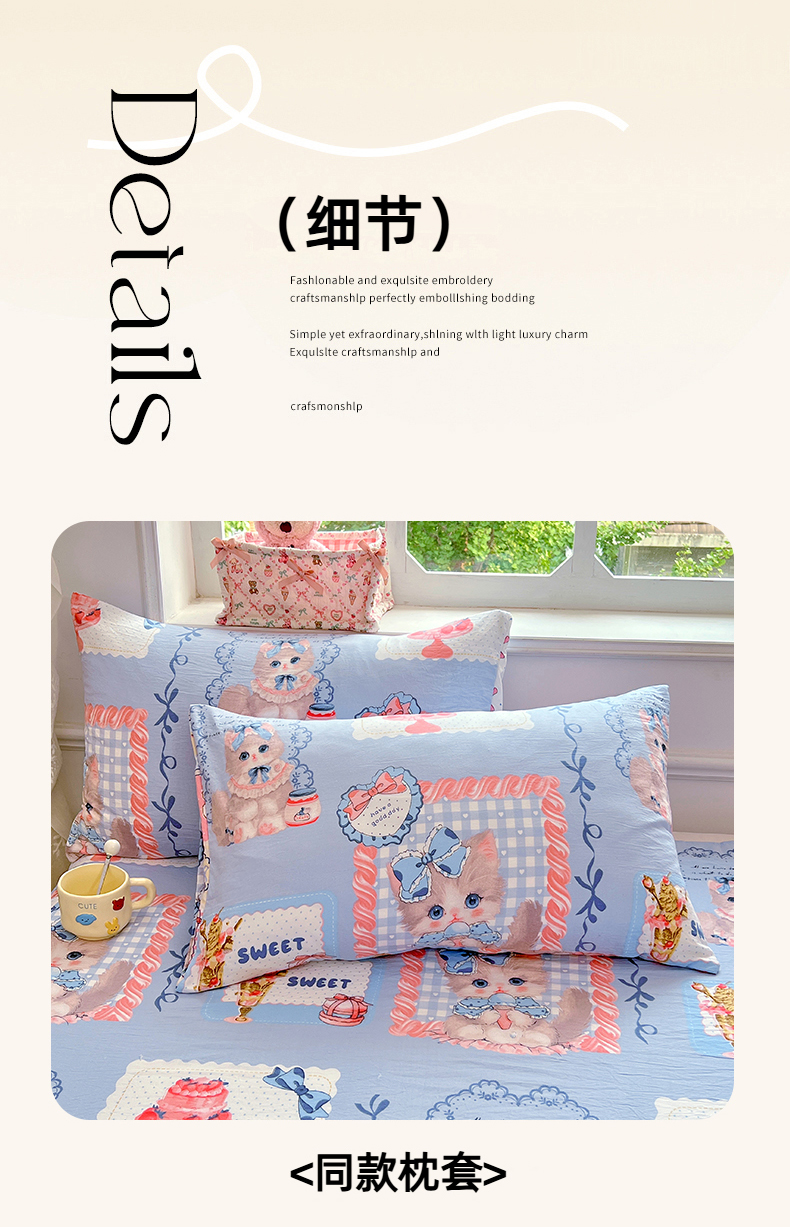 优尚佳生活馆 2025新款亲肤水洗棉印花床单单品床单单件单床单 床单款-甜趣猫咪