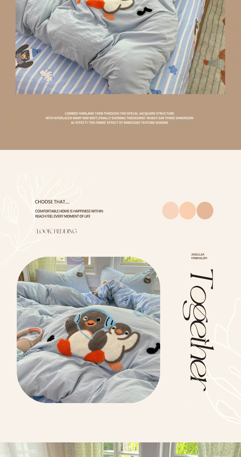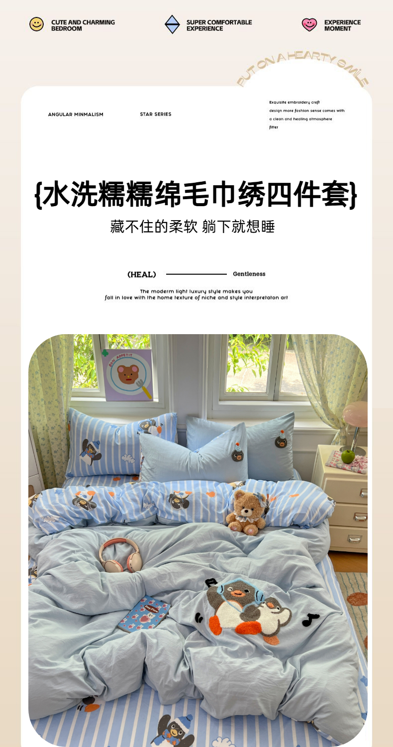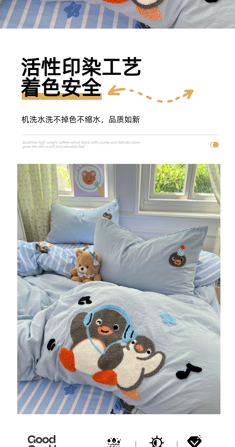 当前位置: 91家纺网 > 商品网购 > 床品套件 > 四件套 > 毛巾绣四件套 > 优尚佳生活馆 2025新款水洗棉印花毛巾绣四件套【提供买家秀】 音乐企鹅